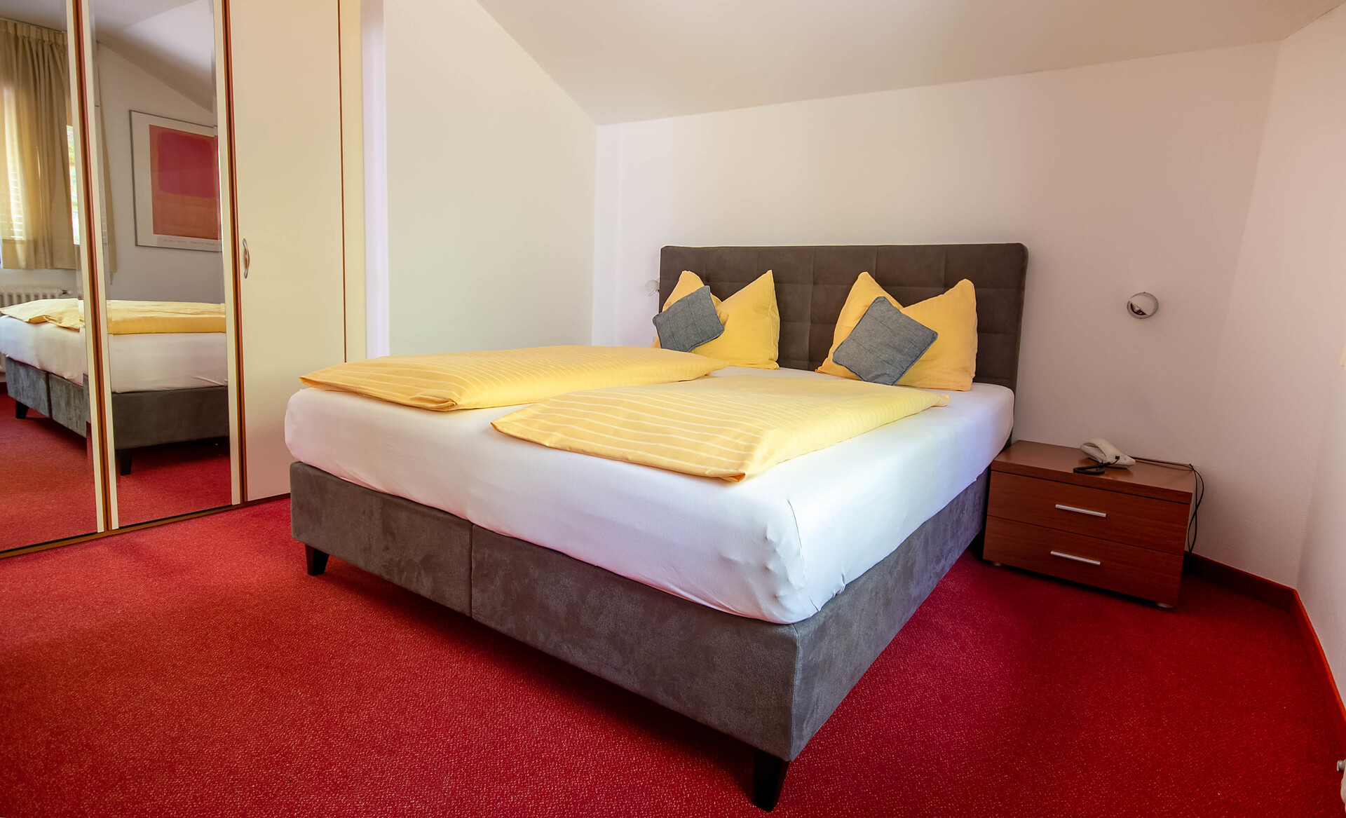 Doppelzimmer, Doppelbett, Zustellbett, Bettsofa, Balkon, Safe, Dusche / Bad, Haarfön, Bademantel, TV, Satellit/Kabel, Haupthaus, Südseite