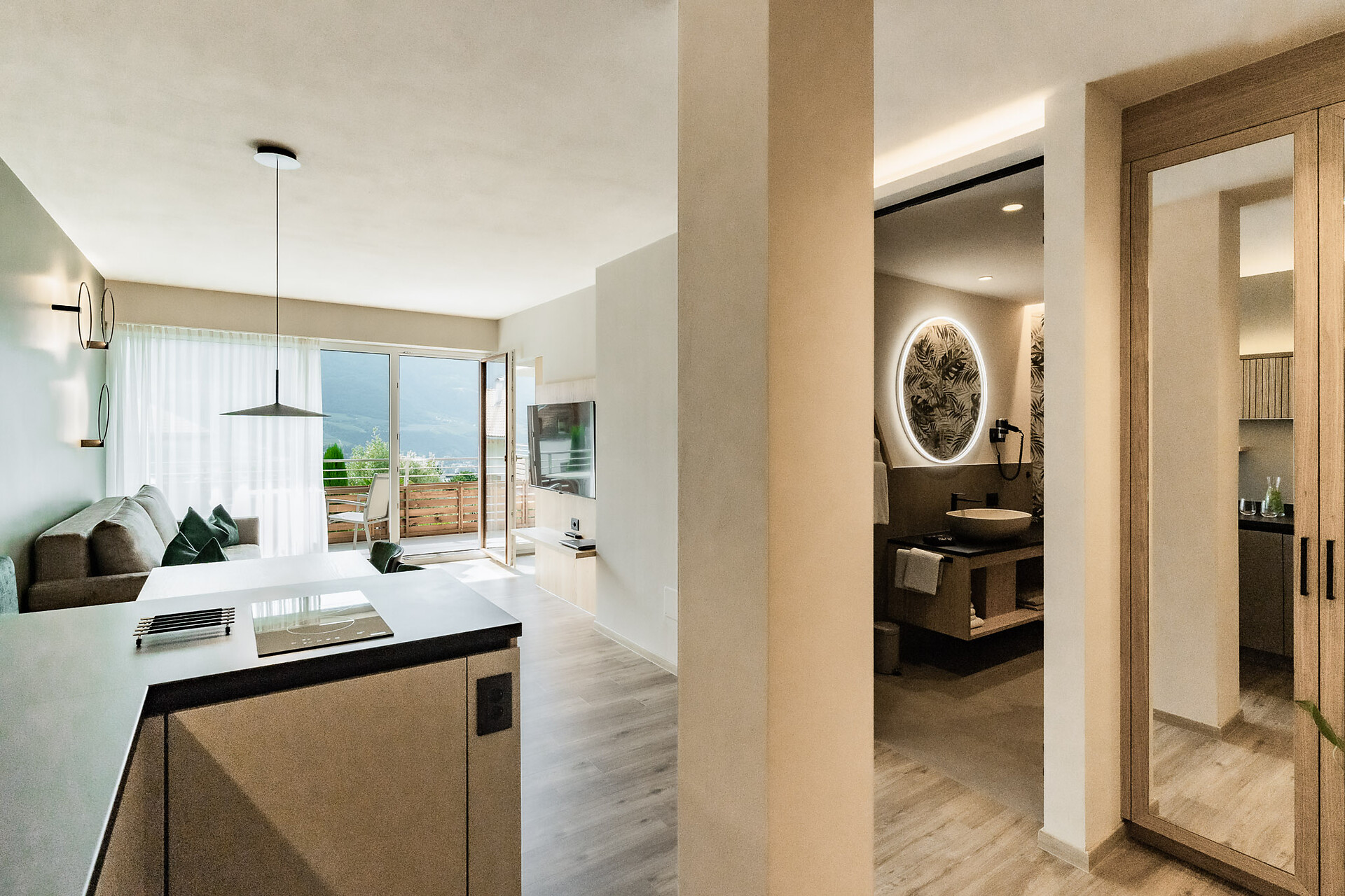 Urlaub und Entspannung in einer harmonischen Umgebung inmitten von Obstwiesen, nahe dem Dorfzentrum und abseits der Hauptstraße. Genießen Sie einen herrlichen Ausblick auf die umliegende Bergwelt von den großzügigen Südbalkonen bzw. Terrassen unserer Apartments. Unsere komplett neuen Deluxe Apartments in der 1.Etage zur Südseite, vereinen Luxus und Design für Ihr Wohlbefinden. Alle Apartments sind bequem mit dem Fahrstuhl zu erreichen.