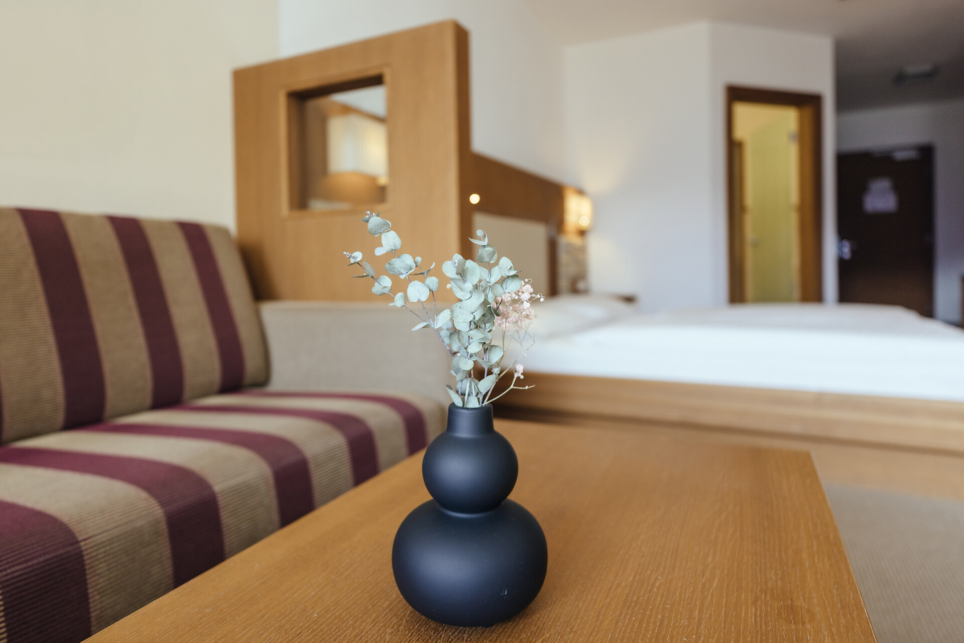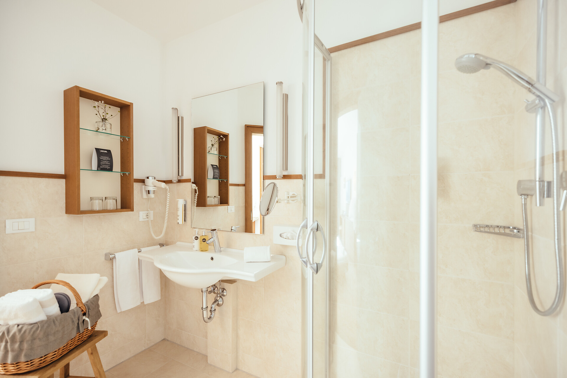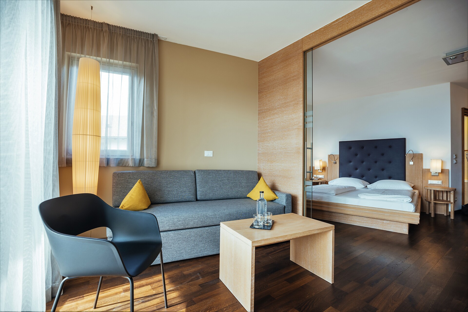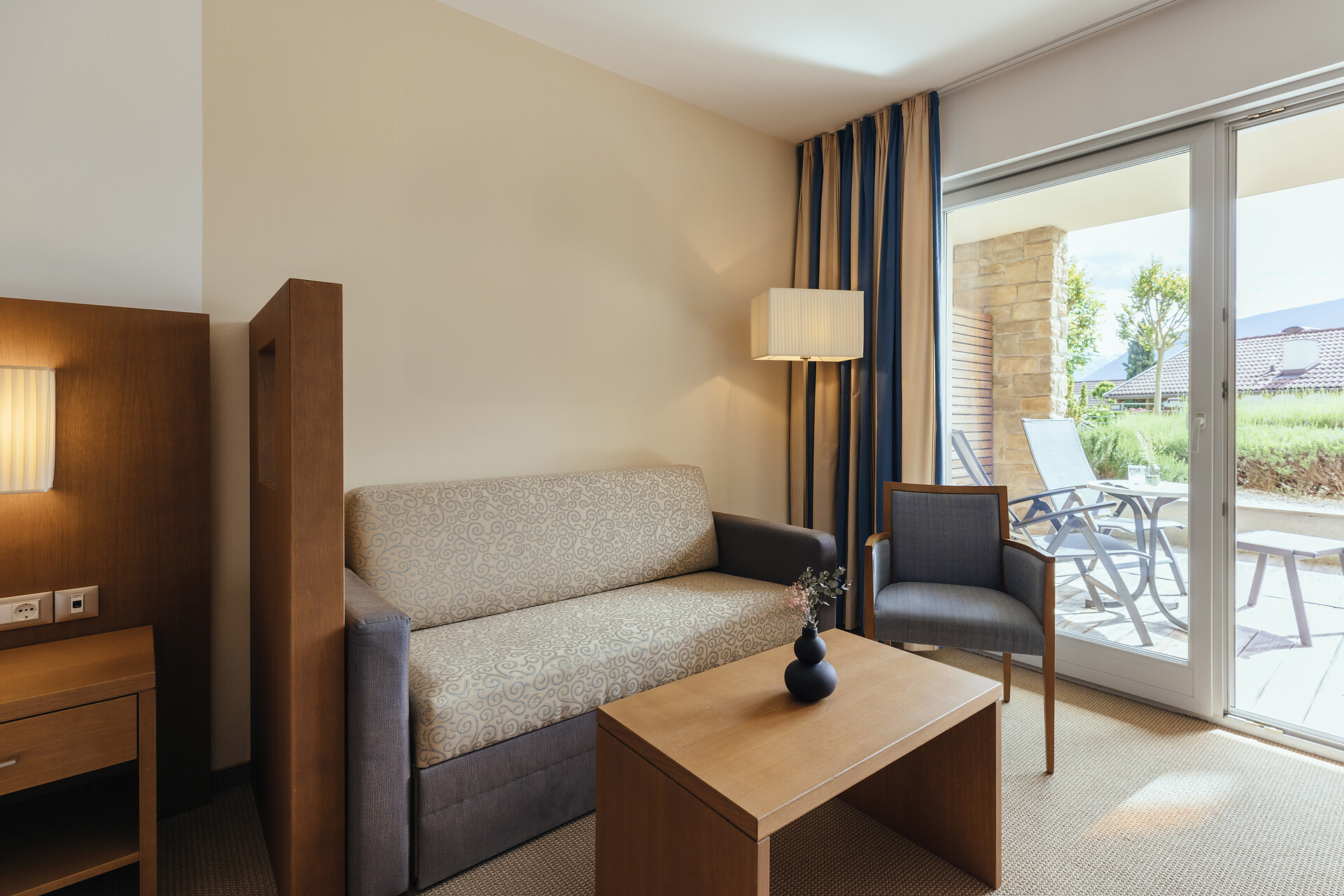 Doppelzimmer 25 m², mit Südbalkon, Holzboden, Dusche/WC, Bidet, Kühlbox, Safe,TV, bequeme Sitzecke, Nichtraucherzimmer, Klimaanlage.