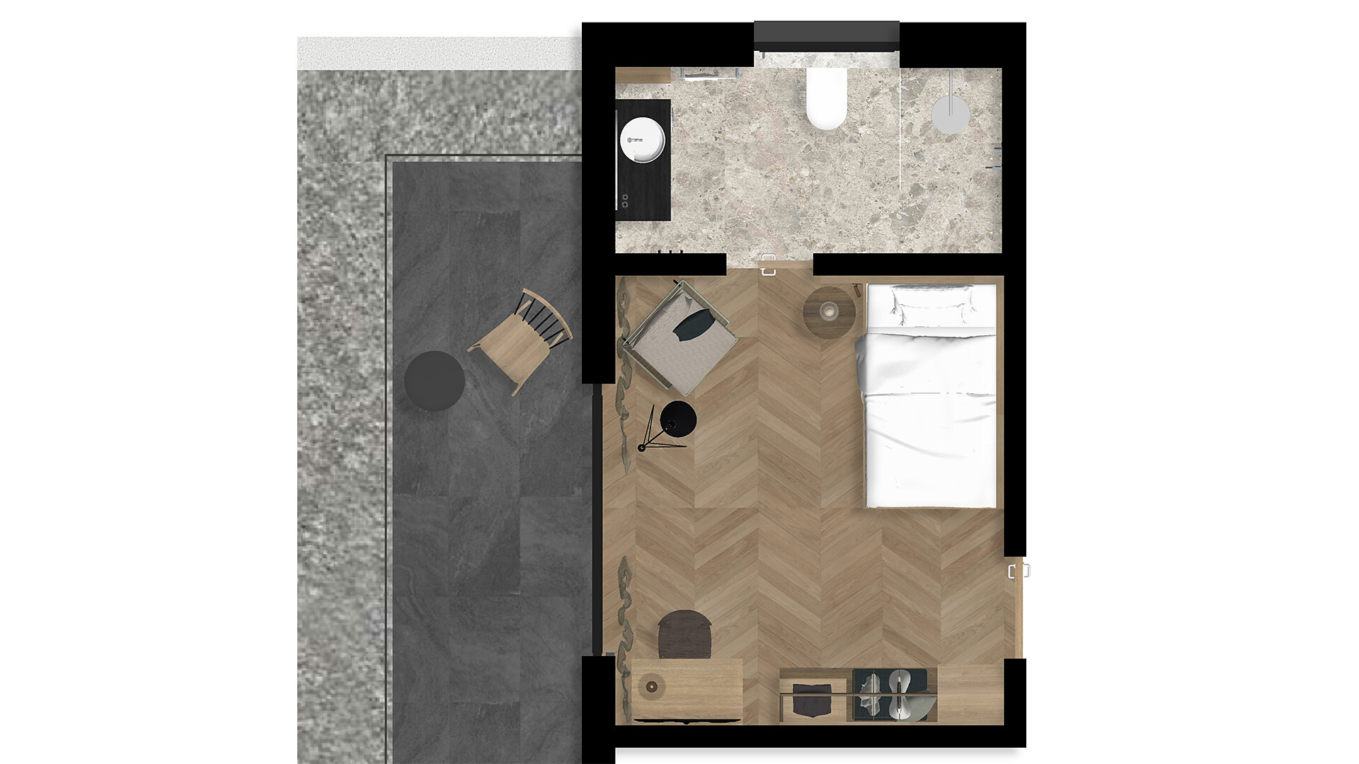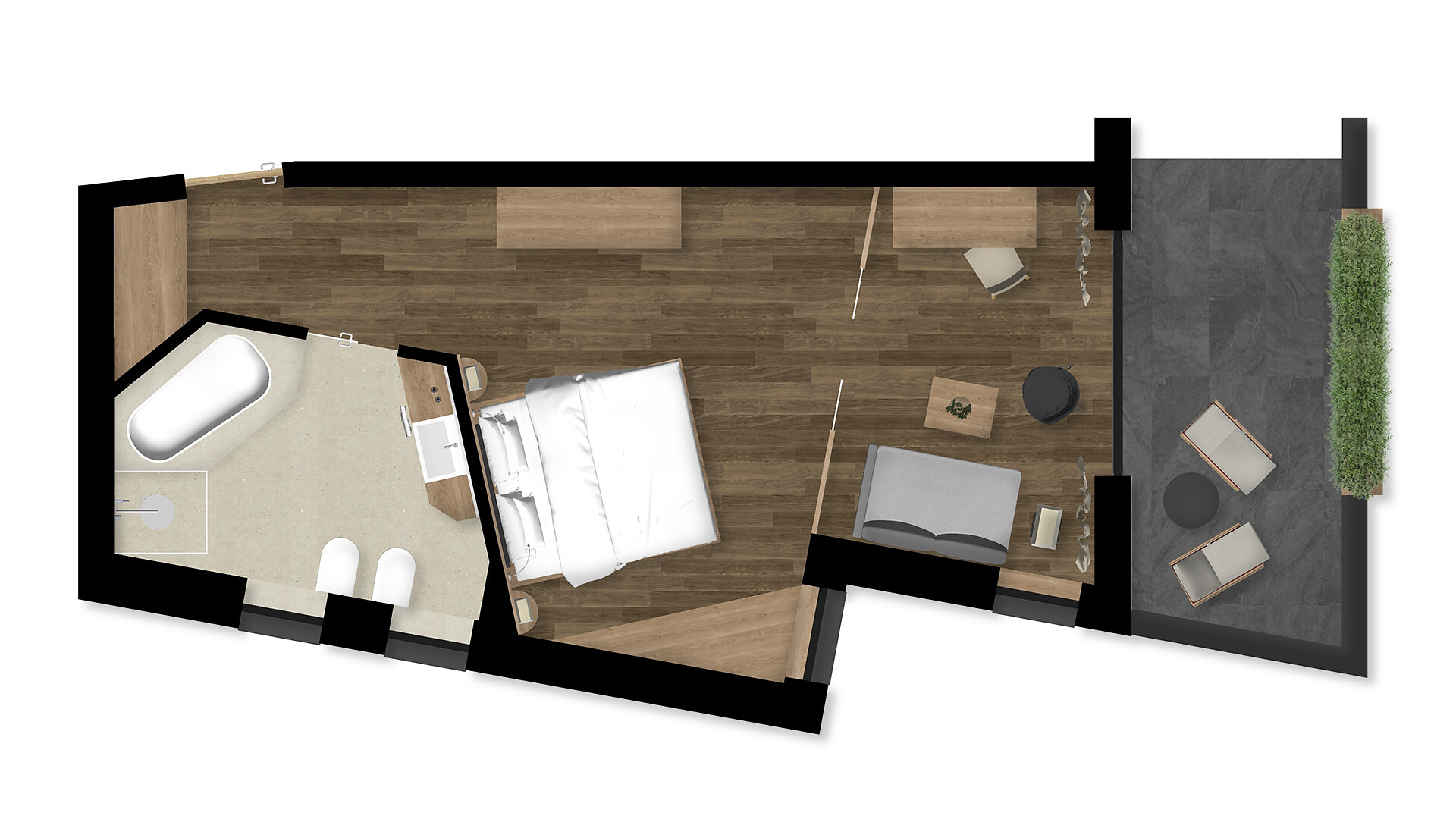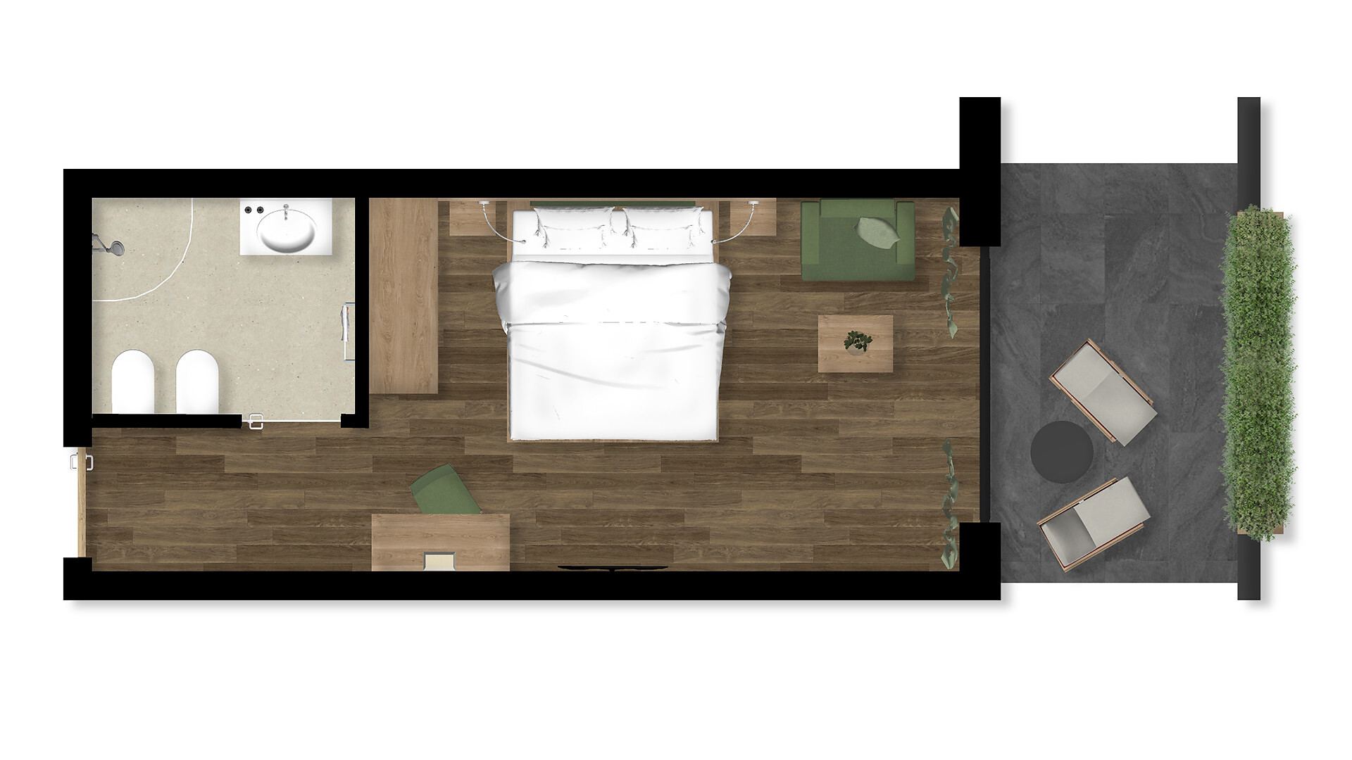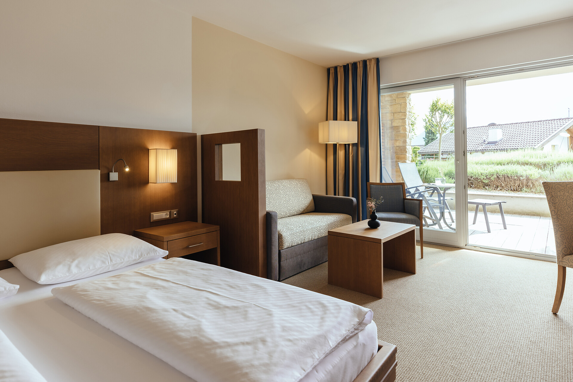 Einzelzimmer, Doppelbett, Balkon, Minibar, Safe, Dusche / Bad, Bidet, Haarfön, Bademantel, TV, Satellit/Kabel, WLAN, Südseite