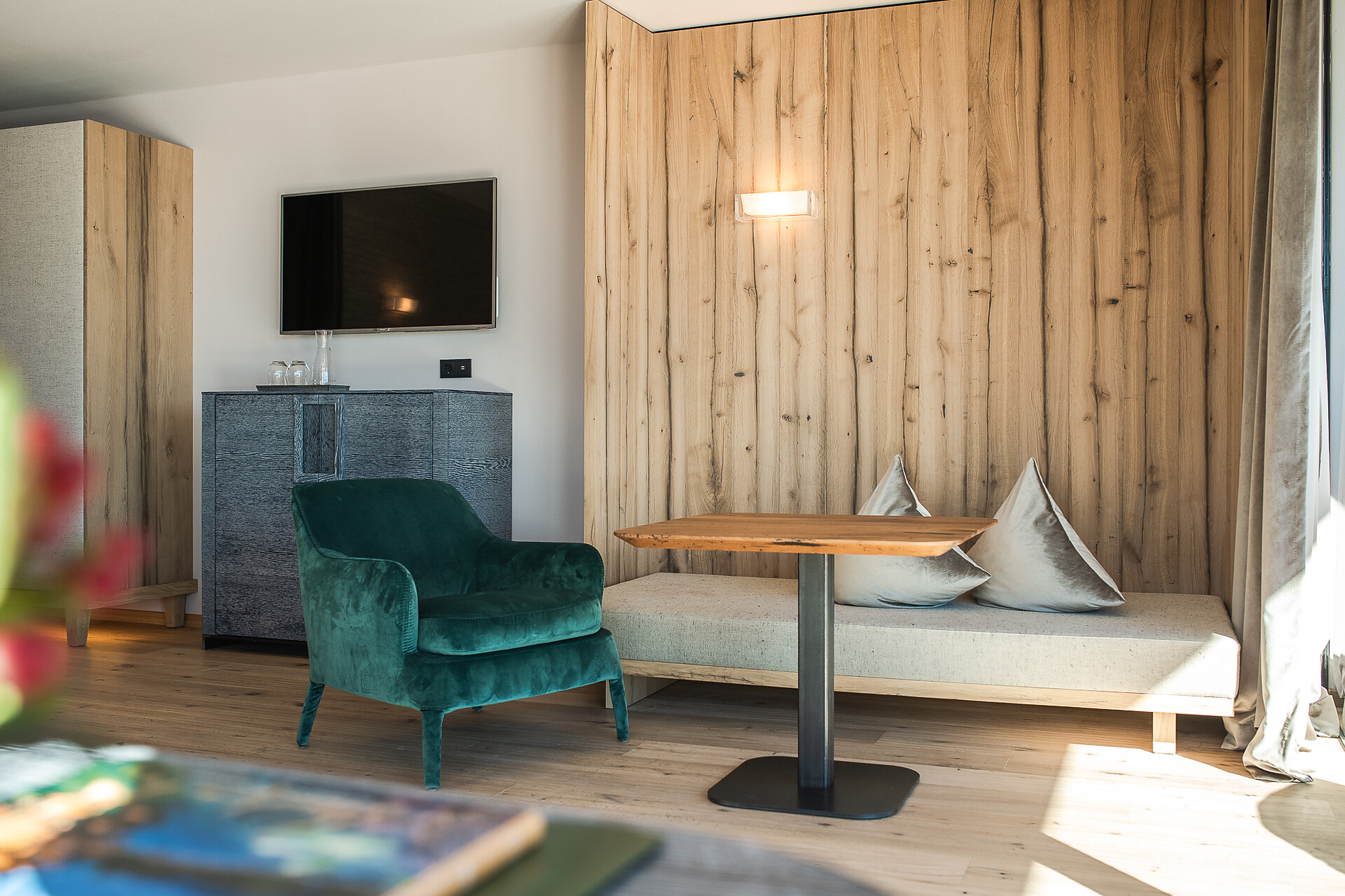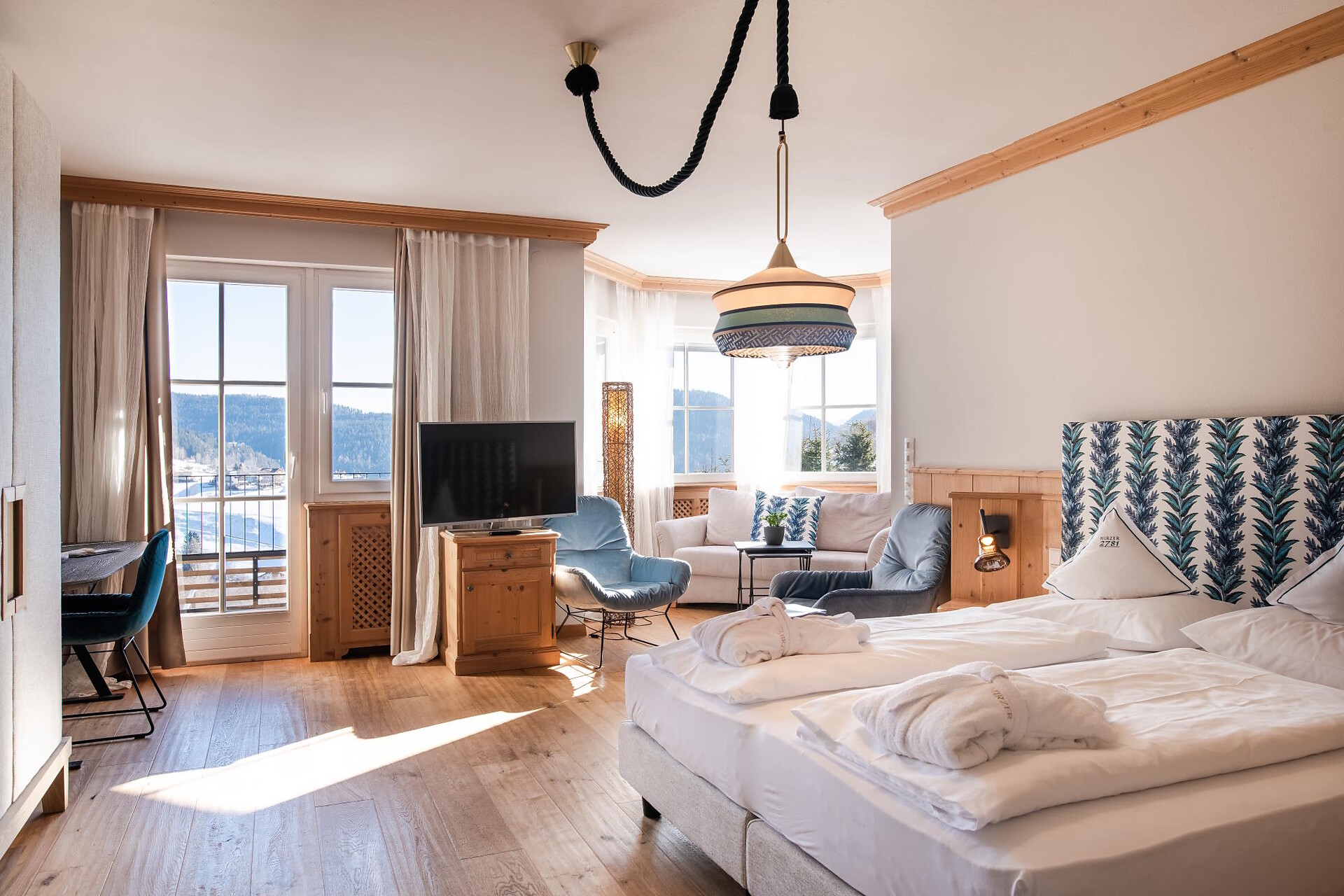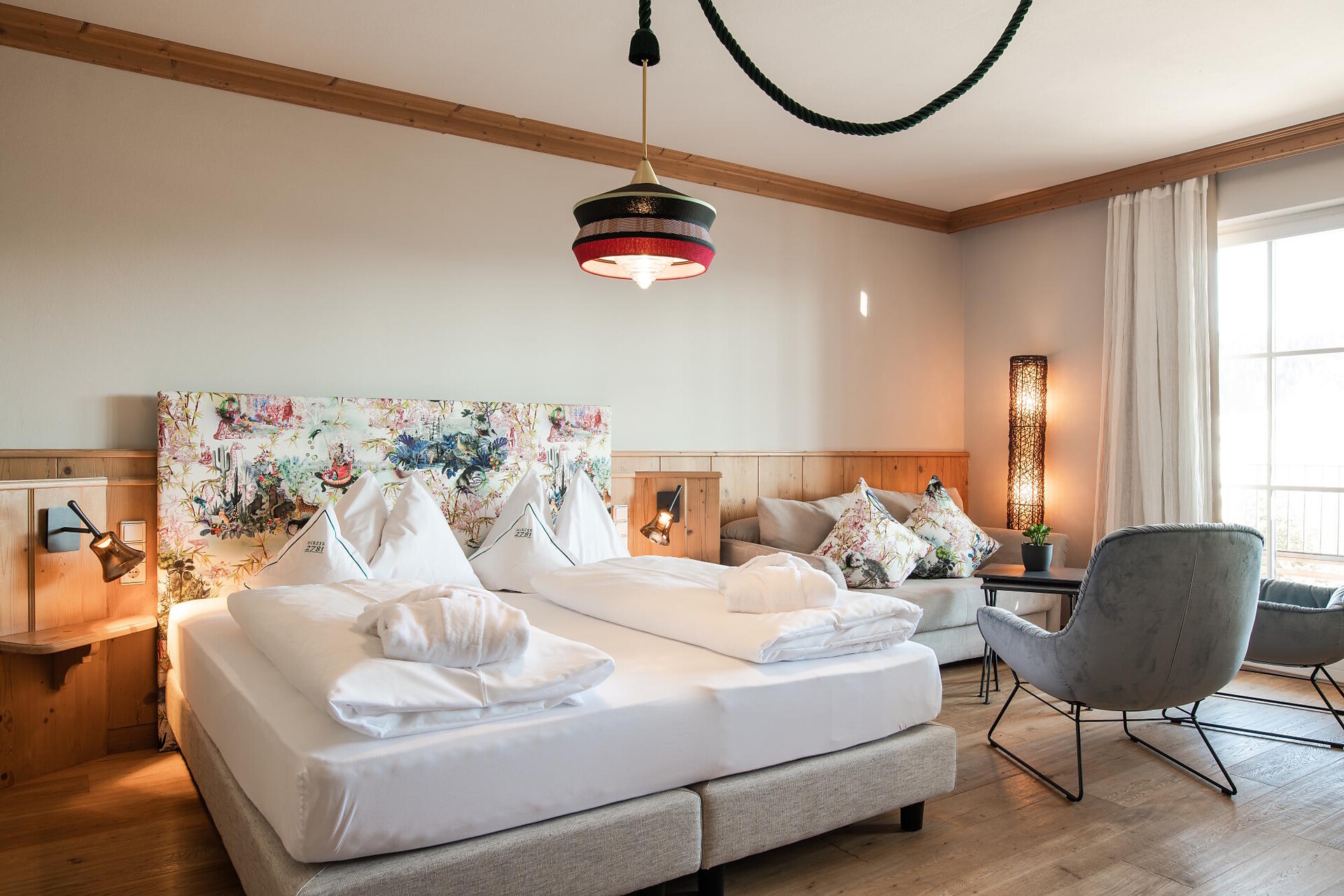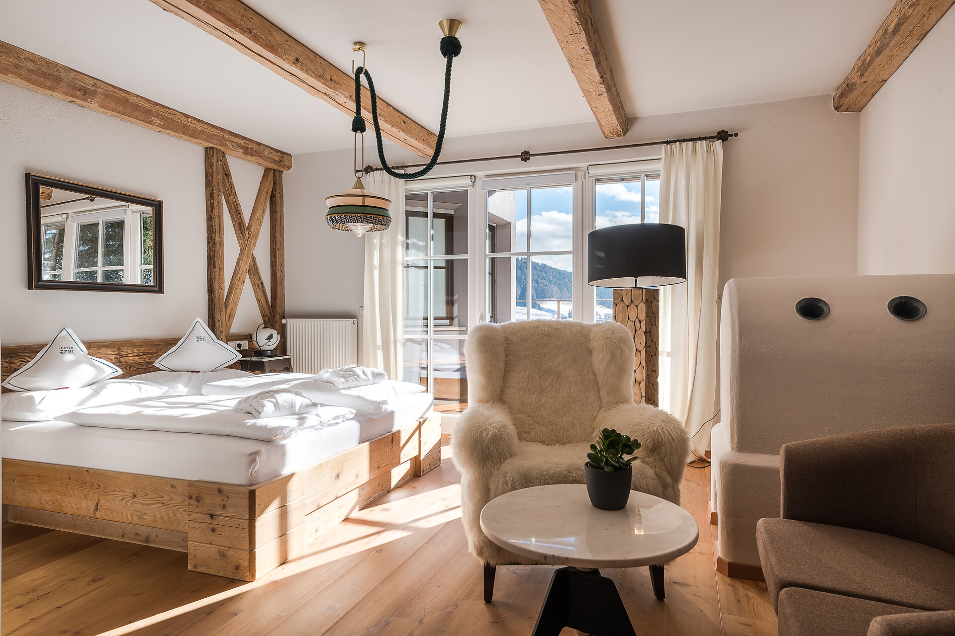 - Schlafzimmer mit großzügigem Wohnbereich und Kachelofen