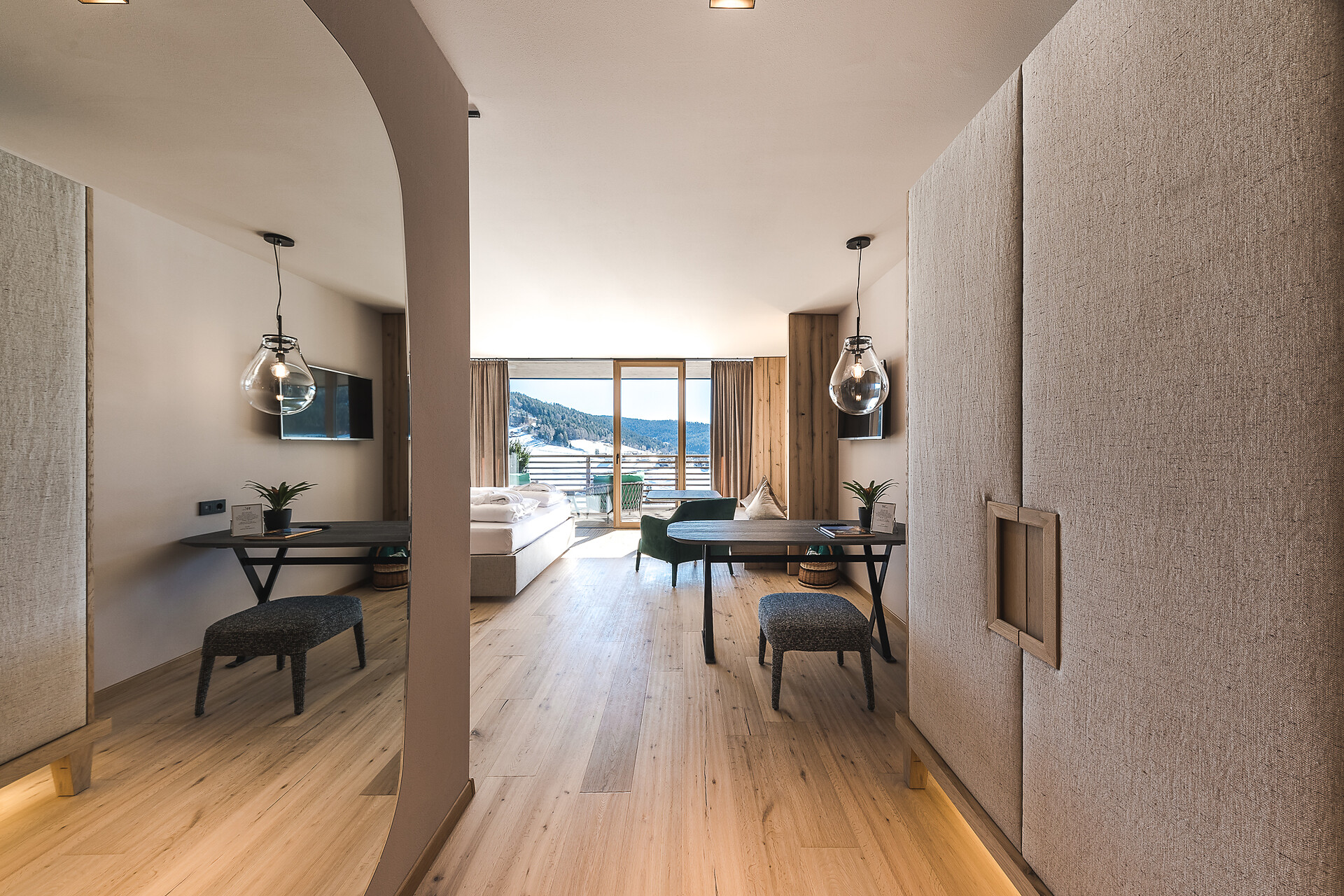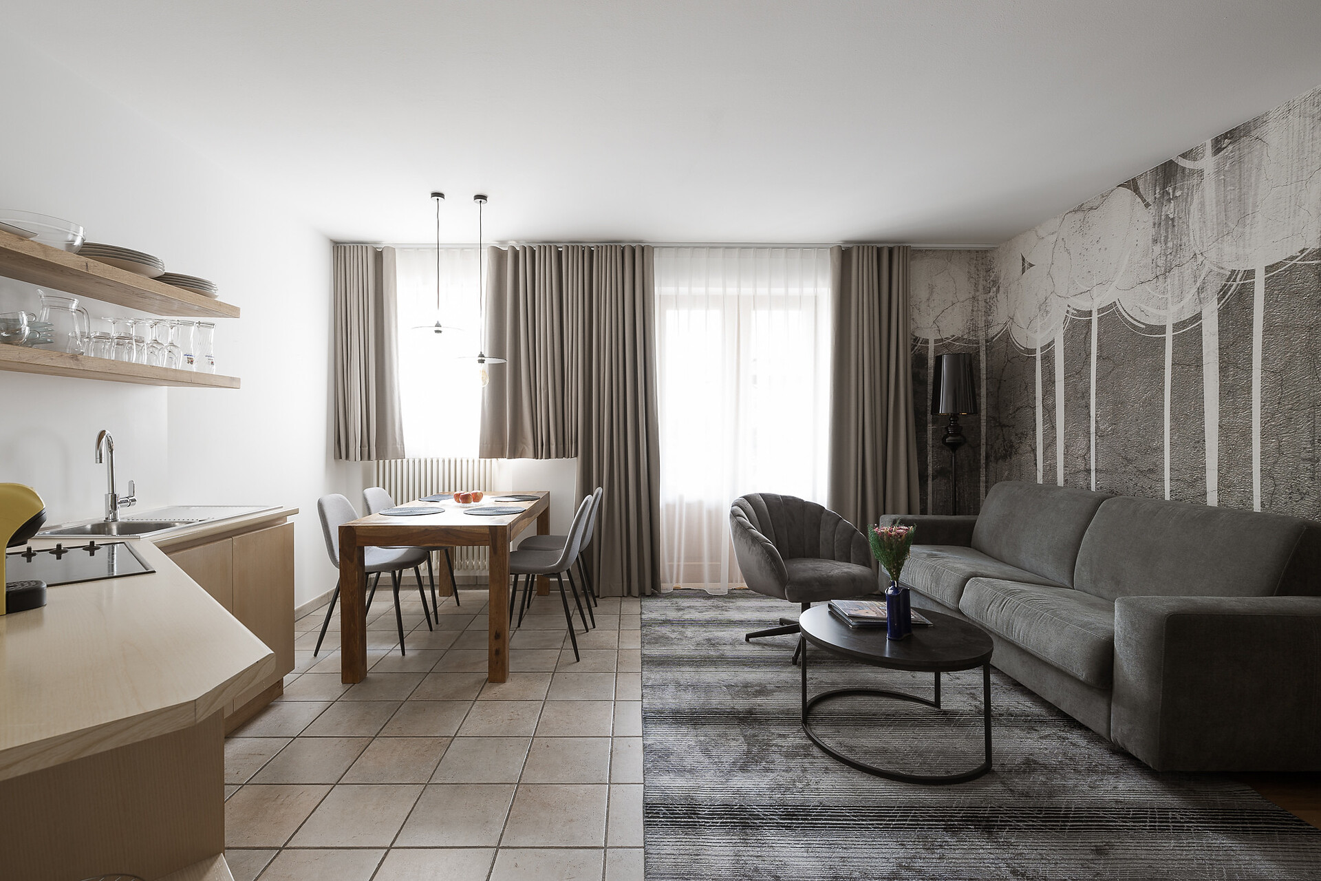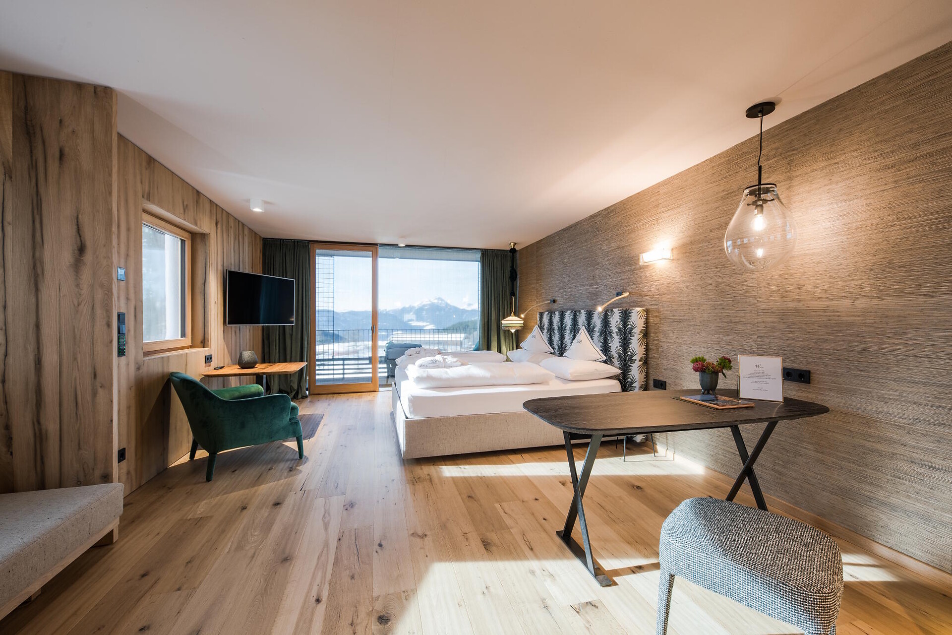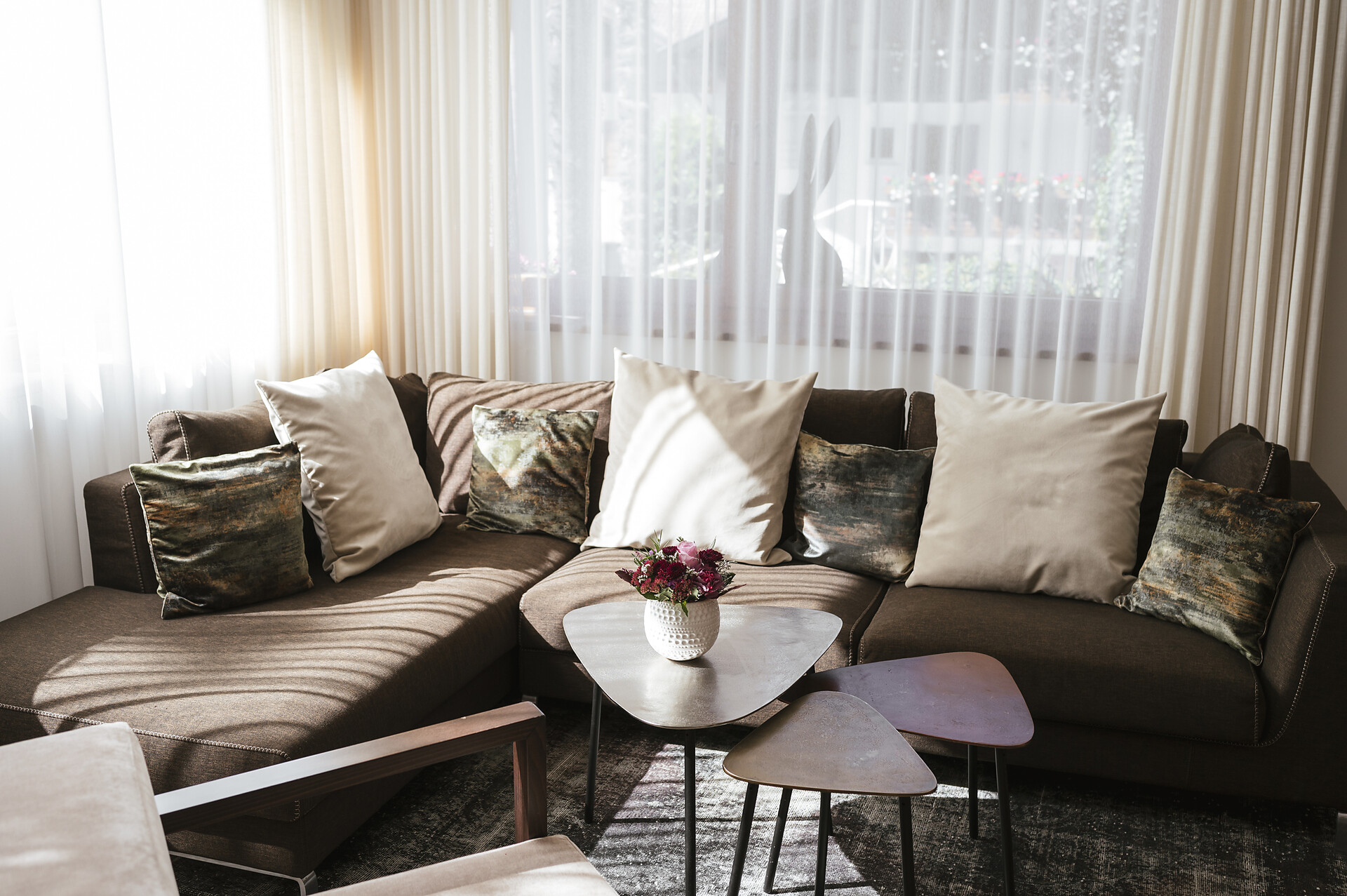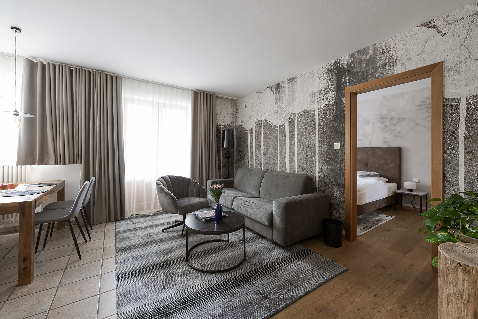 - Schlafzimmer mit großzügigem Wohnbereich und Kachelofen