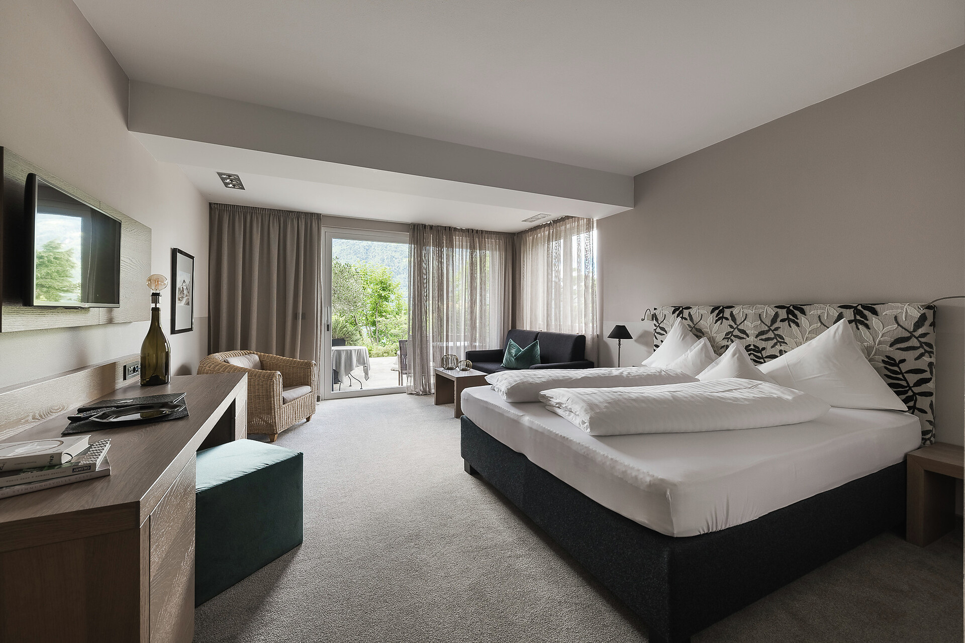 Doppelzimmer, Suite, Doppelbett, Terrasse, Safe, Kaffee-/Tee-Maschine, Dusche / Bad, Haarfön, Bademantel, TV, Satellit/Kabel, Internetanschluss, Haupthaus, Südseite