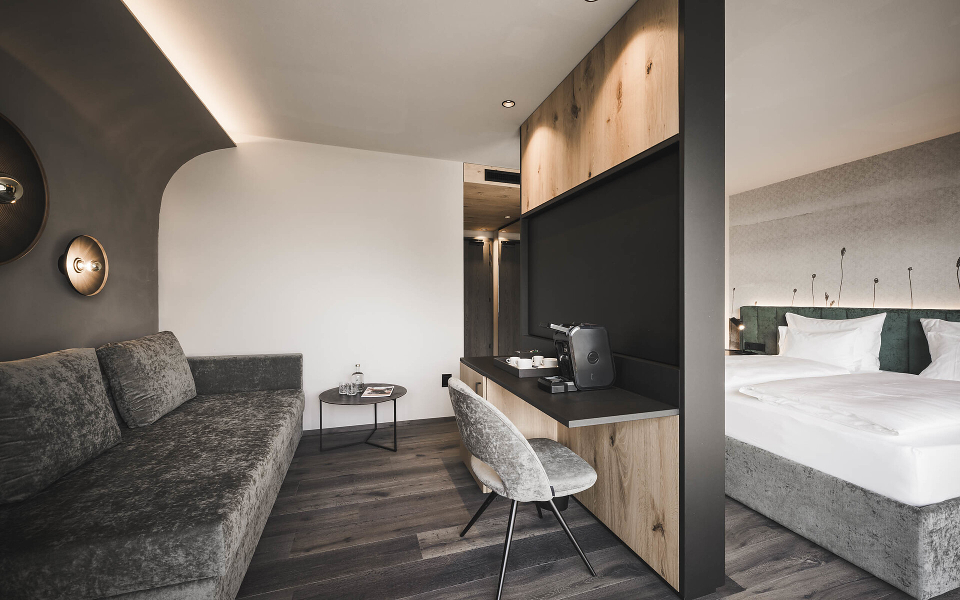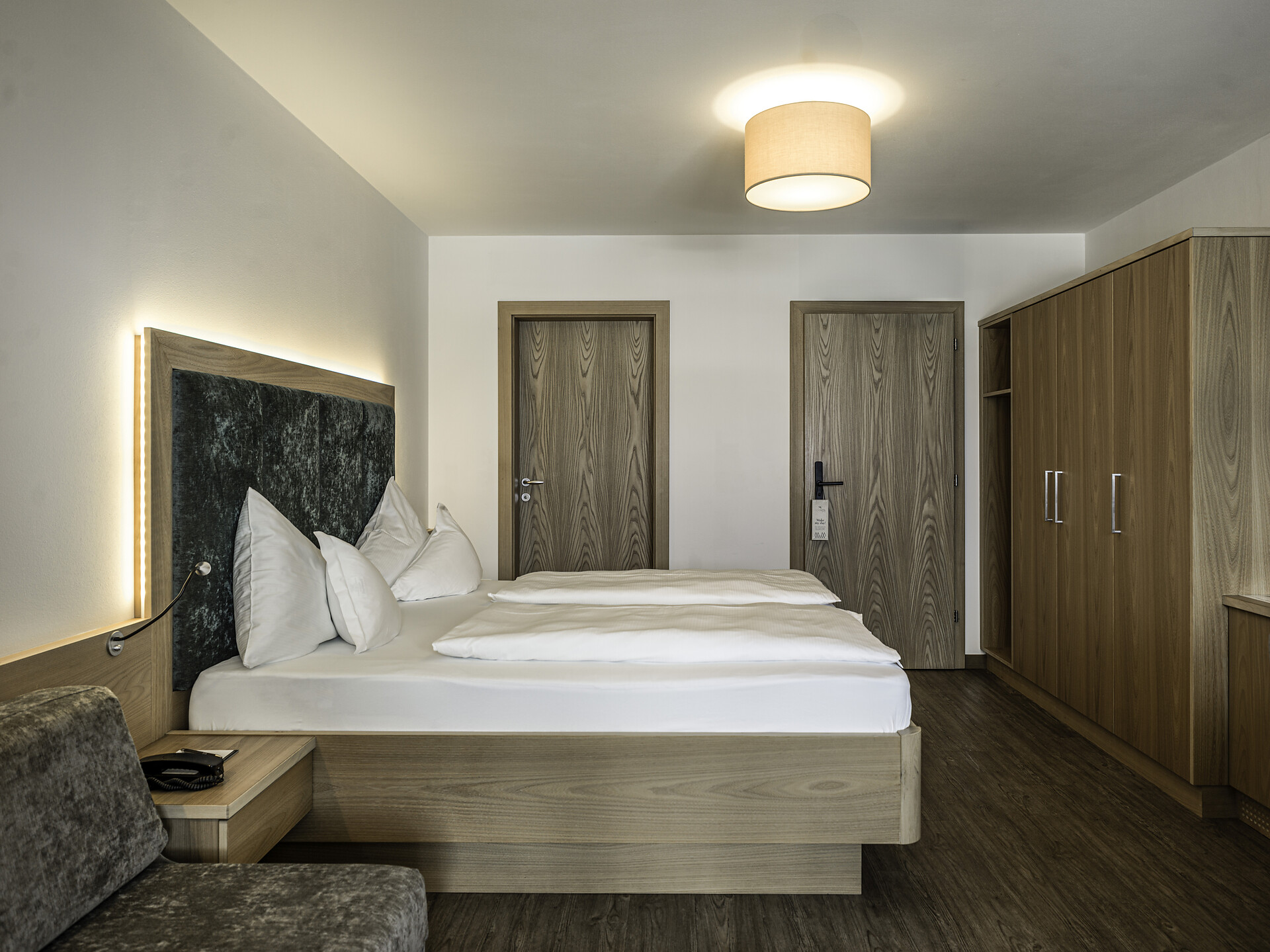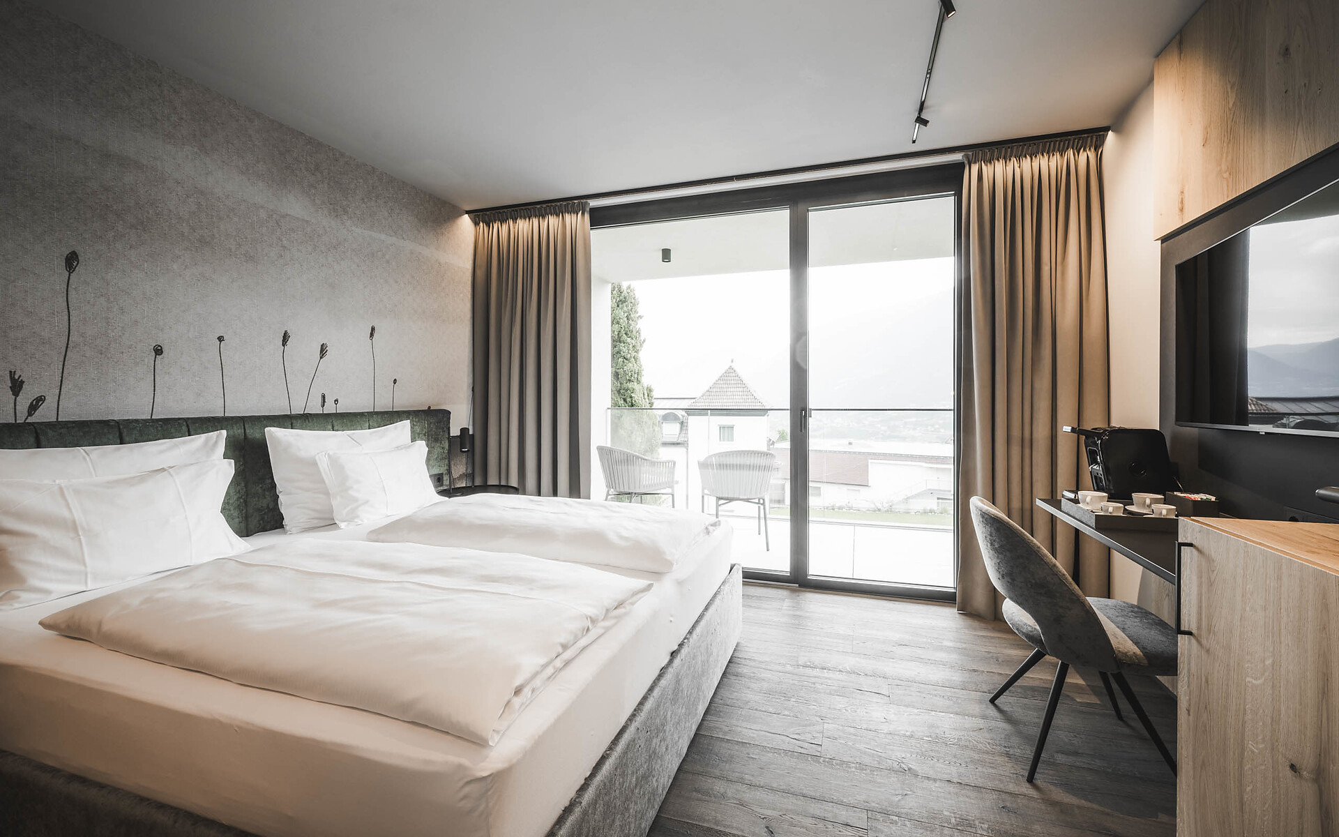 Doppelzimmer mit Hartboden | Kingsize-Bett | Sitzecke | Bad mit Dusche | Bidet |Balkon möbliert | Smart TV | Klimaanlage | Minibar | Kaffeemaschine | Wasserkocher | Safe