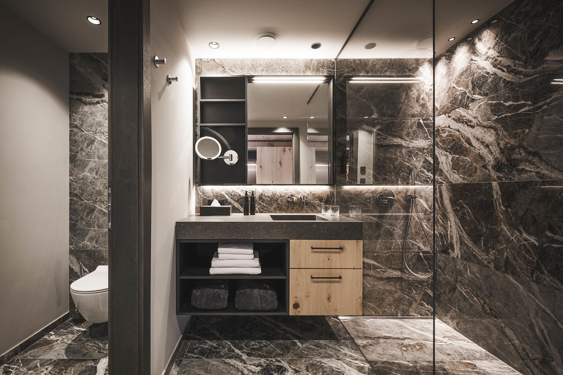 Zwei Kingsize-Boxspringbetten | ausziehbare Couch | zwei Badezimmer mit großzügiger Dusche | KEIN Bidet | eigene Sauna | Whirlpool | Balkon möbliert | Smart TV | Klimaanlage | Minibar | Kaffeemaschine | Wasserkocher | Safe