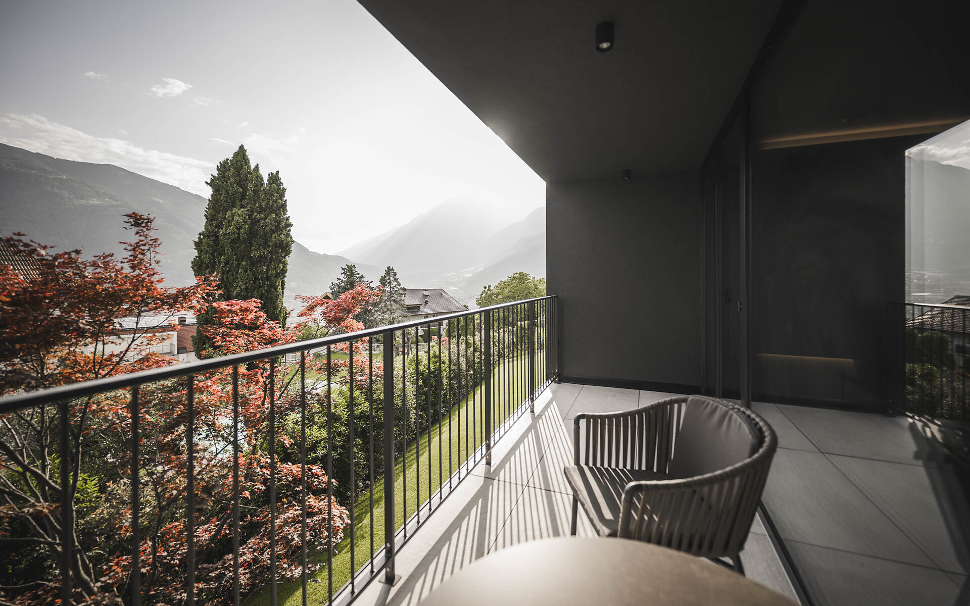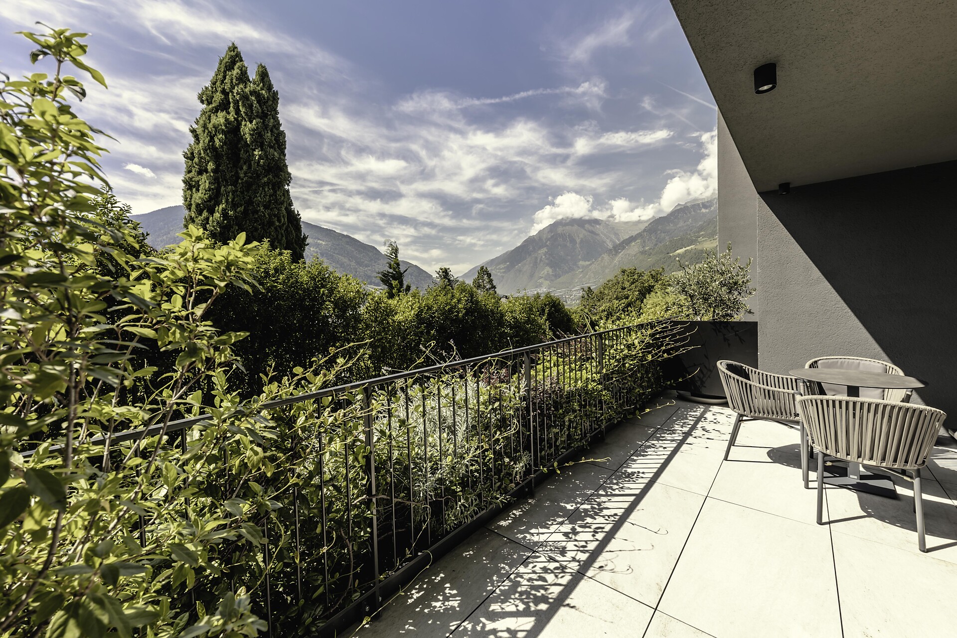 Lassen Sie sich vom SomView bezaubern und verführen! Nirgends ist Südtirol schöner als hier: hoch über Meran, mit einem Blick auf schroffe Berge und sanfte Hügel.
