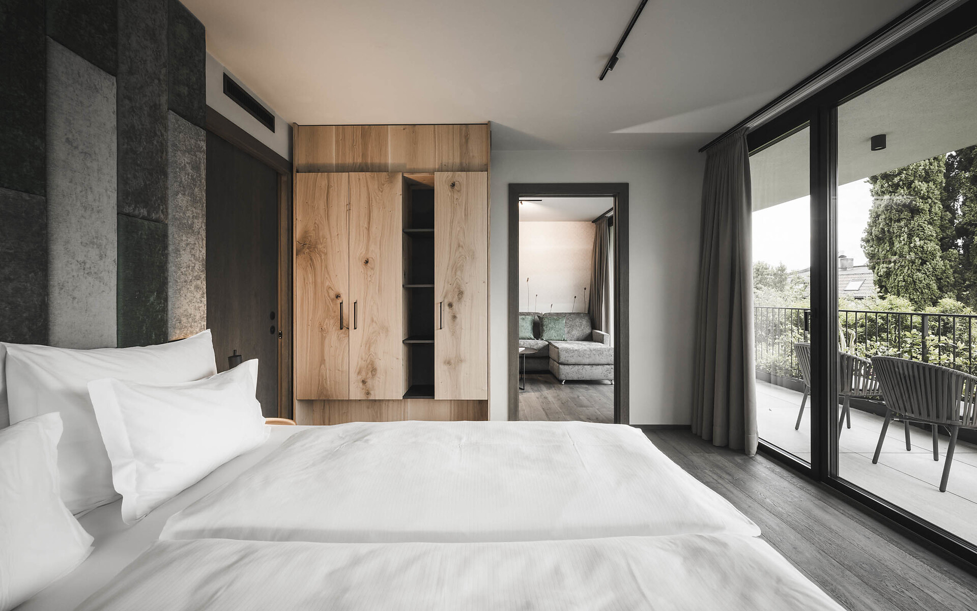 Kingsize-Boxspringbett | ausziehbare Couch | Badezimmer mit großzügiger Dusche | WC separat | Bidet | Balkon im Erdgeschoss möbliert | Smart TV | Klimaanlage | Minibar | Kaffeemaschine | Wasserkocher | Safe