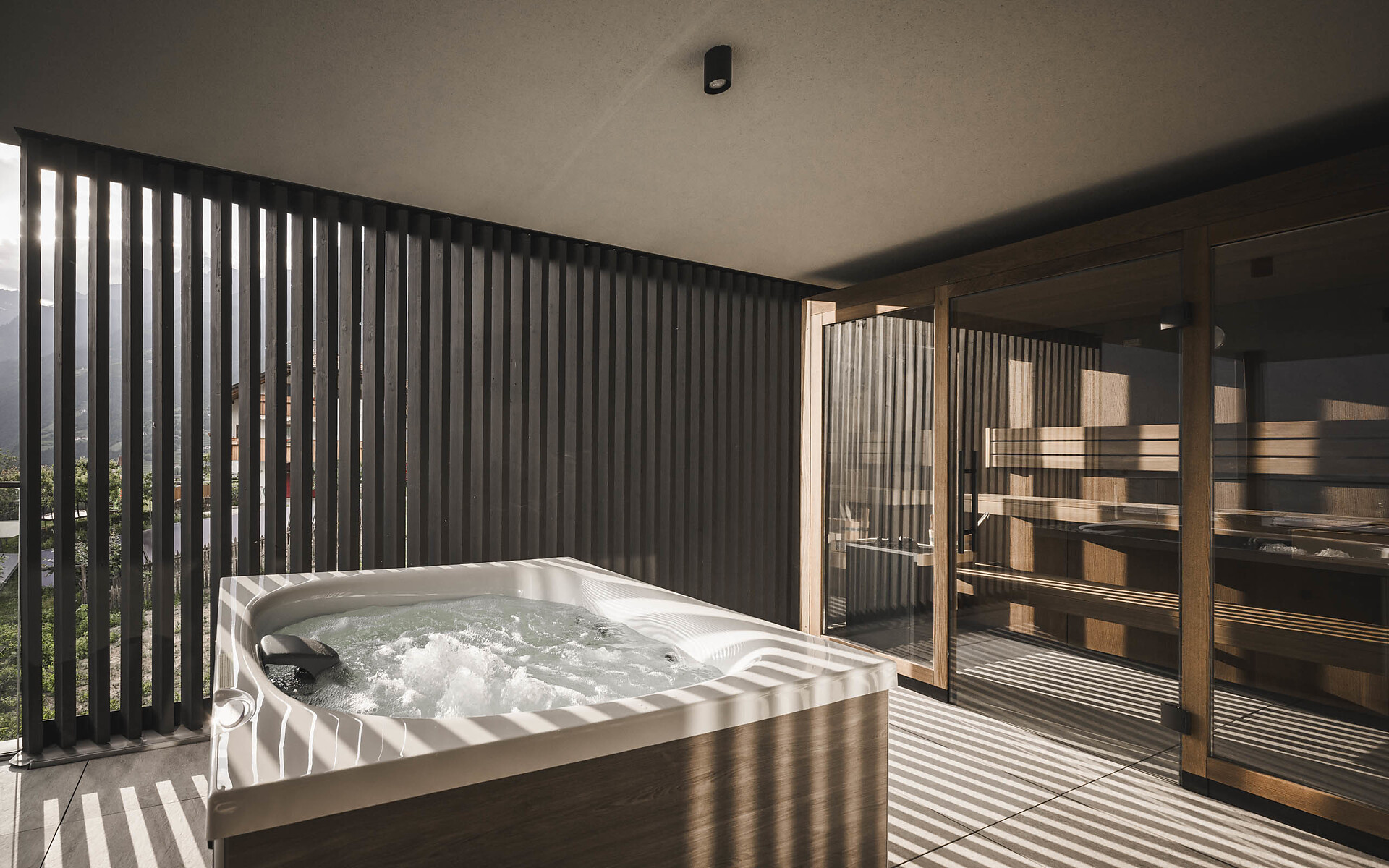 Tauchen Sie ein ins Wohlgefühl! Mit einem Sprung in den SomVita-Sky oder Garden Pool spüren Sie die Lebensgeister und genießen neben dem erfrischenden Nass vor allem eins: den herrlichen Blick über das Meraner Land.