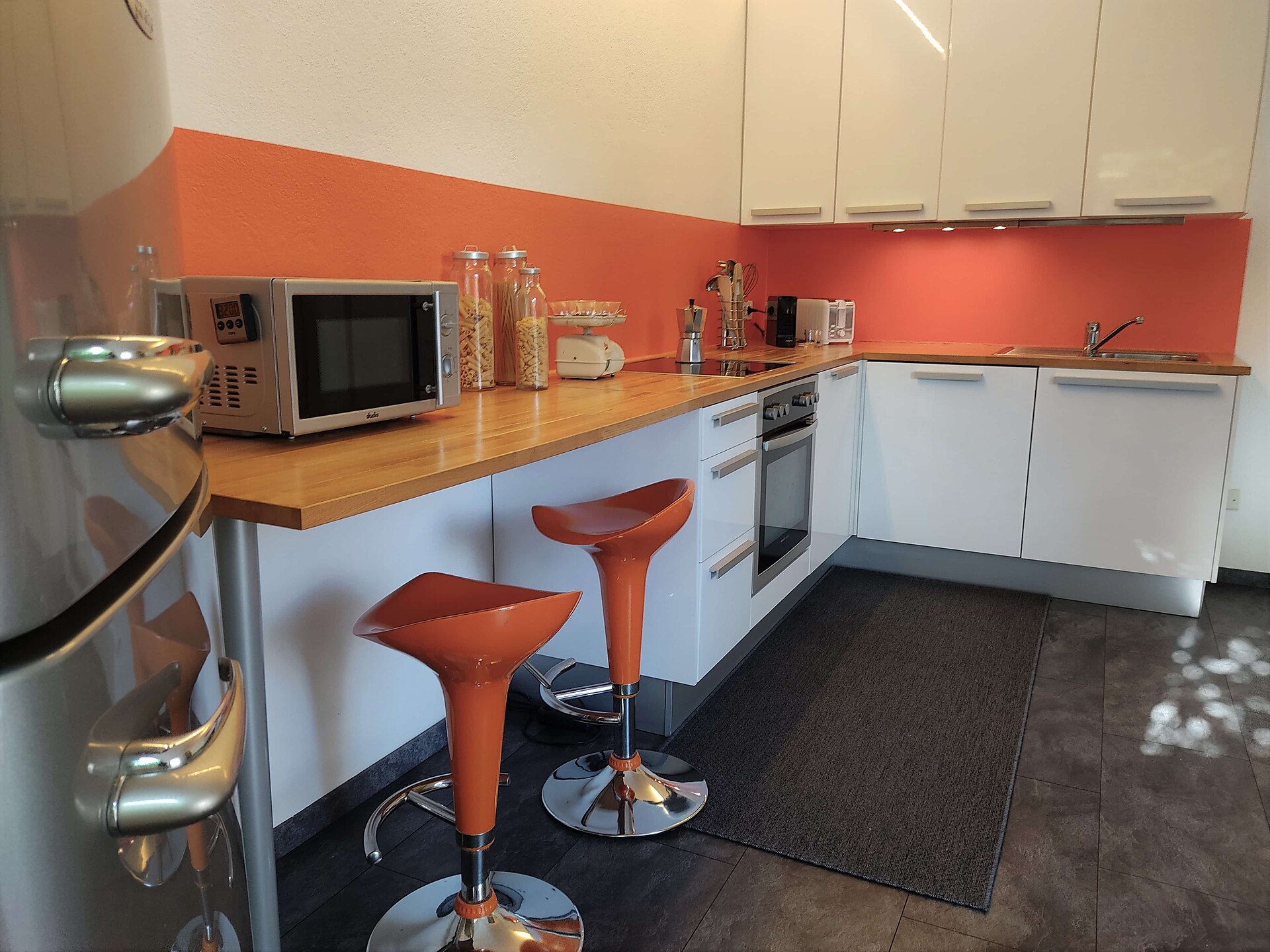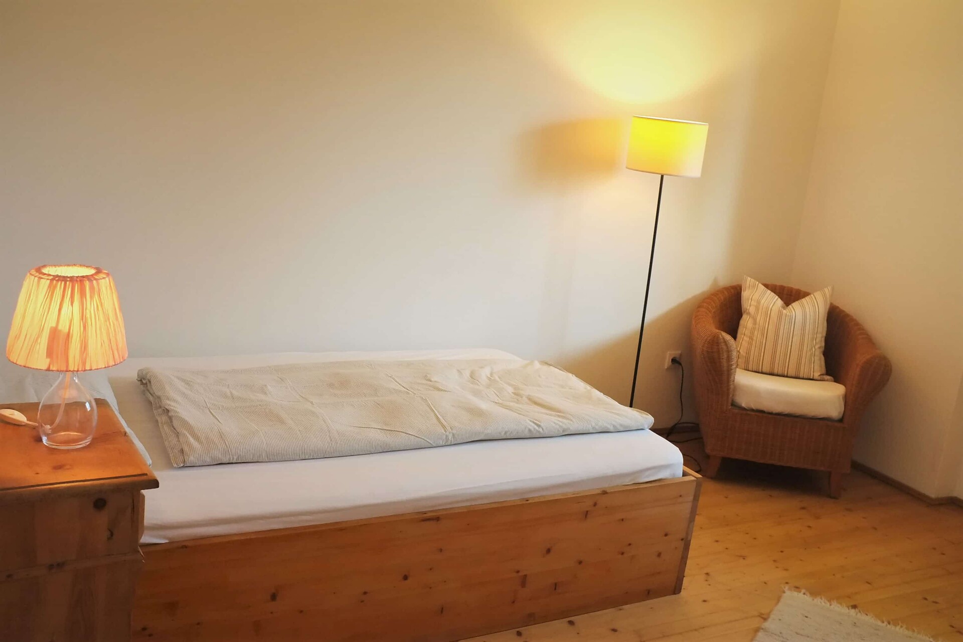 Wir heißen Sie in unserer gemütlich eingerichteten, großräumigen 85 m² Ferienwohnung herzlich willkommen. Neben einem großen Wohn- und Essbereich verfügt das Appartement über eine komplett eingerichtete Küche, ein modernes Bad mit begehbarer Dusche, ein geräumiges Doppelzimmer sowie ein Einzelzimmer. In allen Räumen befindet sich Parkett- oder Fliesenboden.