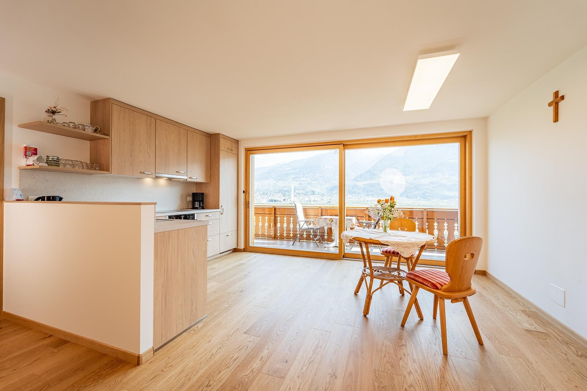 Auf der Ostseite im 2. Stock hat man einen tollen Blick auf Meran und Umgebung.