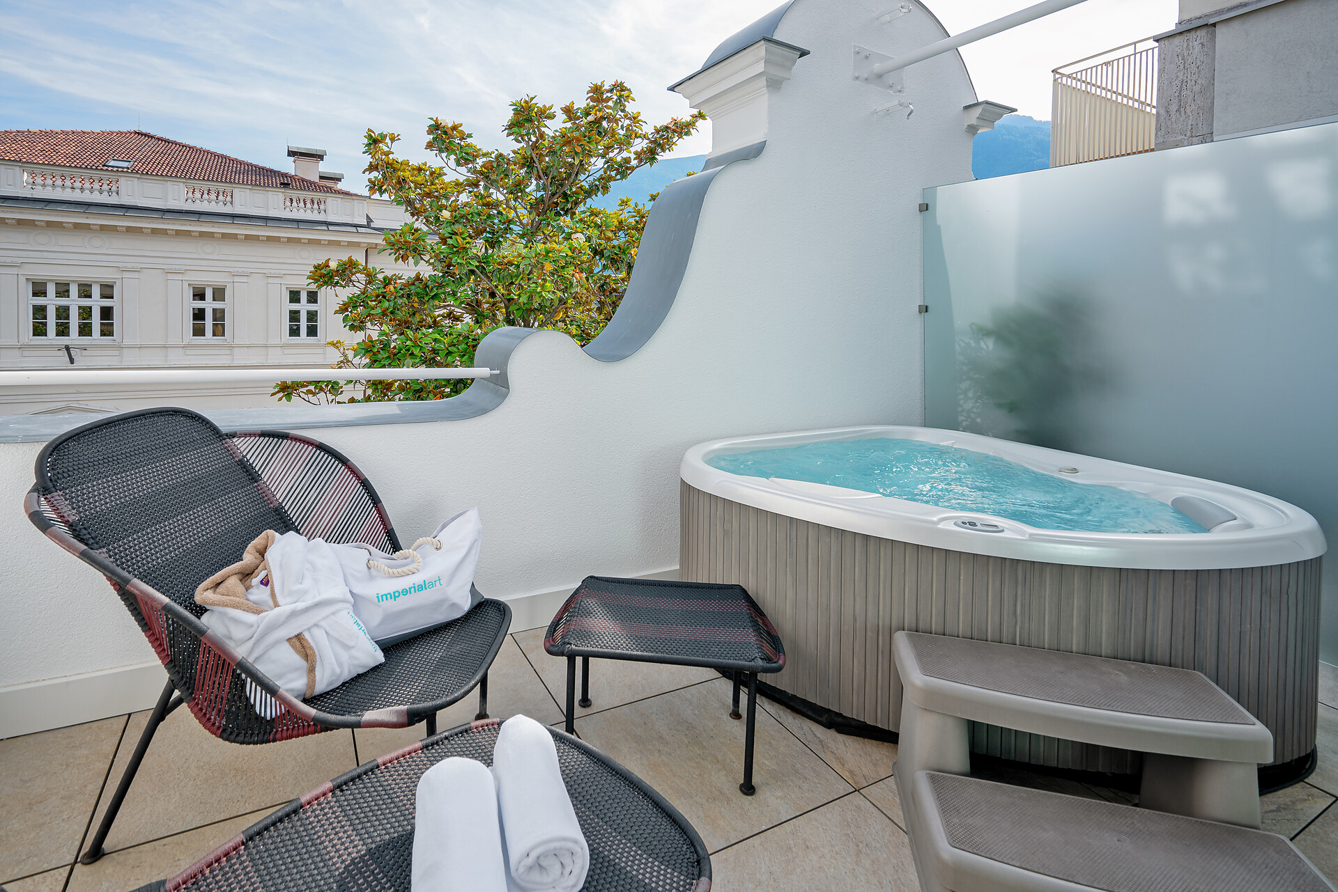 Suite, Doppelbett, Babybett, Balkon, Terrasse, Klimaanlage, Allergikerzimmer, Minibar, Safe, Kaffee-/Tee-Maschine, Dusche / Bad, Bidet, Haarfön, Bademantel, TV, Satellit/Kabel, WLAN, Internetanschluss, Haupthaus, Panoramablick