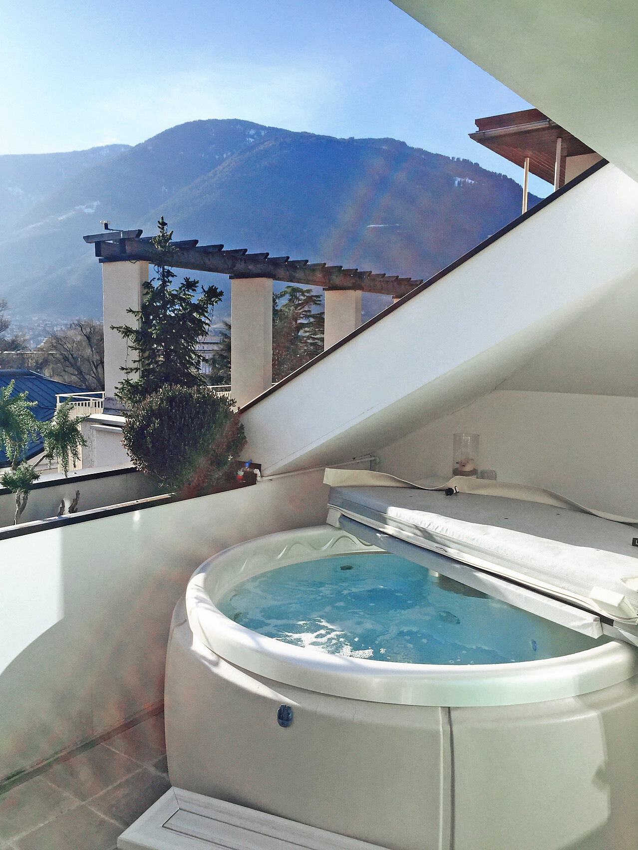 der helle raum auf zwei etagen, vermischt gekonnt architektur und kunst. ganz im naturell seines kreativen erschaffers ulrich egger. heller holzboden, weiße möbel, klare formen - das gefühl auf wolke ∞ zu schweben. und im whirlpool auf dem dach einen 360° blick über meran und seine berge genießen. jetzt ist auch mal genug mit alltag! stress ciao ciao, wir sind auf dem roof top. paradise loft - chilling it soft!