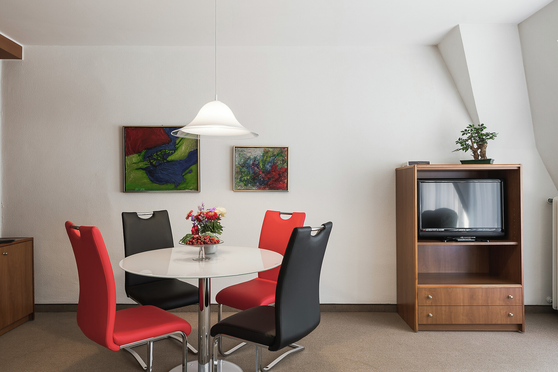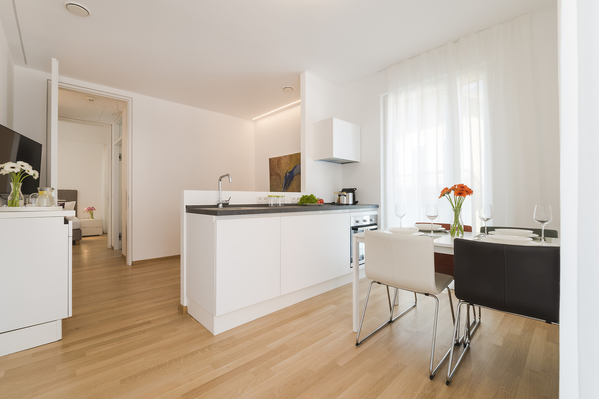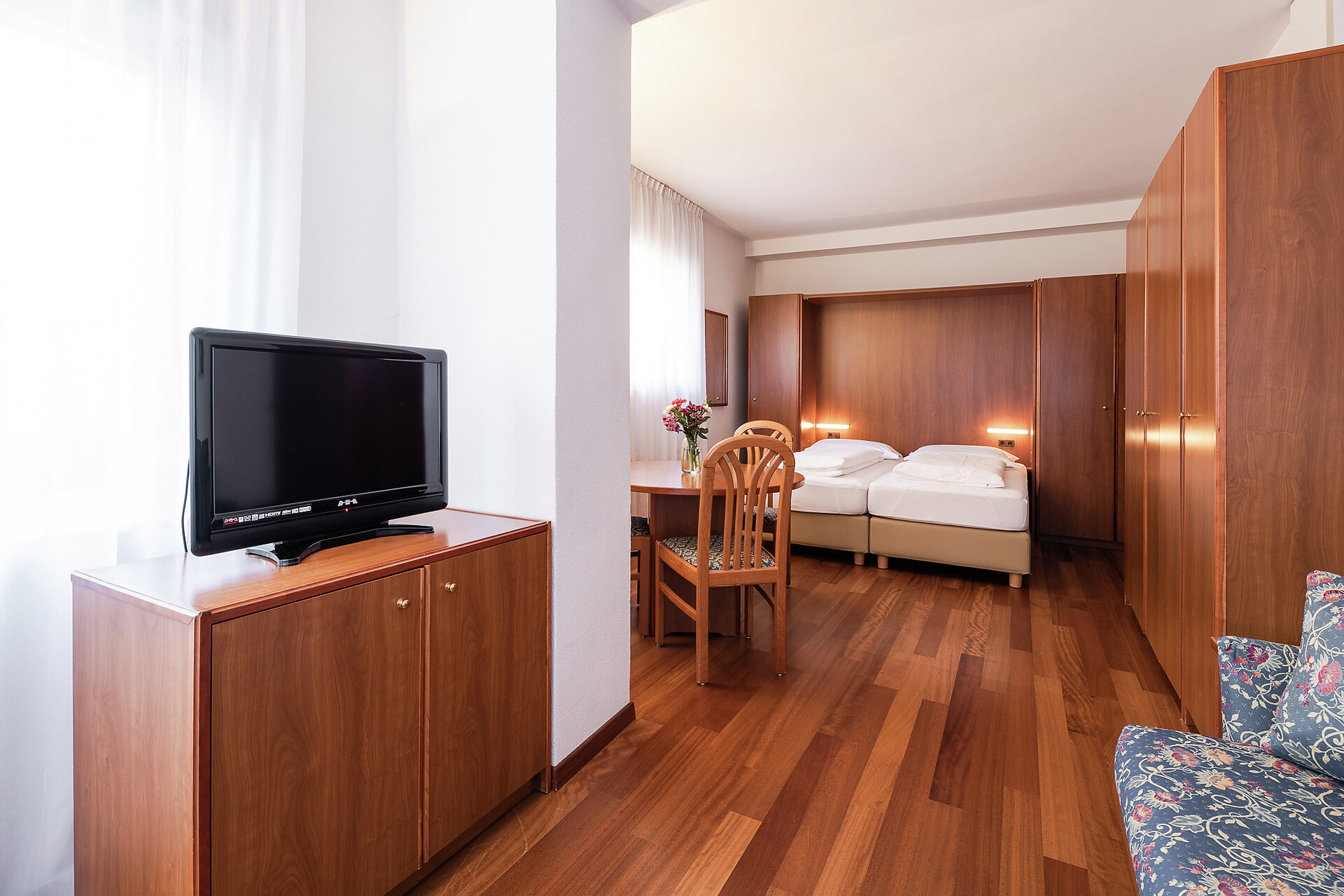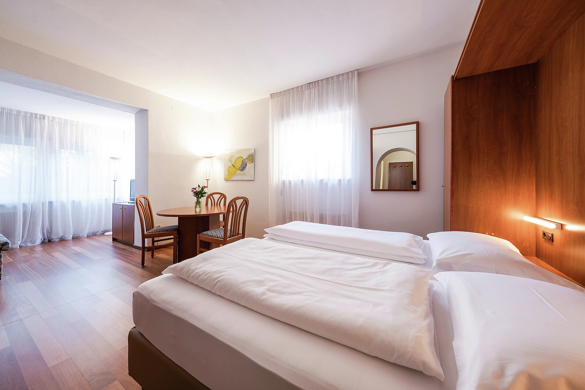 Einige Wohnungen sind für 5 Personen geeignet. Bitte beachten Sie, dass für die fünfte Person ein Aufpreis berechnet wird. Das Bett wird im Doppelzimmer vorbereitet.