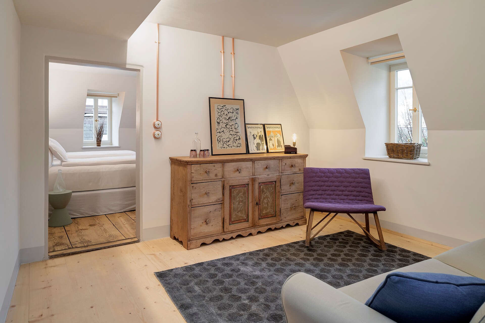 Die Renovierung erfolgte unter Berücksichtigung des Denkmalschutzgedankens, wobei frühere Elemente wie Böden und Türen sorgfältig erhalten wurden. Das Steinacher Stadthaus verbindet gekonnt Altes und Traditionelles mit modernem Design und Komfort. Jedes Zimmer ist individuell gestaltet und die meisten verfügen noch über die Originalböden. Alle Suiten sind mit sehr bequemen Doppelbetten mit allergenfreien Matratzen und Toppern, Bettdecken, verschiedenen Kissen, feiner Bettwäsche und einem modernen, hellen Bad ausgestattet.