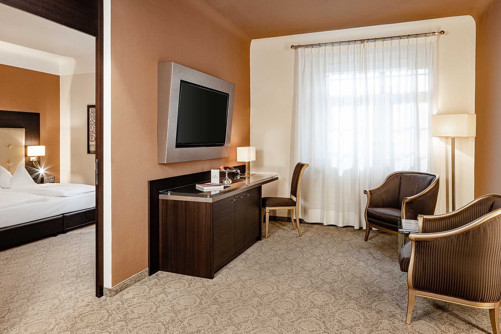 Suite, Doppelbett, Balkon, Klimaanlage, Minibar, Safe, Dusche / Bad, Bidet, Haarfön, Bademantel, TV, Satellit/Kabel, WLAN, Internetanschluss, Südseite