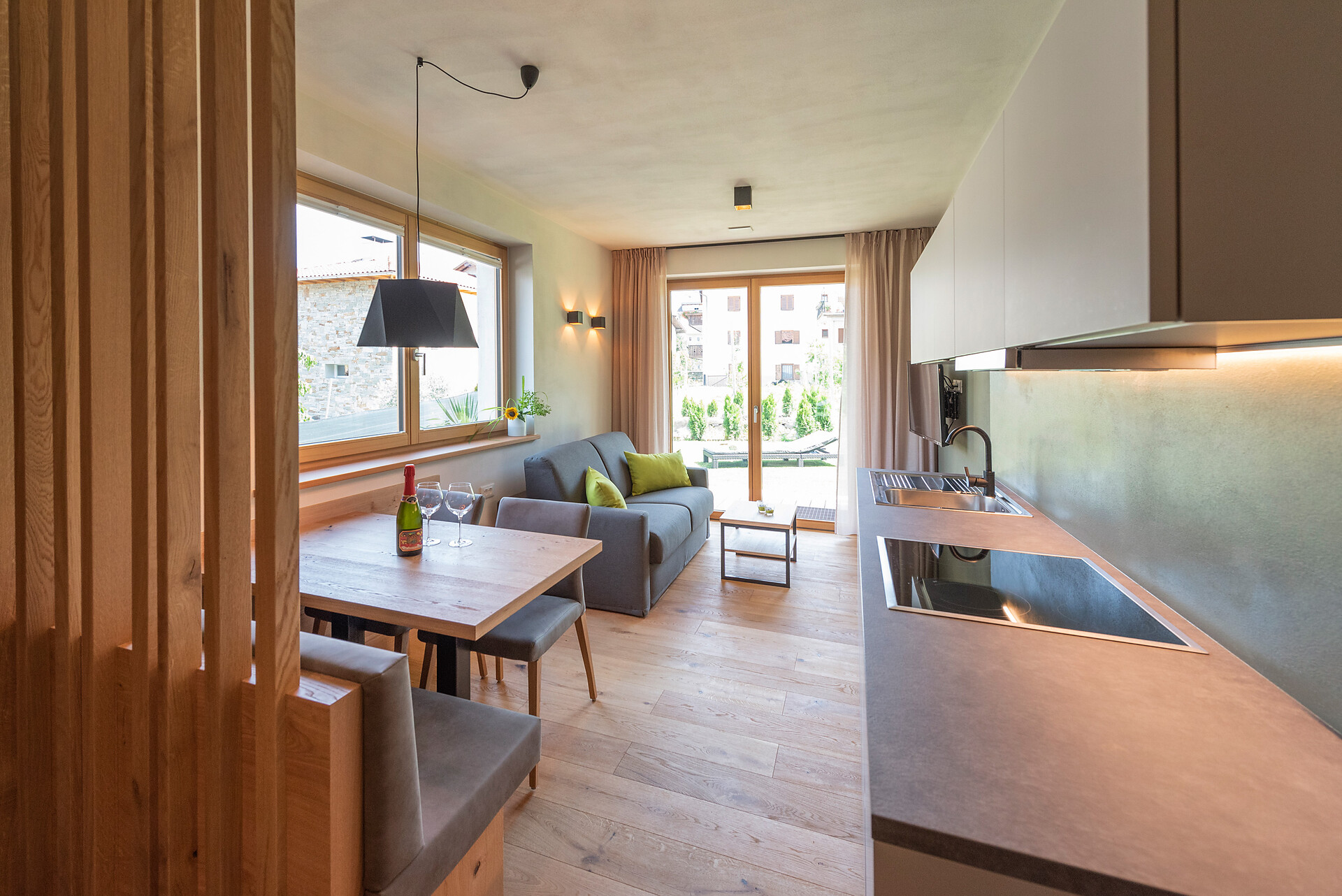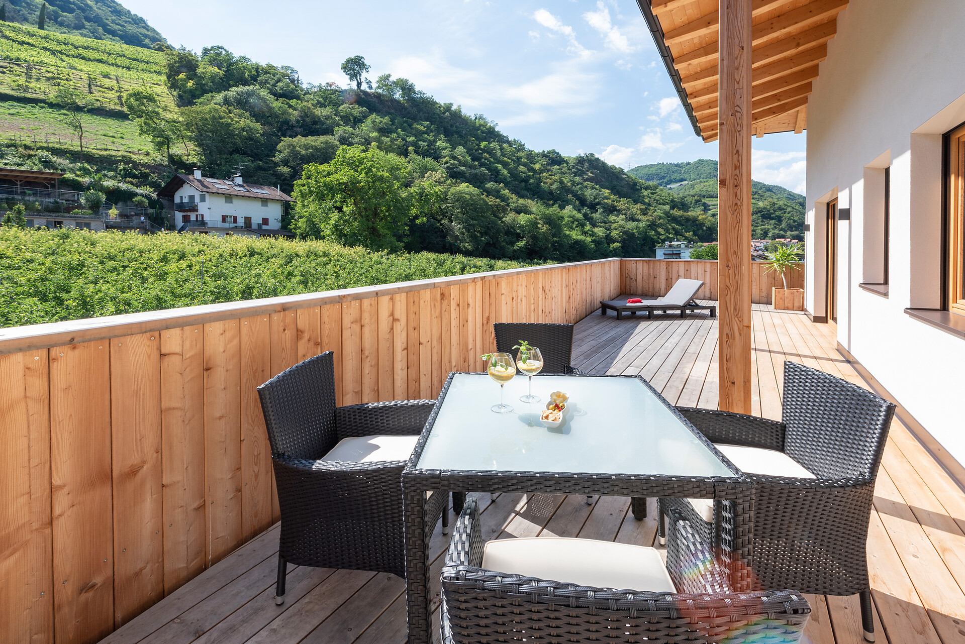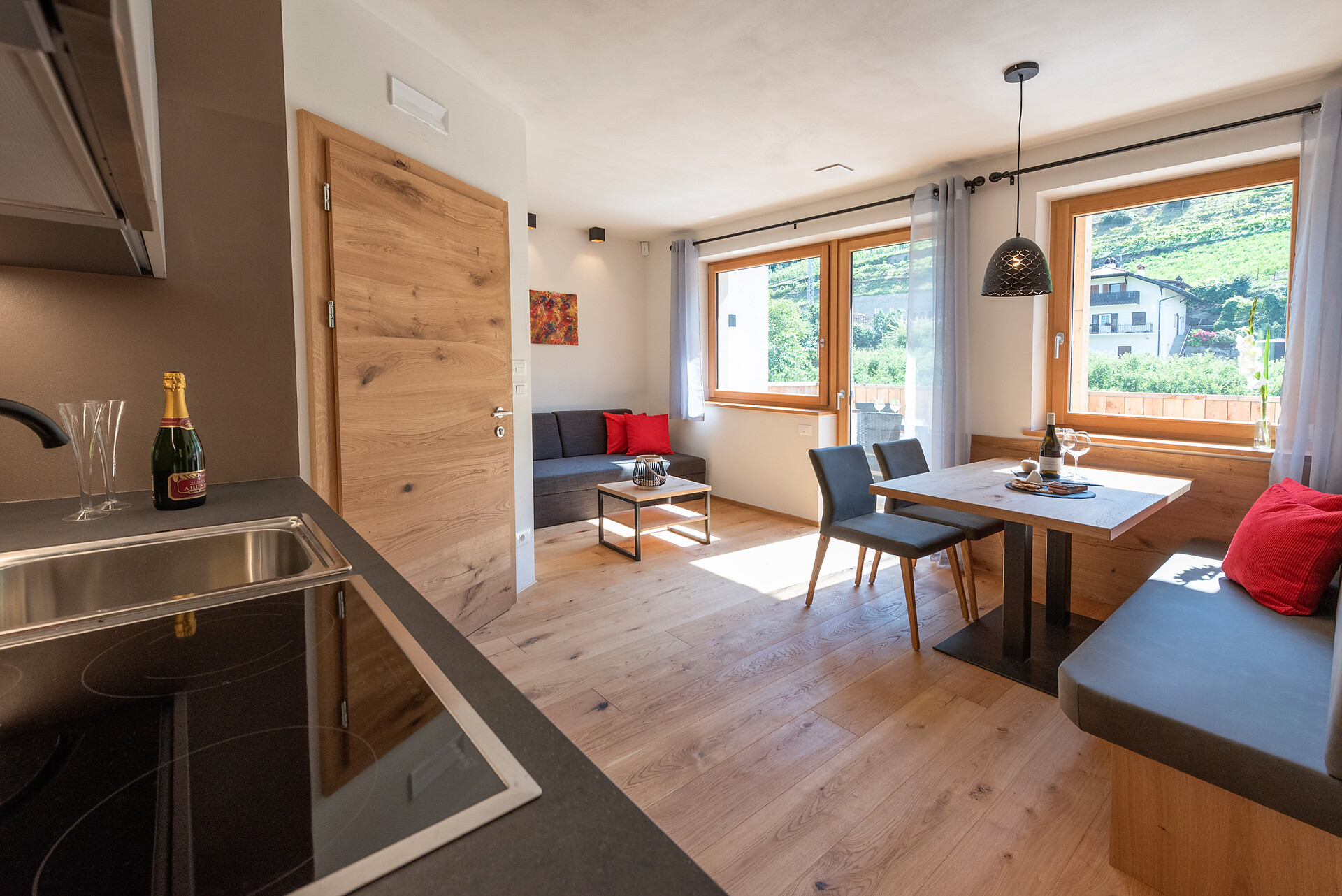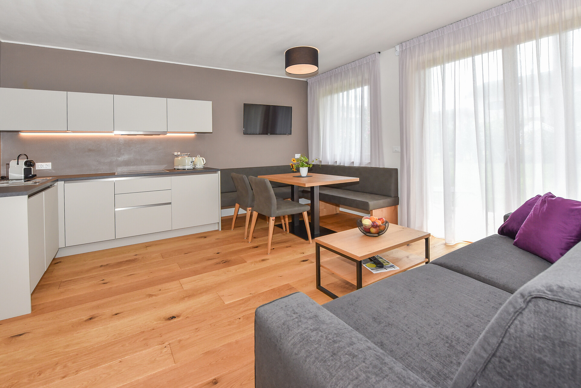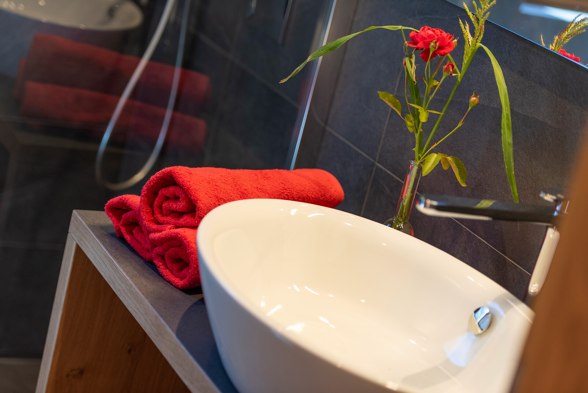 Unsere neue Mansardenwohnung Lilie mit ca. 70m^2, zwei Schlafzimmer, geräumigen Bad mit Regendusche, separaten Tages-WC mit Bidet, großer, heller Wohnküche, sonniger Terrasse und Balkon.