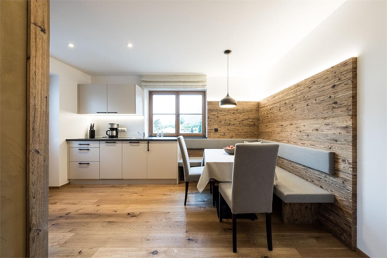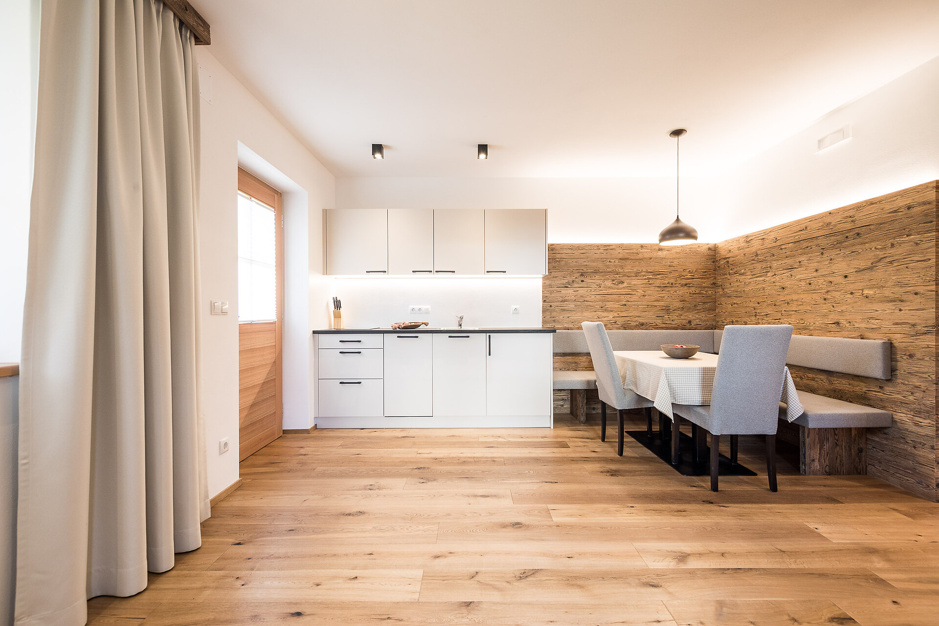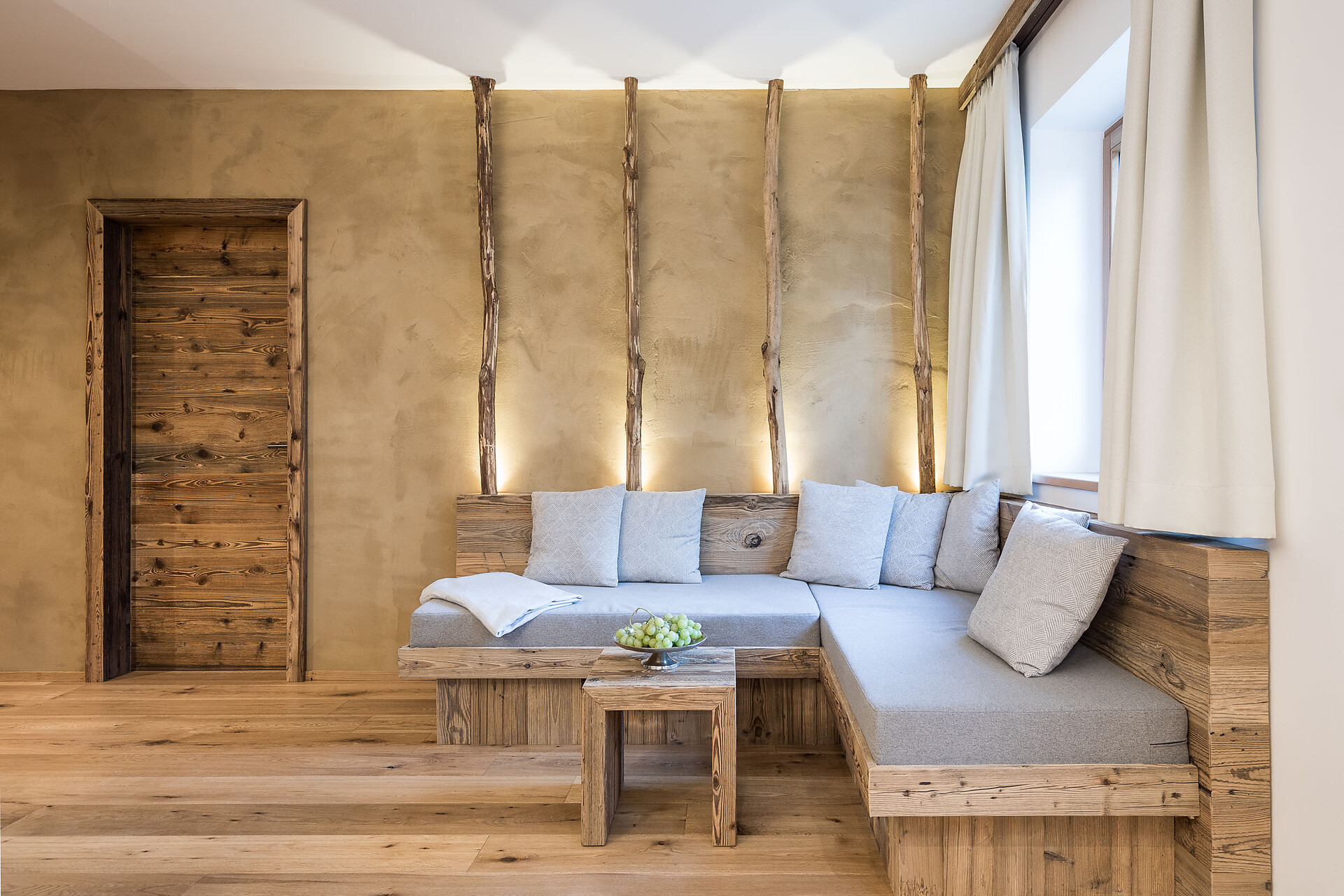 Unsere Ferienwohnungen in Naturmaterialien (Holz, Lehm, Kalk) für je 2 Personen liegen ebenerdig mit direktem Zugang zum Garten mit Blick auf den Badeteich, den Kräuterhügel und die umliegende Bergwelt.