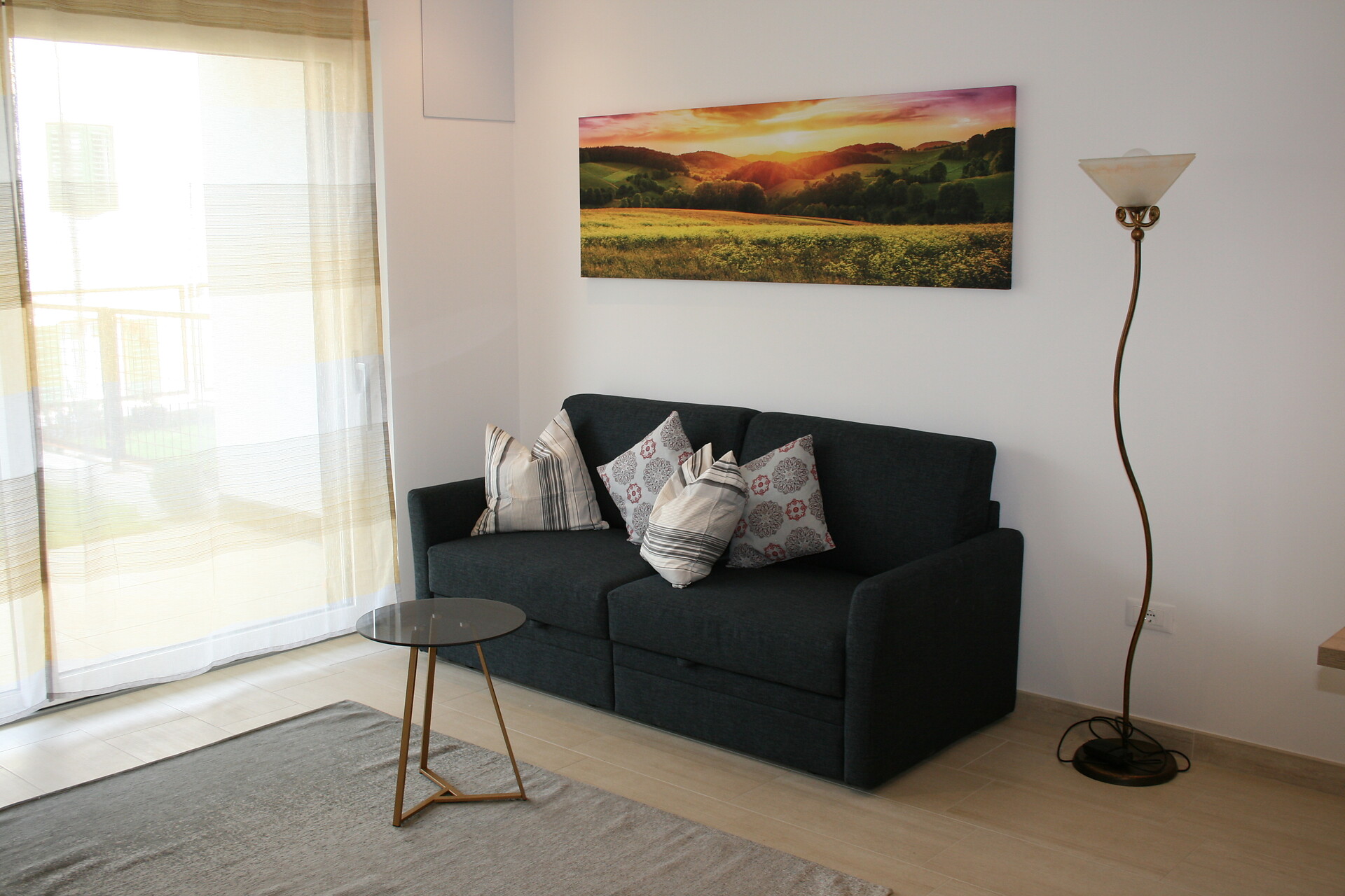 Doppelbett, Babybett, Bettsofa, Terrasse, Garten, Klimaanlage, Separater Wohnraum, Bettwäsche vorhanden, Nichtraucher-Apartment, Wohnküche, Kaffeemaschine, Geschirrspülmaschine, Elektroherd, Mikrowelle, Geschirrausstattung, Kochfeld, Wasserkocher, Backrohr, Dusche/Bad, Bidet, Haarfön, Badetücher, Waschmaschine im Apartment, TV, Satellit/Kabel, WLAN, Internetanschluss, Reinigung auf Anfrage, Panoramablick