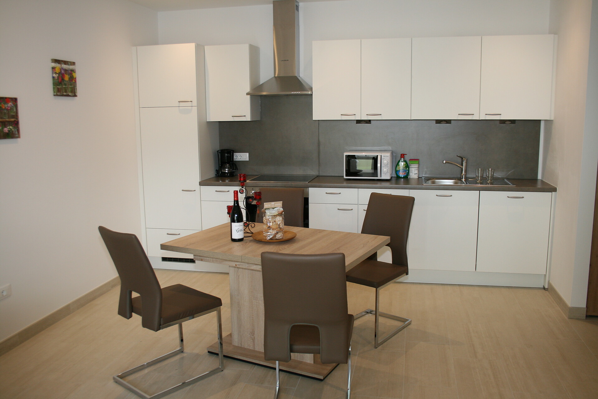 Neue großzügige Ferienwohnung 50 m² mit eigener abschließbarer Garage und Privatgarten, Bergblick, im Herzen vom Dorf, umgeben von Weinbergen.