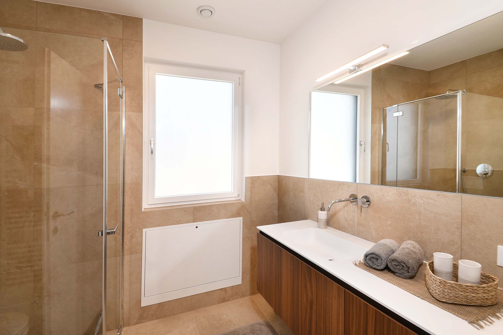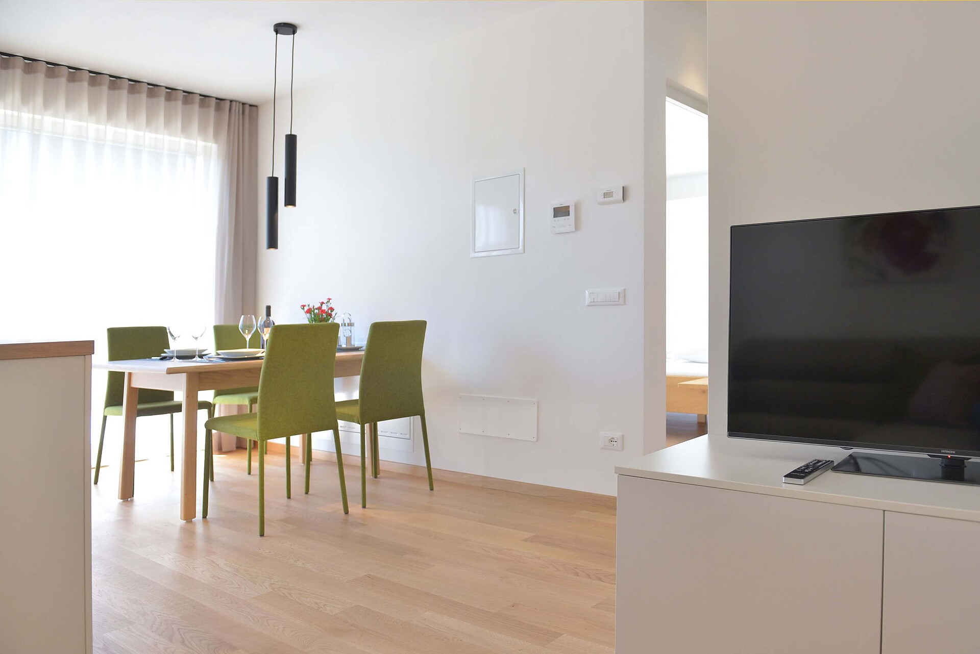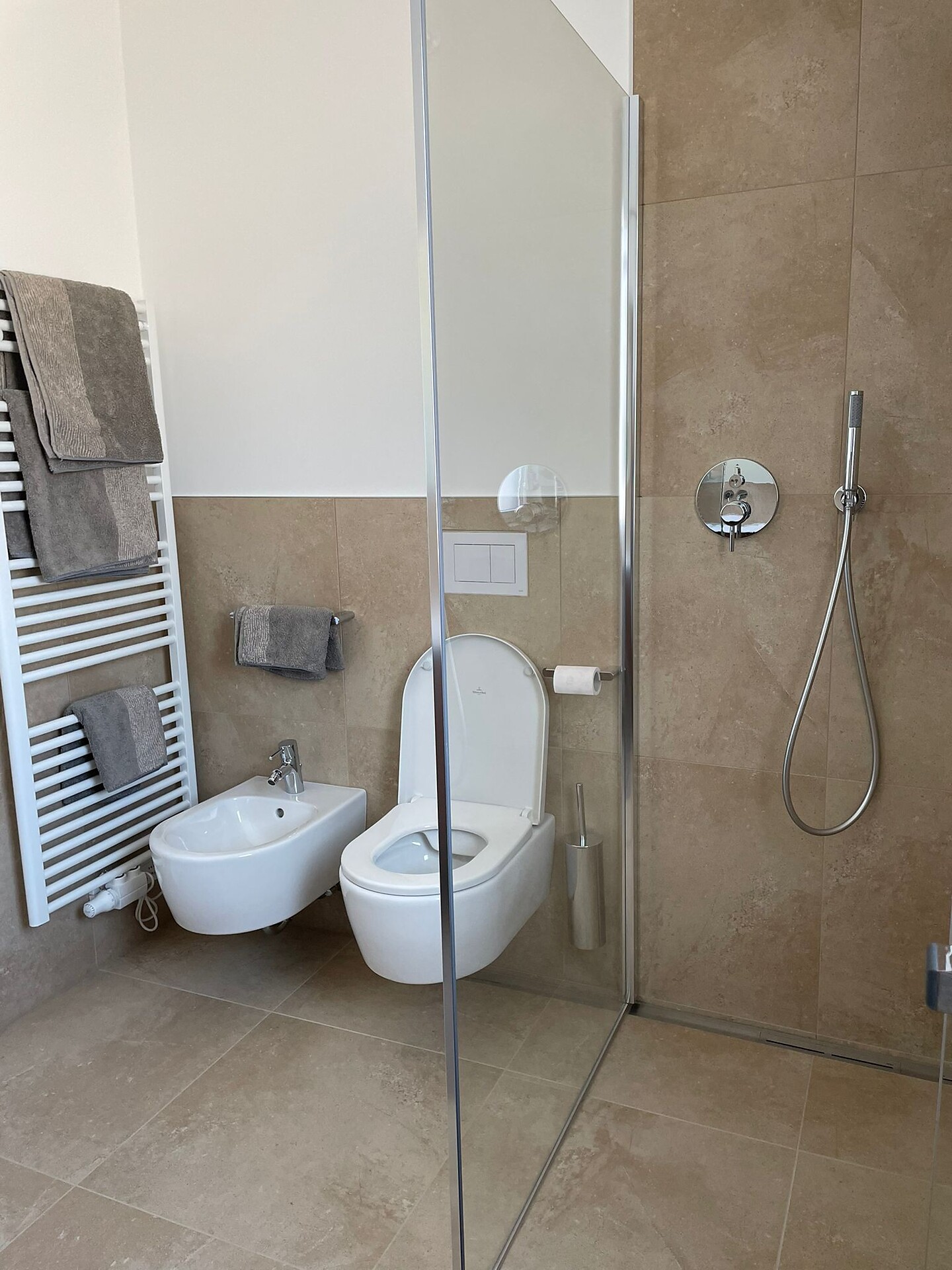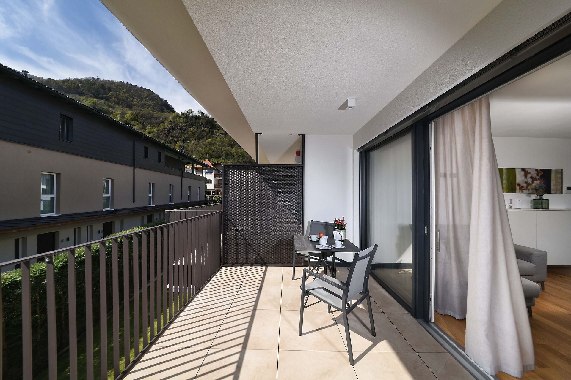 Neuerrichtetes, modernes Nichtraucher-Apartment im 1. Stock, Klimahaus A. Hochwertige Ausstattung mit Holzböden, kontrollierte Wohnraumlüftung, Fußbodenheizung und Klimaanlage, geräumiges Badezimmer mit Dusche (Regenbrause) WC, Bidet, Haarfön, vollausgestattete Küche mit Induktionskochfeld, Spülmaschine, Kühl-und Gefrierschrank, Wasserkocher, Filterkaffeemaschine, Nespresso-Kapselmaschine, gemütliche Couch, Esstisch, Flachbildfernseher, kostenfreies WLAN, lichtdurchflutet mit großer sonniger Terrasse mit Sonnenliegen und Sonnenschirm. Bettwäsche, Hand- und Duschtücher werden zur Verfügung gestellt. Ein Tiefgaragenparkplatz und ein überdachter Autoabstellplatz in der Tiefgarage sind kostenfrei vorhanden. Aufzug vorhanden.