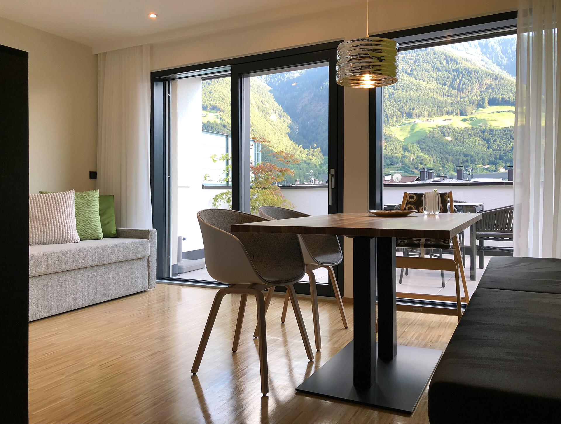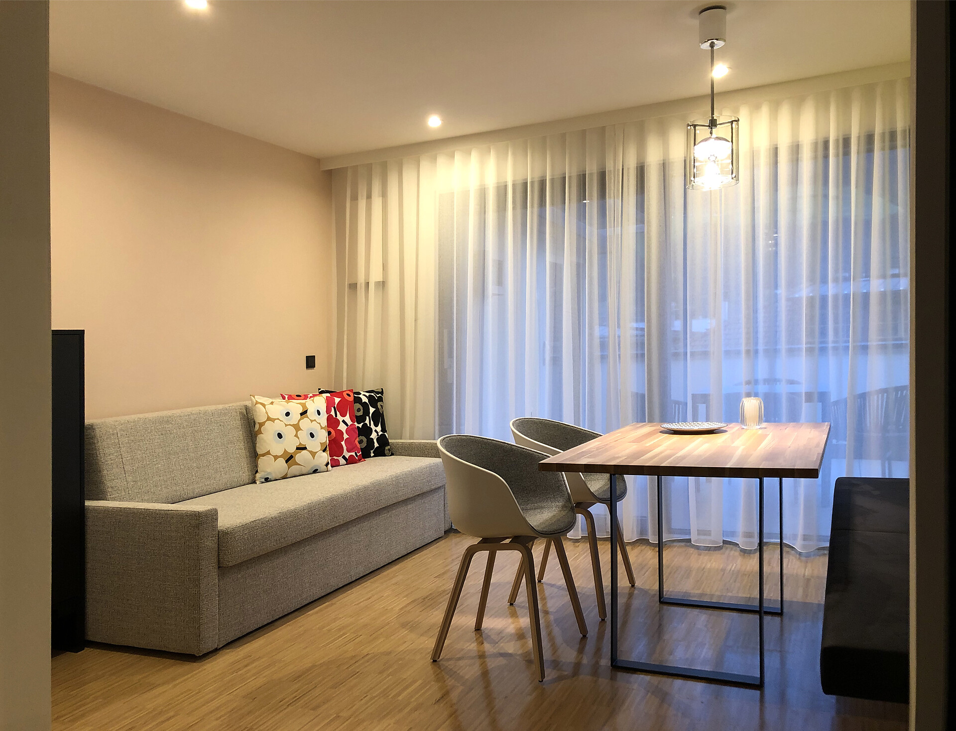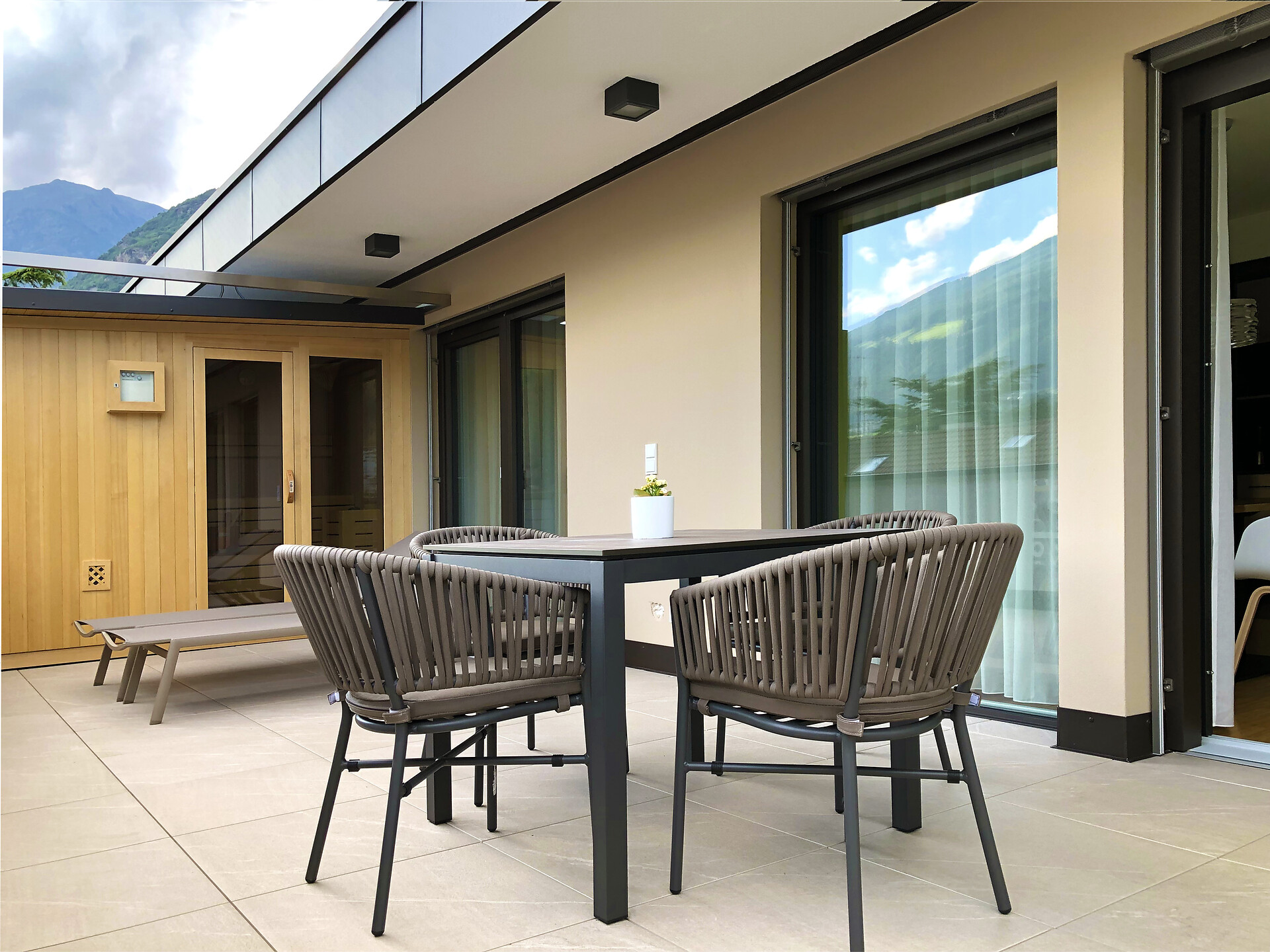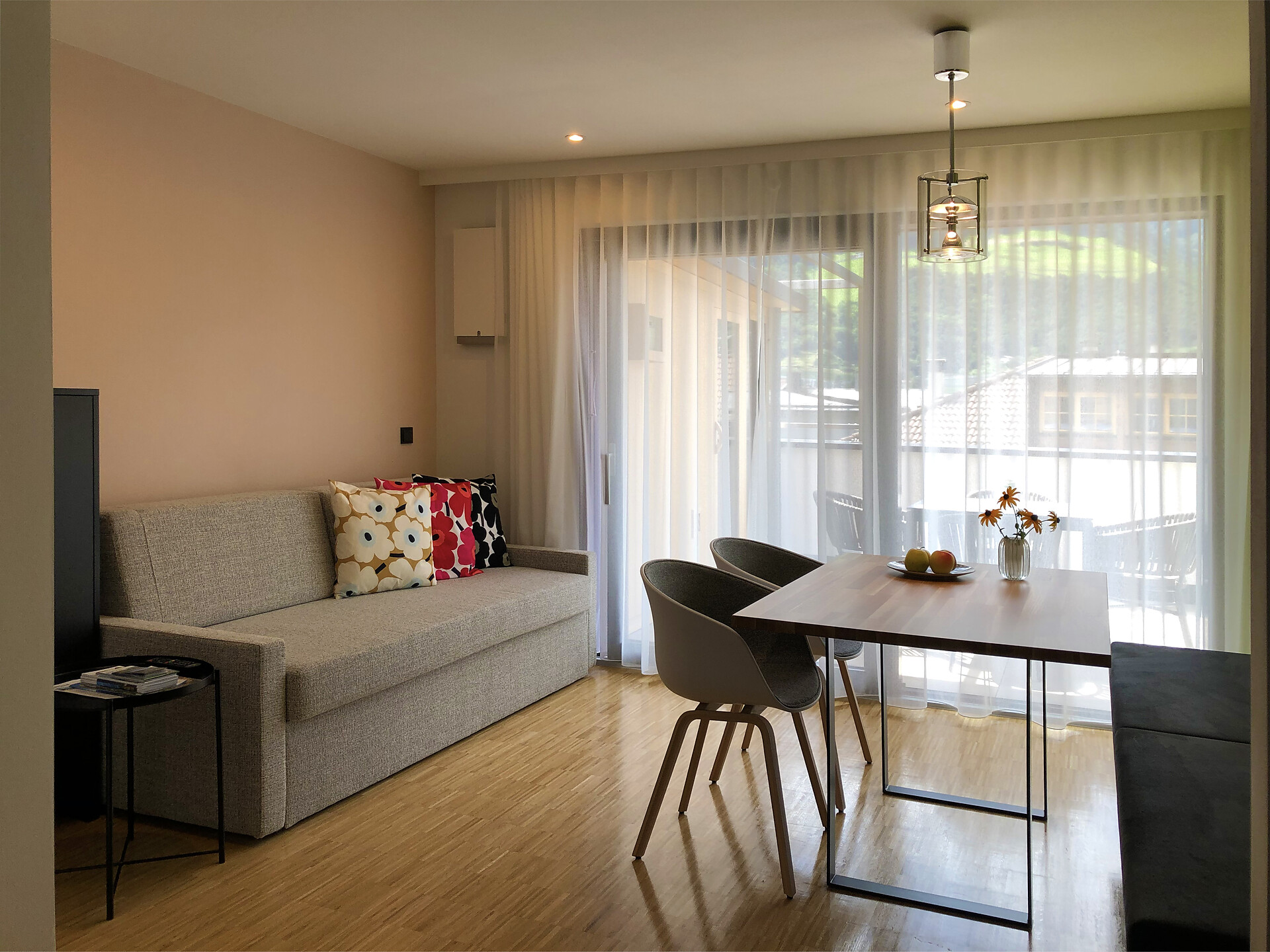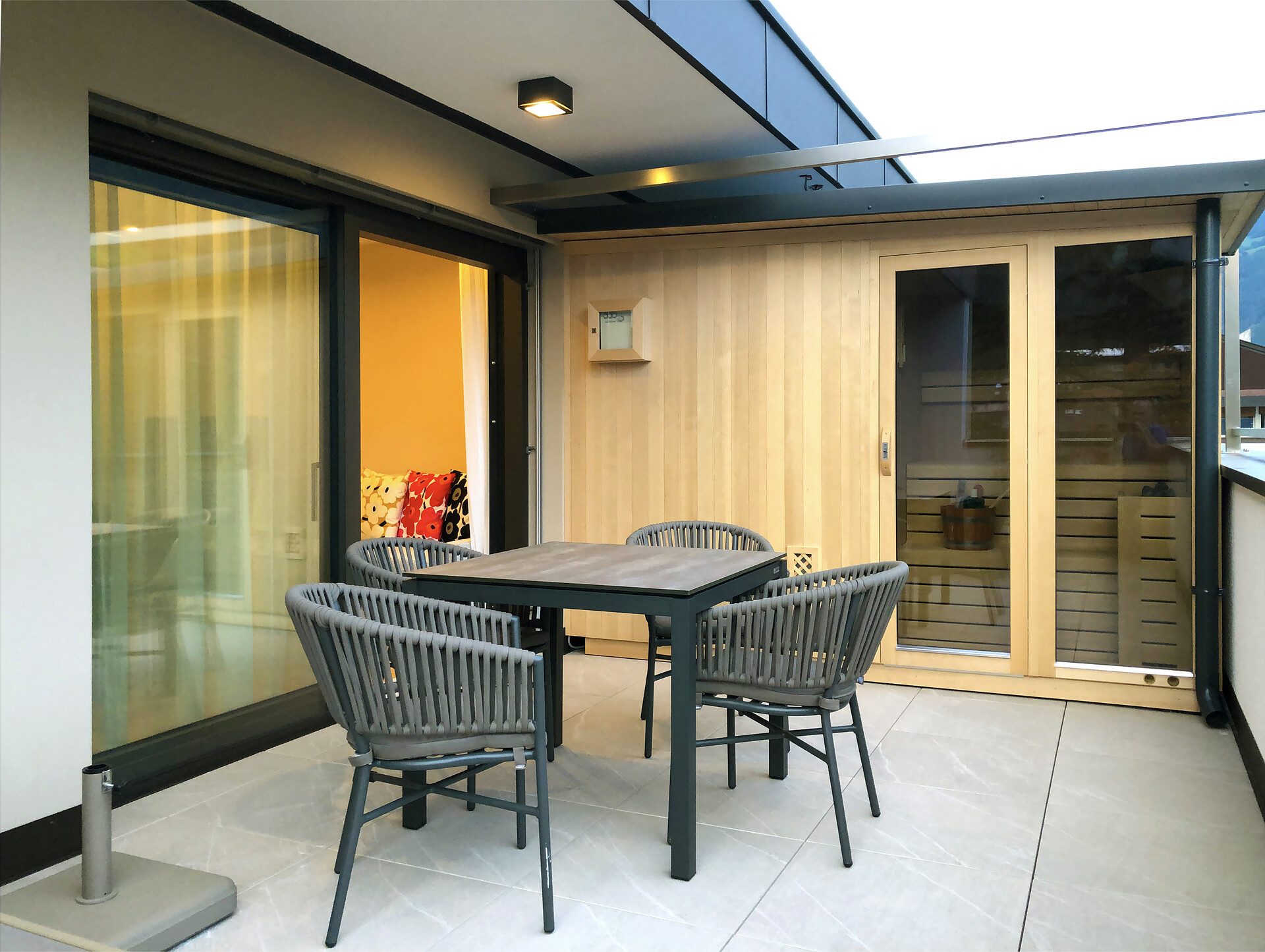 Das Appartement LUIS 3 Penthouse, liegt im Dachgeschoss und ist gegen Süden ausgerichtet, es verfügt über 42 m2 Wohnfläche. Das Schlafzimmer und der separate Wohnraum mit Holzboden öffnen sich über große Verglasungen, zu der 24 m2 großen Dachterrasse mit Panoramablick und eigener finnischer Aussensauna. Die Wohnung ist modern und wohnlich eingerichtet. Es steht Ihnen eine vollausgestattete Küche zur Verfügung.