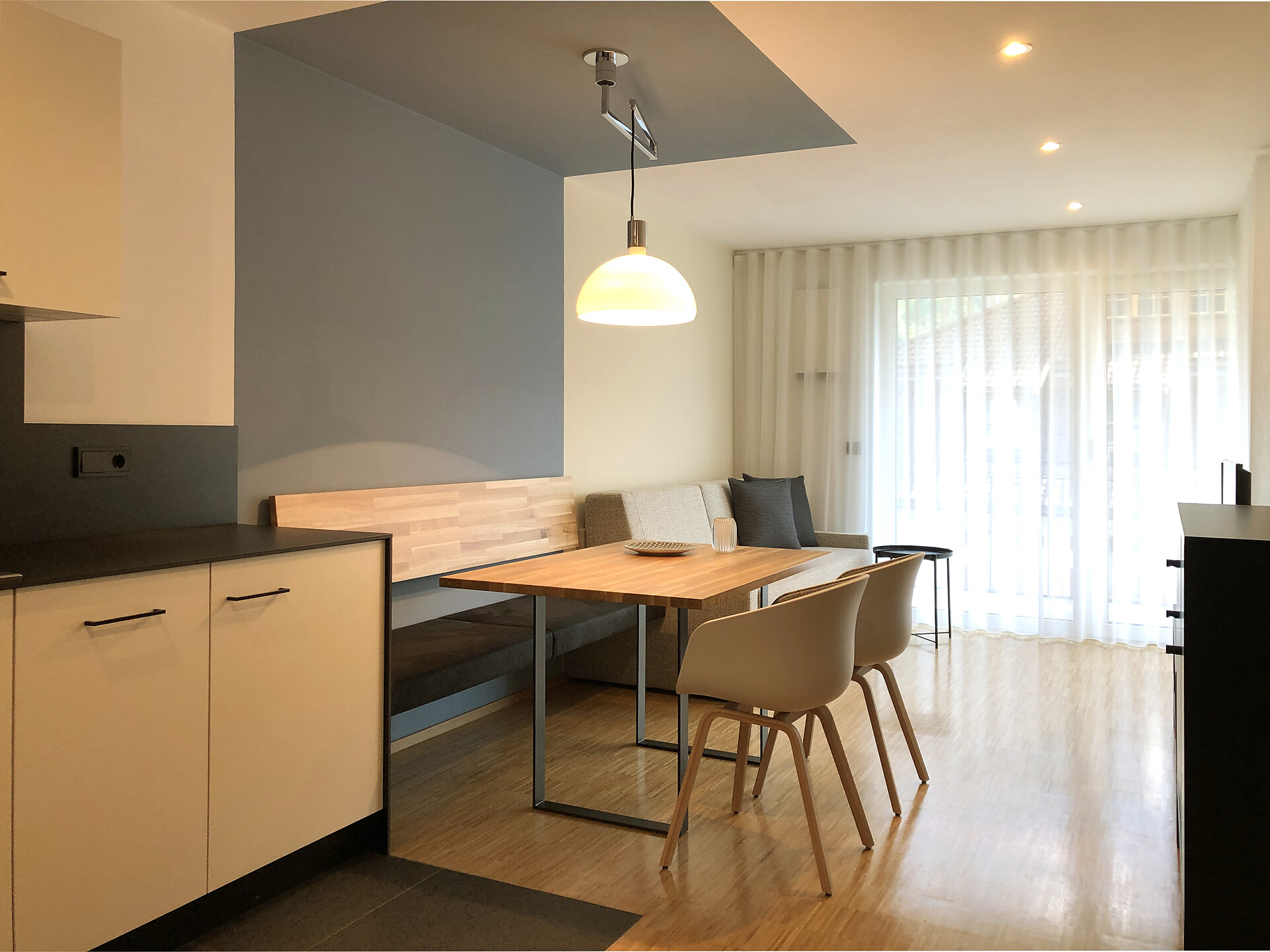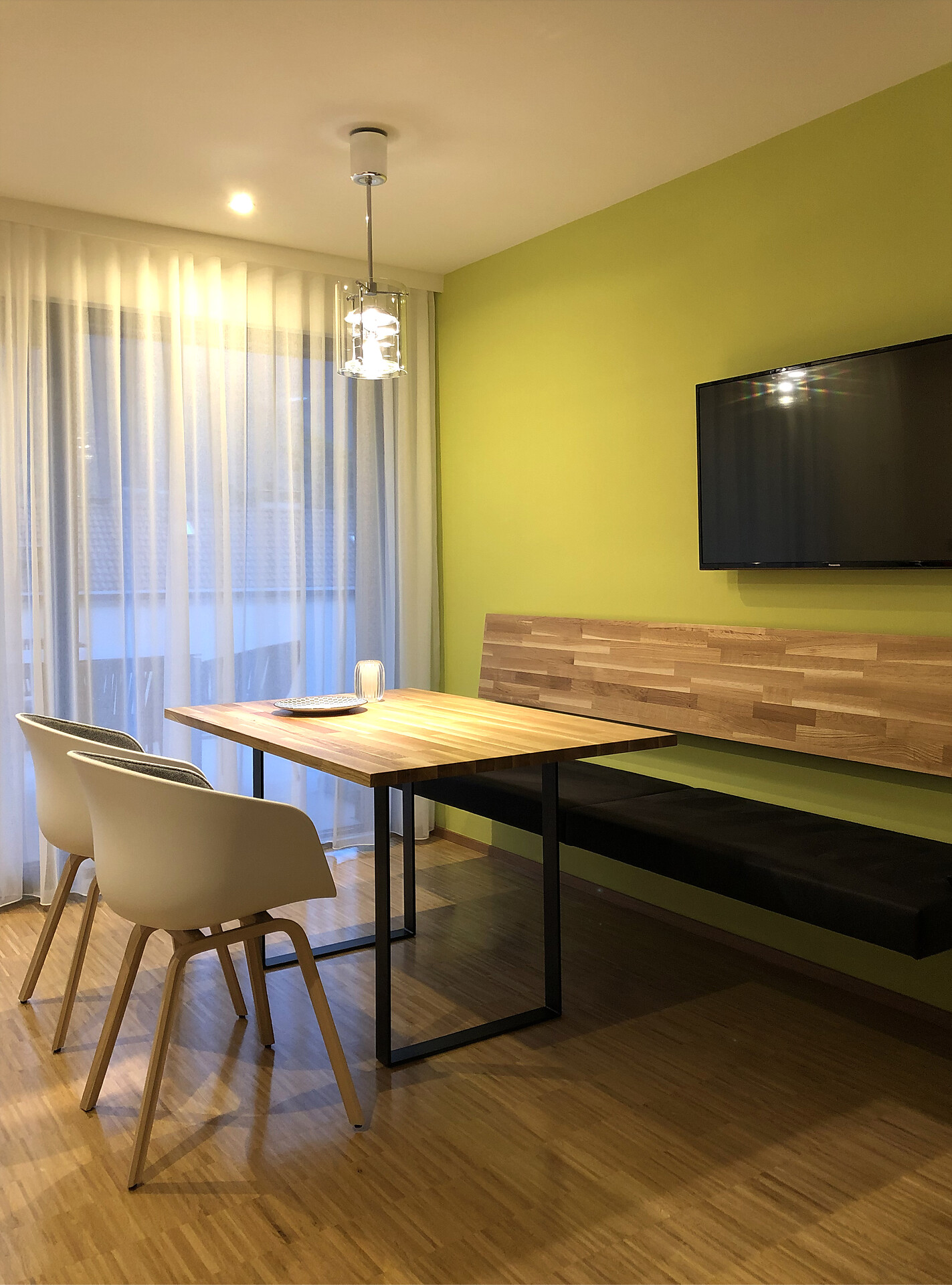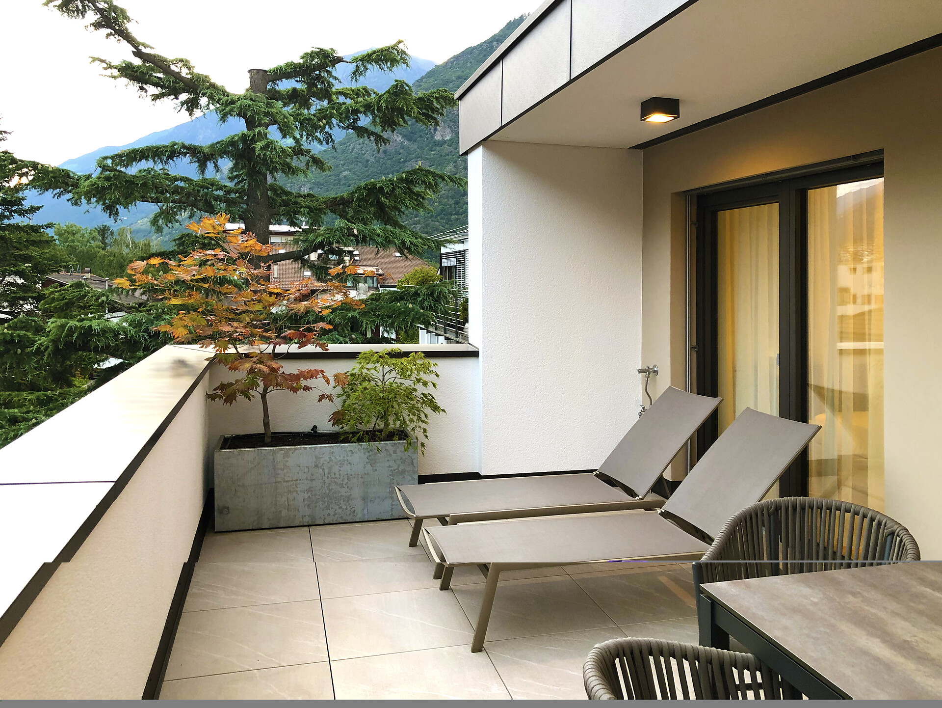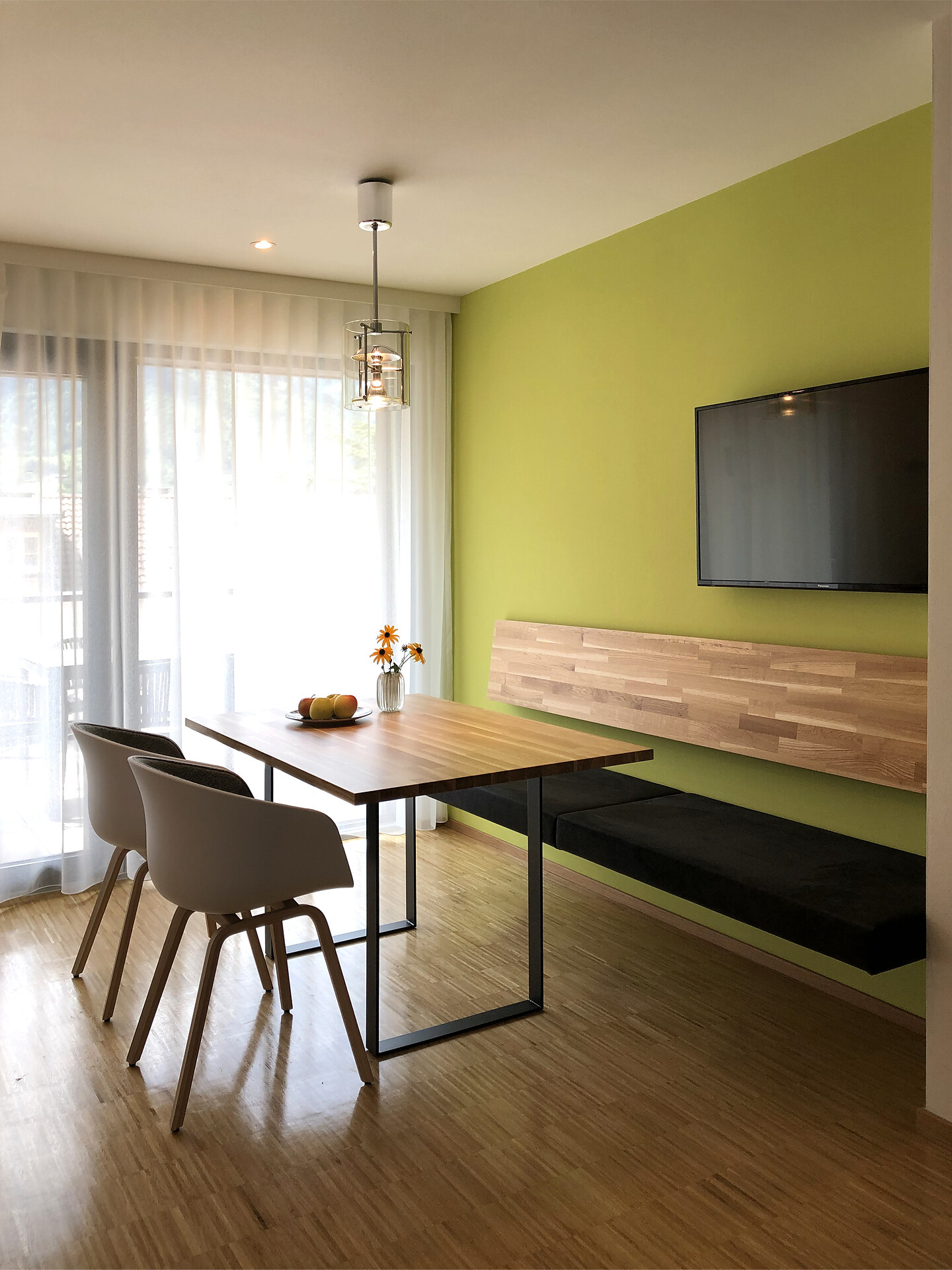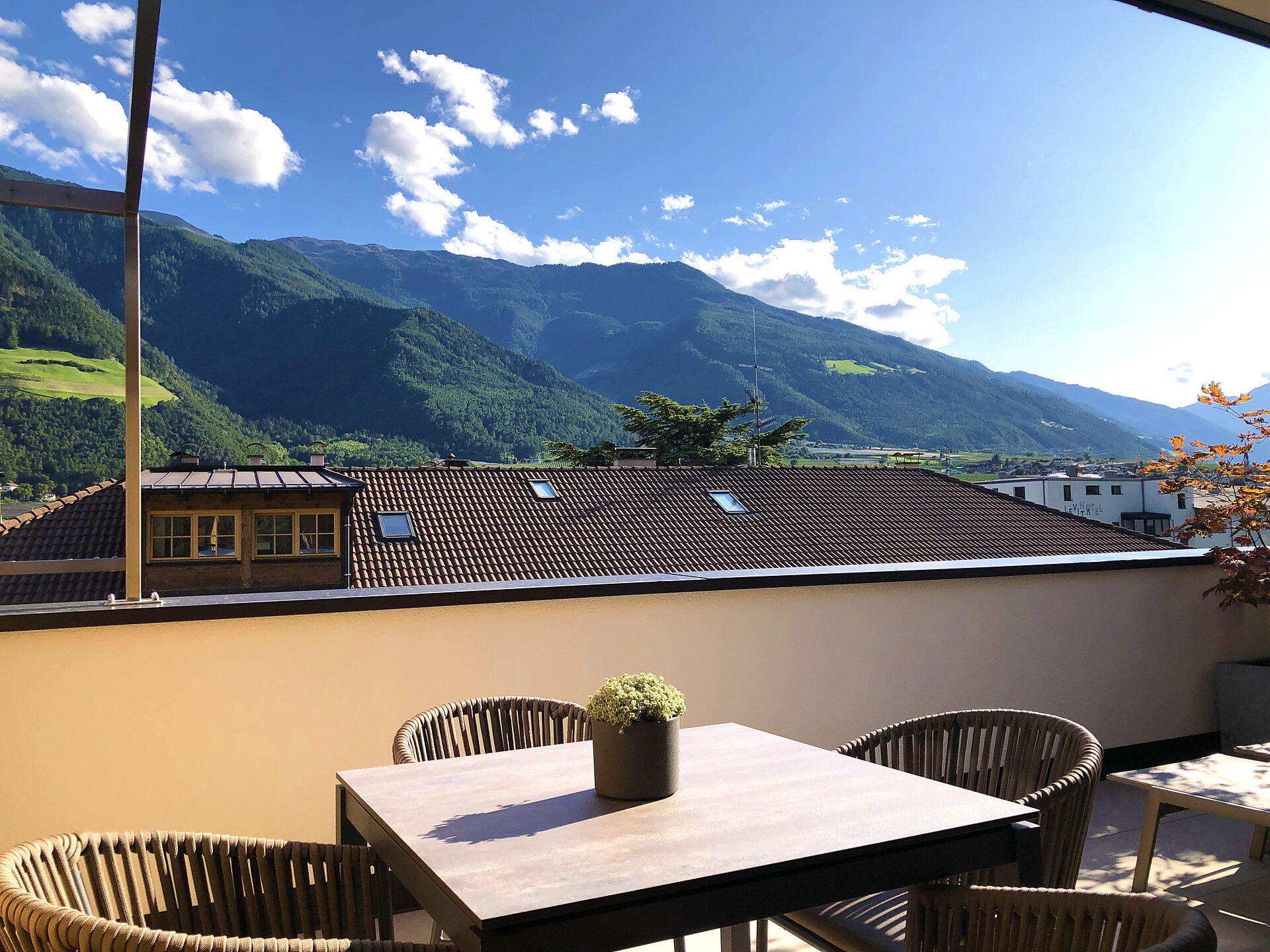 Das Appartement LUIS 3 Penthouse, liegt im Dachgeschoss und ist gegen Süden ausgerichtet, es verfügt über 42 m2 Wohnfläche. Das Schlafzimmer und der separate Wohnraum mit Holzboden öffnen sich über große Verglasungen, zu der 24 m2 großen Dachterrasse mit Panoramablick und eigener finnischer Aussensauna. Die Wohnung ist modern und wohnlich eingerichtet. Es steht Ihnen eine vollausgestattete Küche zur Verfügung.