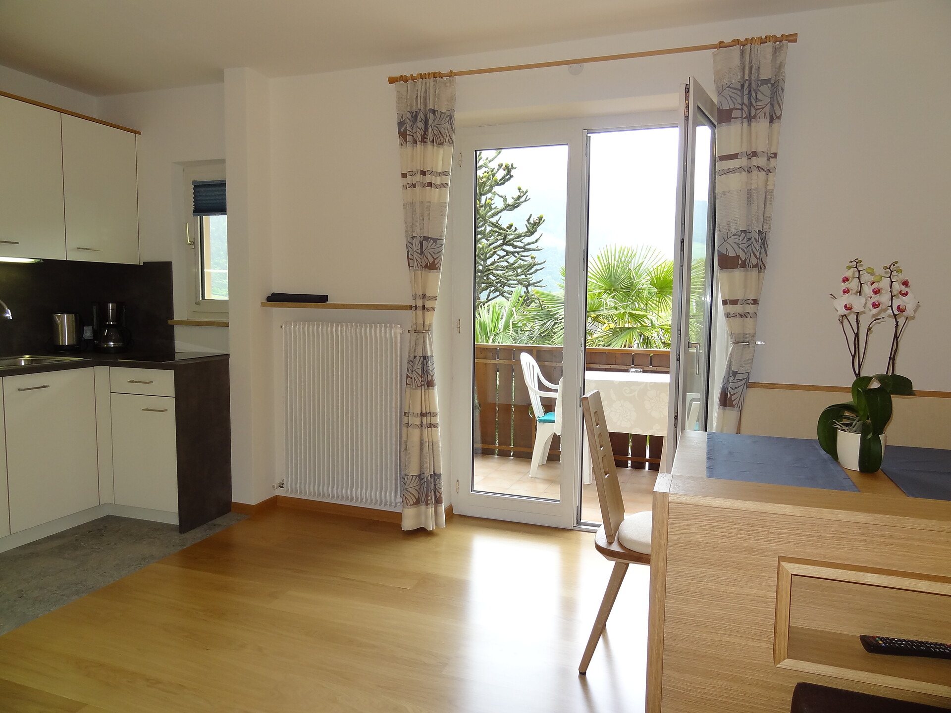 Doppelbett, Babybett, Bettsofa, Balkon, Garten, Separater Wohnraum, Bettwäsche vorhanden, Safe, Wohnküche, Kaffeemaschine, Geschirrspülmaschine, Elektroherd, Geschirrausstattung, Wasserkocher, Dusche/Bad, TV, Satellit/Kabel, WLAN, Endreinigung inbegriffen, Haupthaus, Panoramablick, Südseite