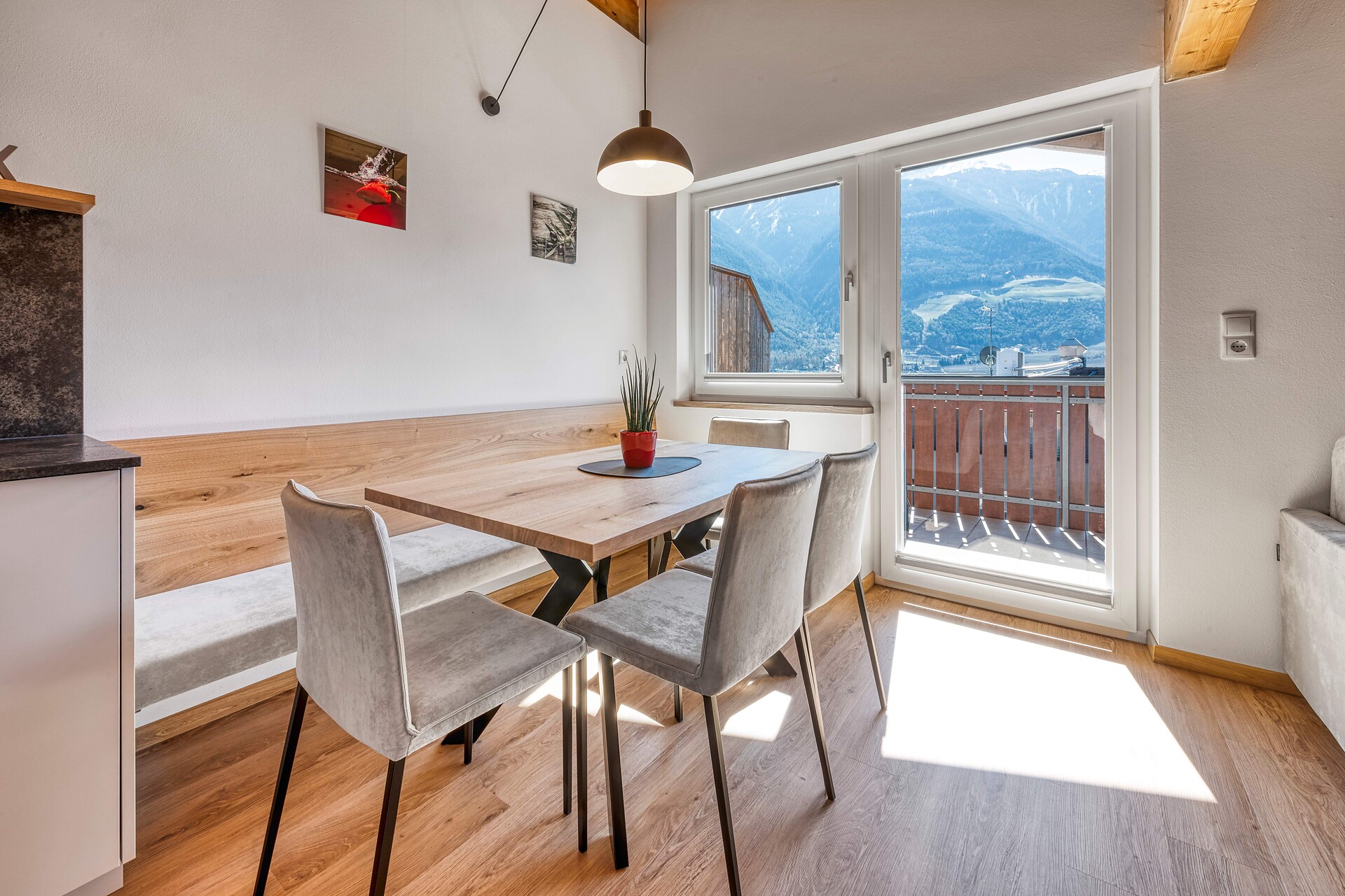 Aufstehen und gleich schon der Sonne entgegenblinzeln. Danach ausgiebig frühstücken und ab in den Garten, an den Pool oder zum Wandern in die Berge. Die Möglichkeiten hier bei uns sind vielseitig.