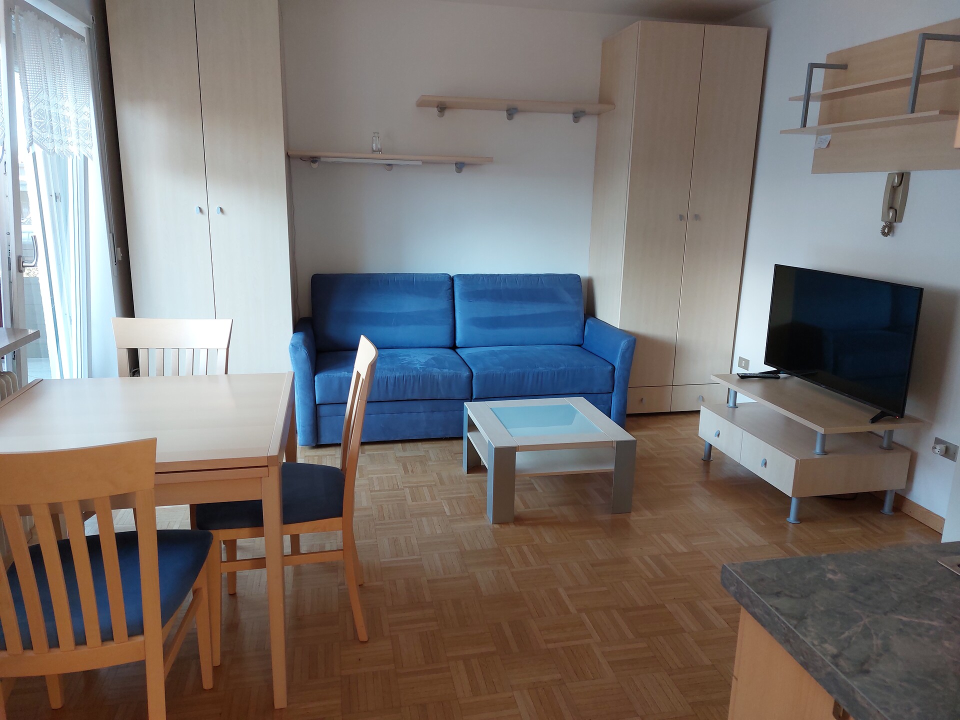 Doppelbett, Zustellbett, Bettsofa, Doppelschlafcouch, Balkon, Kaffeemaschine, Elektroherd, Geschirrausstattung, Dusche/Bad, TV, Satellit/Kabel, Haupthaus, Südseite