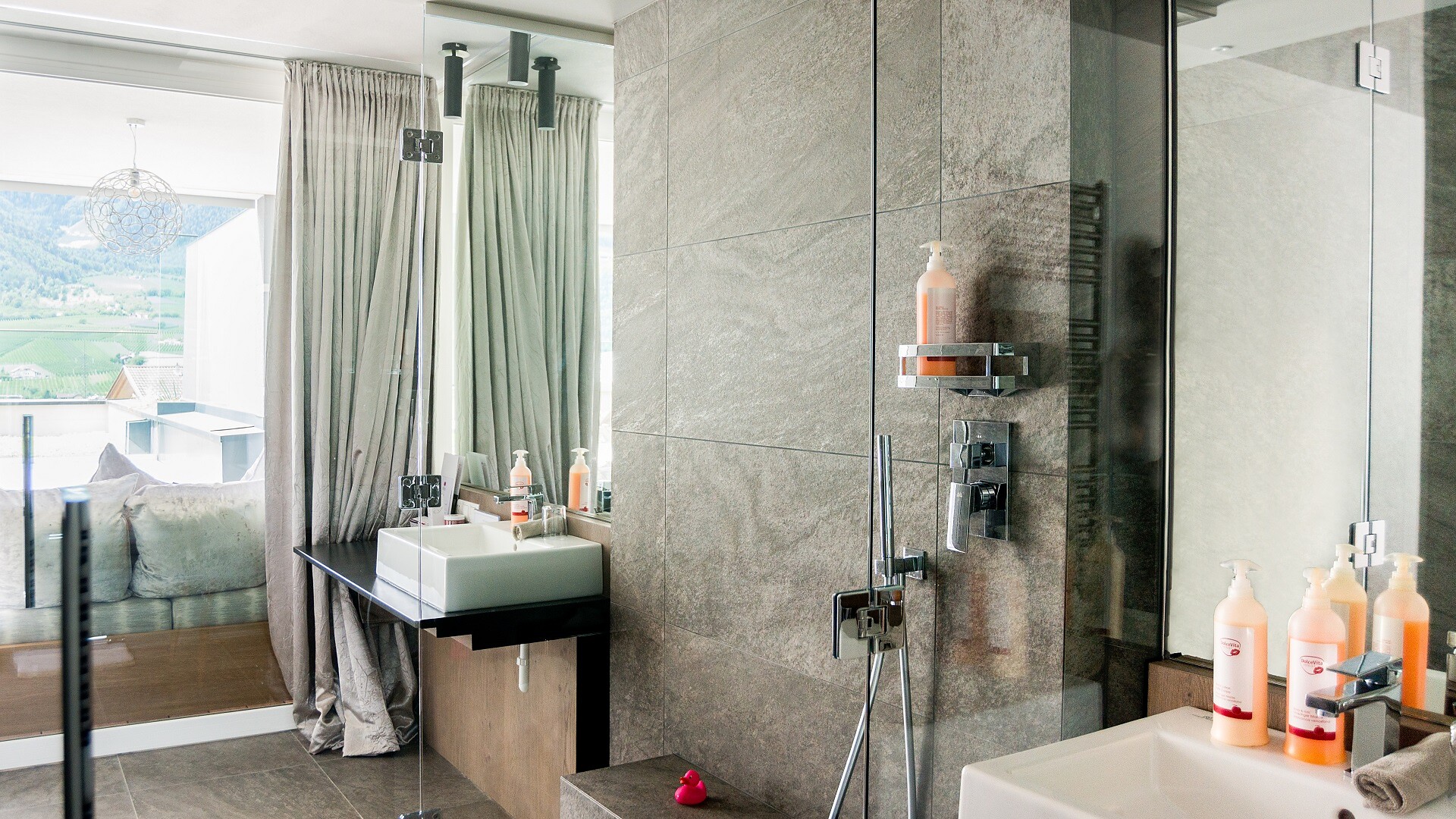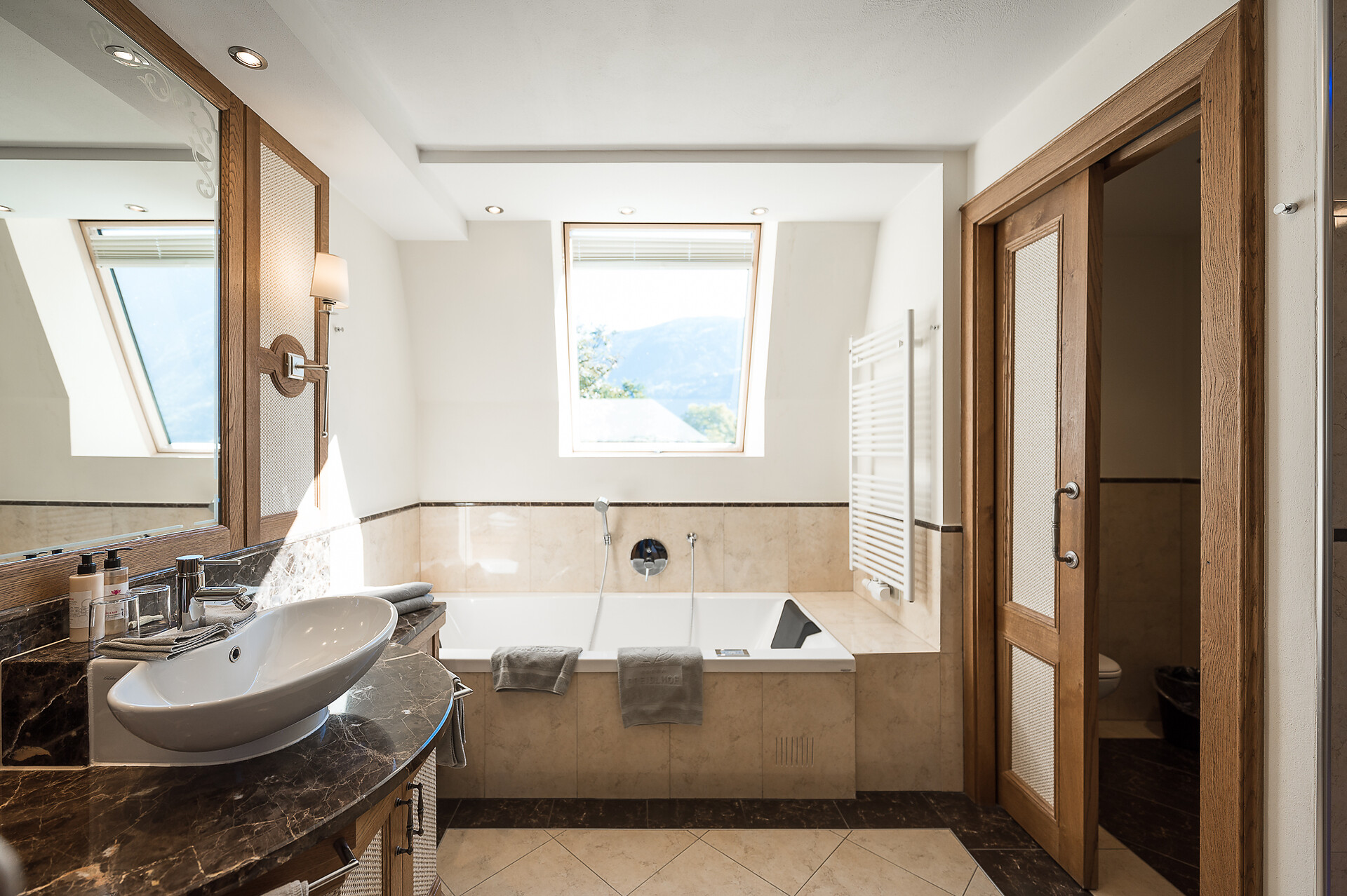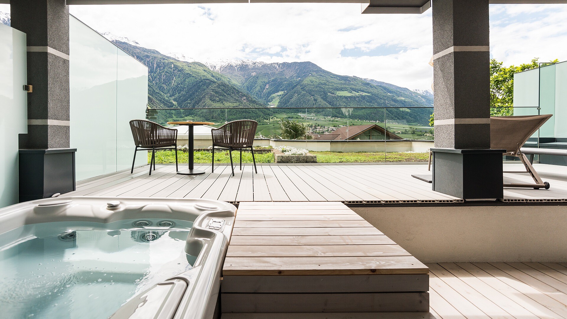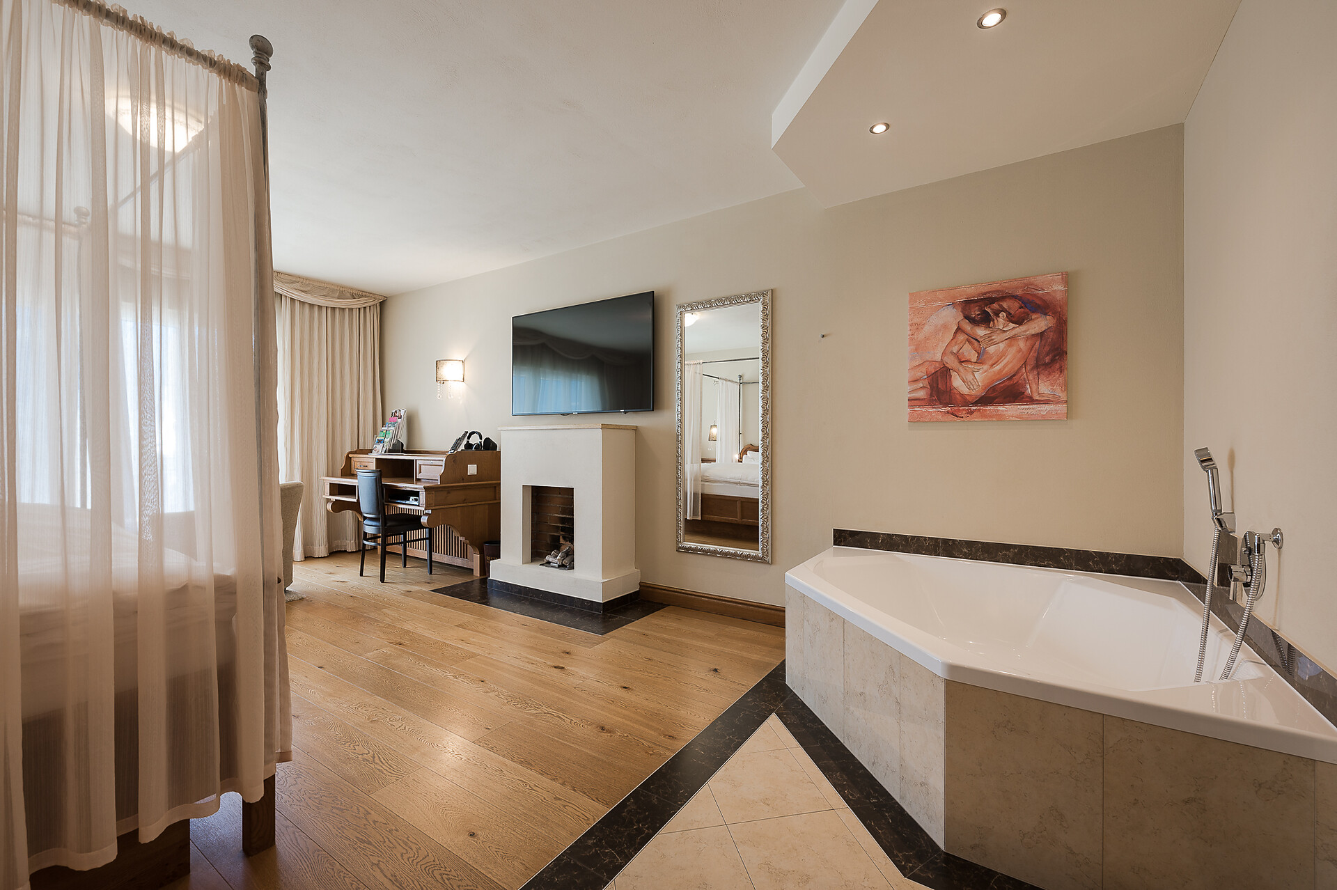 Suite, Doppelbett, Terrasse, Klimaanlage, Wohnecke, Minibar, Safe, Kaffee-/Tee-Maschine, Dusche / Bad, Separates WC, Bidet, Haarfön, Bademantel, HiFi, TV, Satellit/Kabel, WLAN, Internetanschluss, Haupthaus, Panoramablick, Südseite
