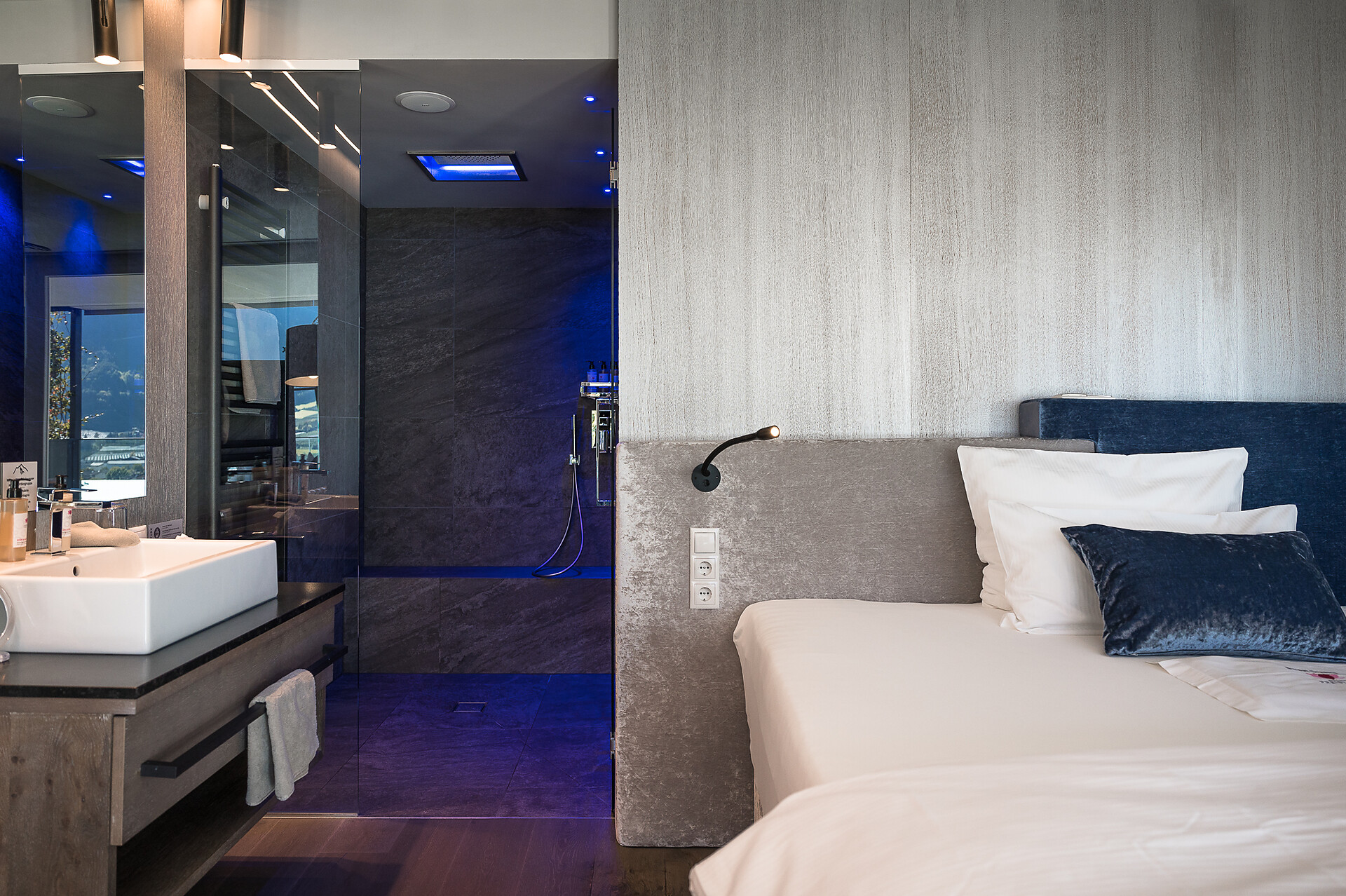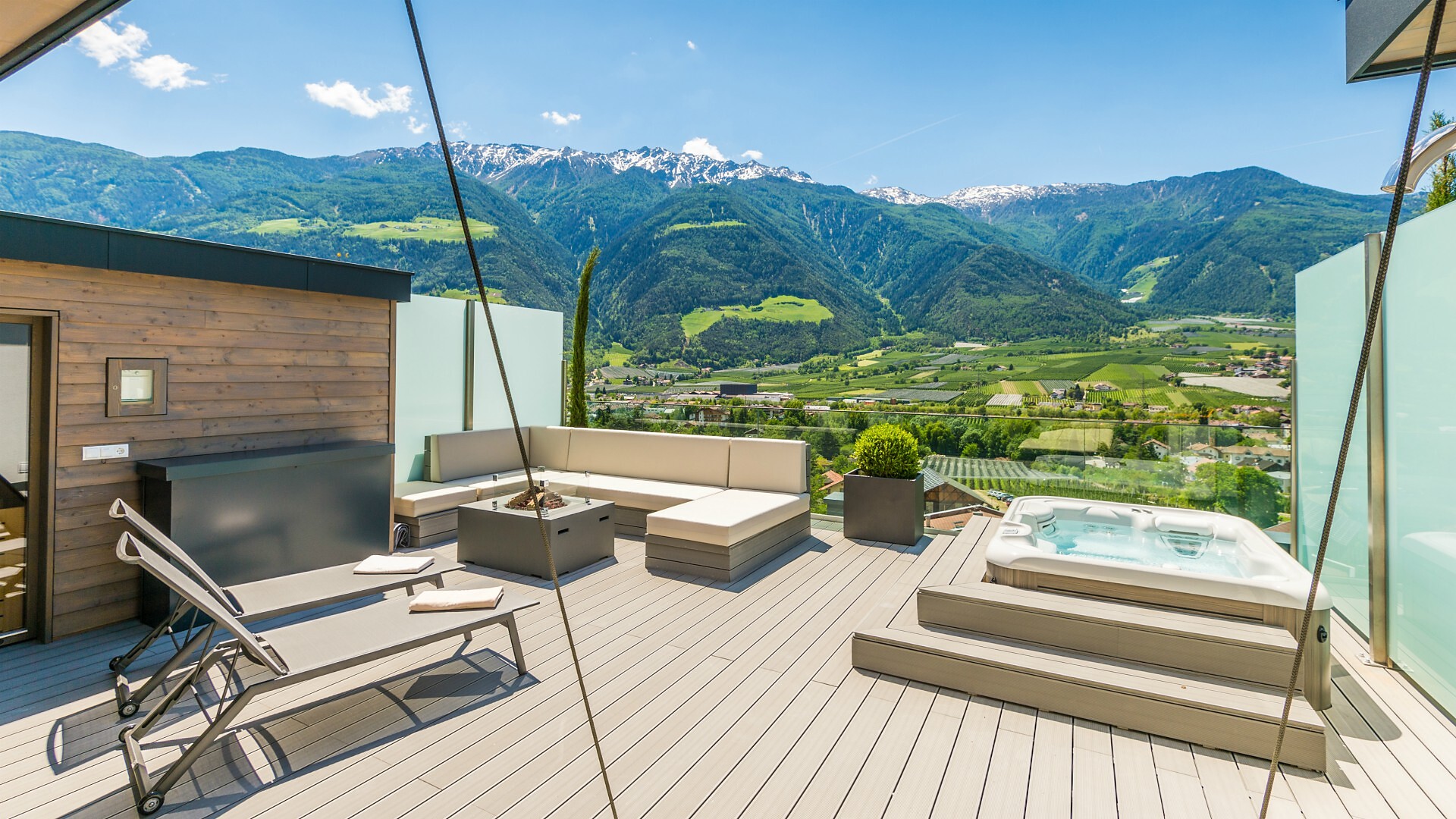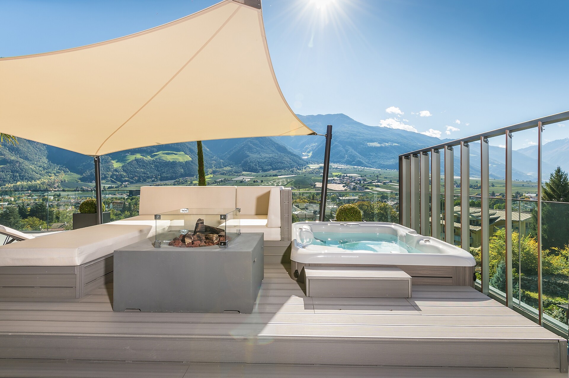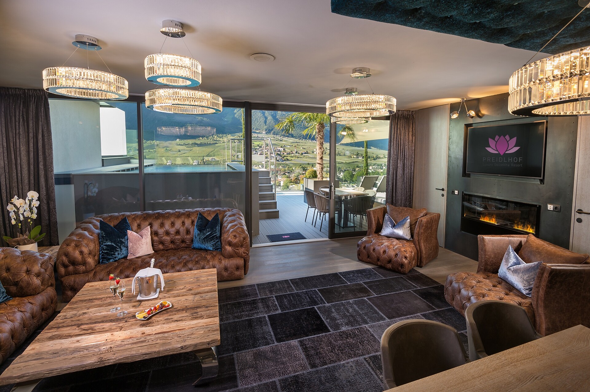 101m² inklusive 56m² Outdoor-Penthouse -Terrasse mit Panoramablick, Whirlpool, privater Butler Service, offene Wohn-Schlaflounge mit Romantic Fire, Luxus-Boxspringbett (Kingsize) mit Sleep-Fit-Health-System 200x210cm, Komfort-Profi-Schranksystem, 2 Relax-Design-Chairs, 55" Smart-TV mit Google Chromecast, Koffer-Designbar mit Wein-, Nespresso- & Teedesk, Badelounge mit Design-Spiegel aus Halbedelstein mit Lady-Beauty-Desk, Erlebnisdusche für 2, Outdoor-Penthouse-Terrasse mit privater Atmosphäre, Whirlpool de luxe mit Hygienic-Luxury-System, Finnische Außensauna mit Erlebnisdusche für 2 & Schaukelliege für 2, Feuerstelle "Sky Star"mit Kuschel-Lounge, Outdoor Cinema, bequeme Sitz- und Essmöbel, Duftkräuter, Wärmestrahler und Laterne, keine Tiere. In der DolceVita Lodge.