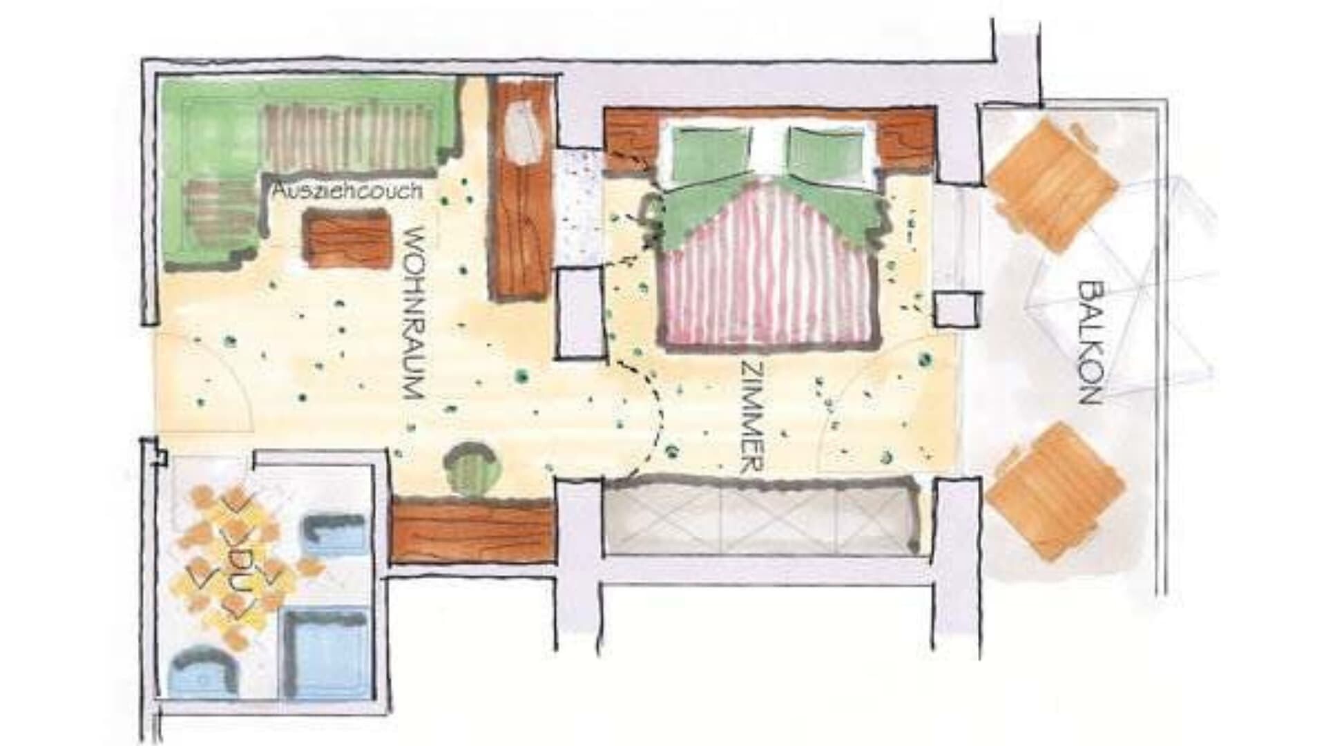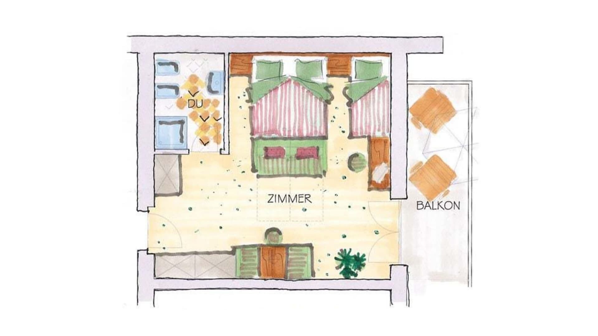 30-35 m² großes Familienzimmer mit sonnigem Westbalkon.