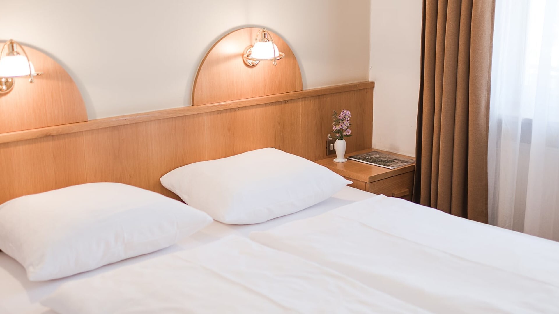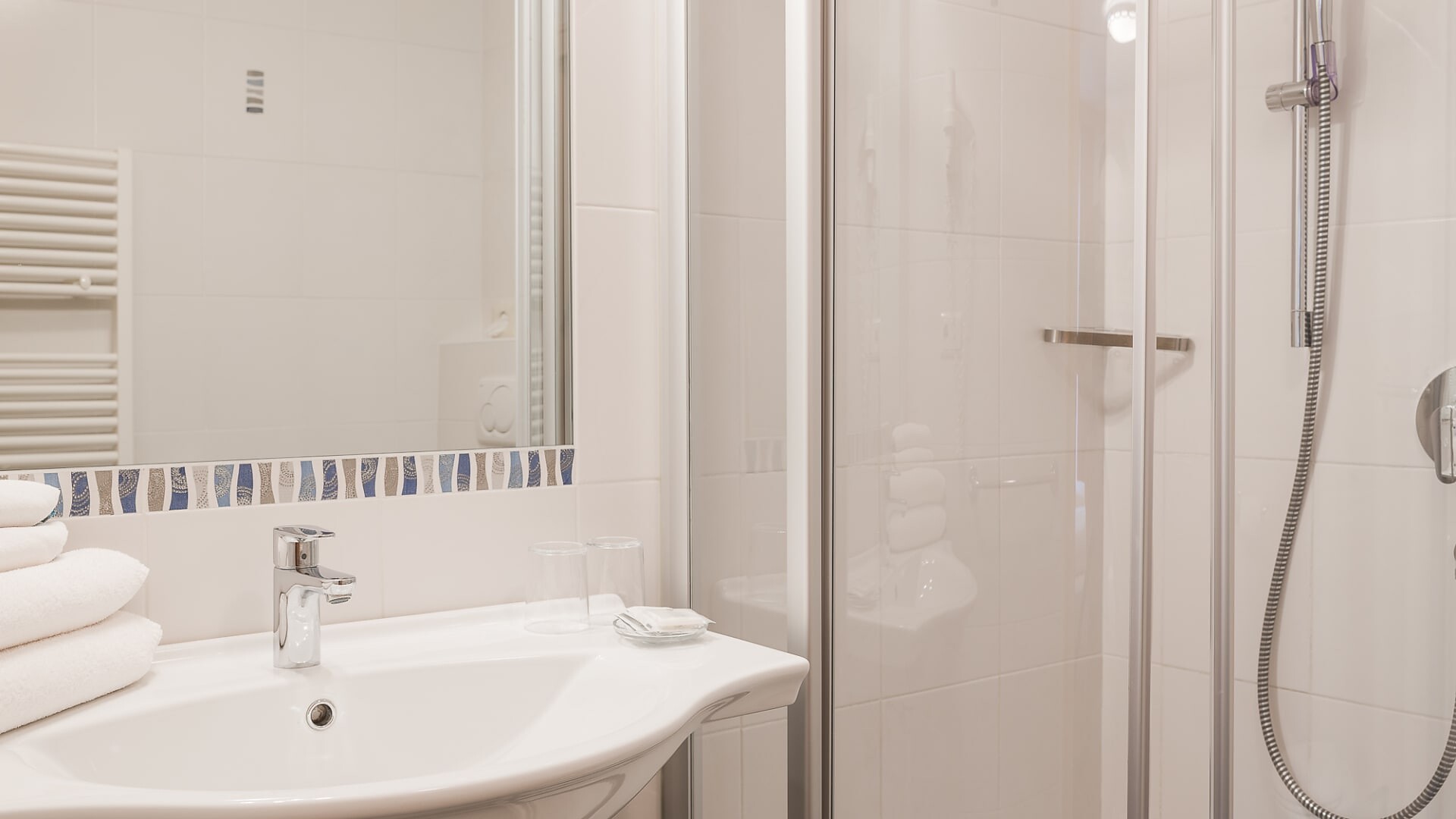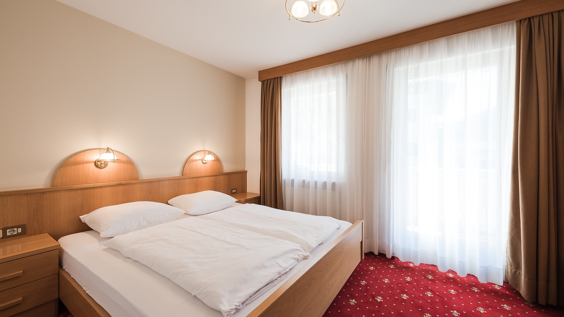 Zweibettzimmer, Doppelzimmer, Einzelbett, Doppelbett, Zustellbett, Babybett, Bettsofa, Balkon, Terrasse, Safe, Dusche / Bad, Bidet, Haarfön, Bademantel, TV, Satellit/Kabel, WLAN, Haupthaus, Südseite