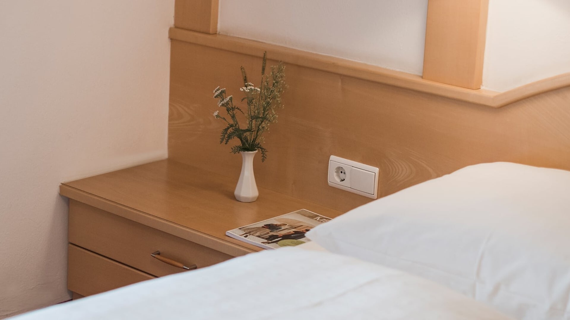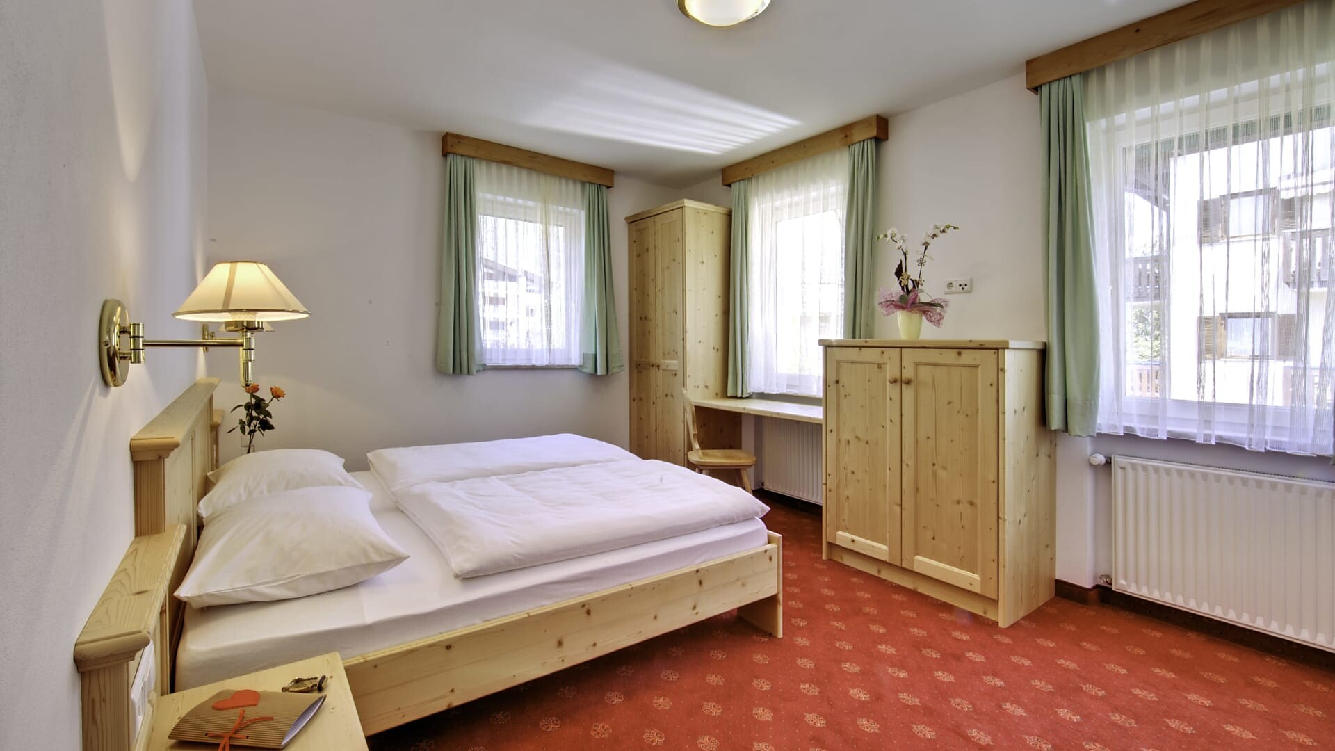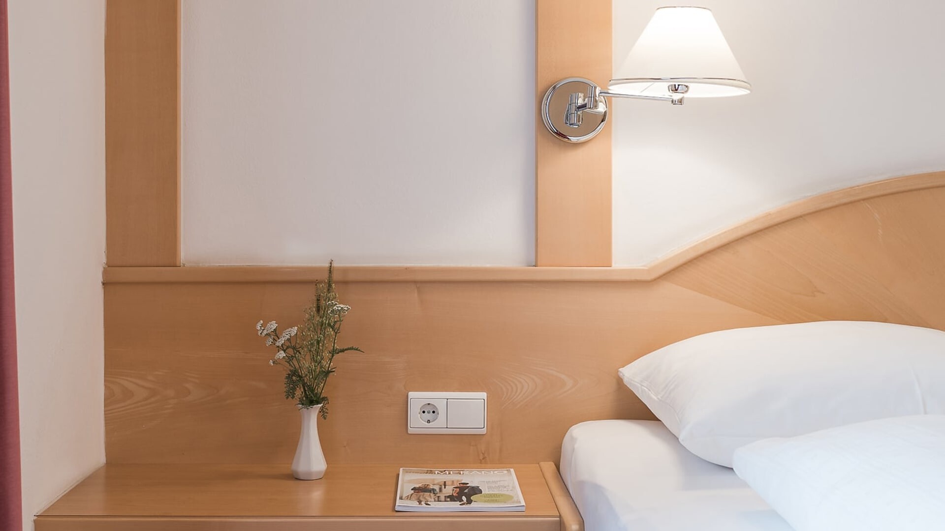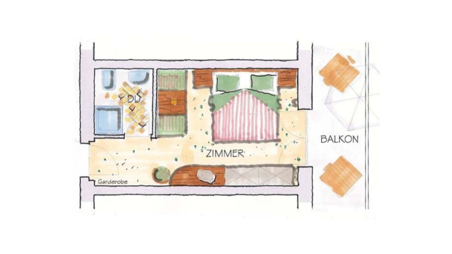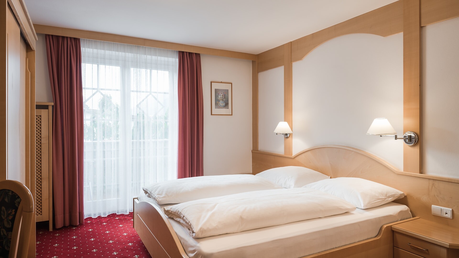 Einzelzimmer, Doppelzimmer, Doppelbett, Zustellbett, Babybett, Balkon, Terrasse, Safe, Dusche / Bad, Bidet, Haarfön, Bademantel, TV, Satellit/Kabel, WLAN, Haupthaus, Südseite