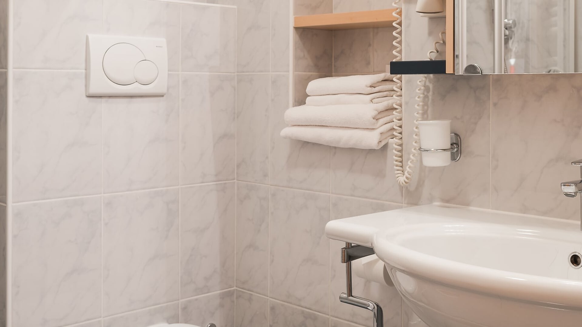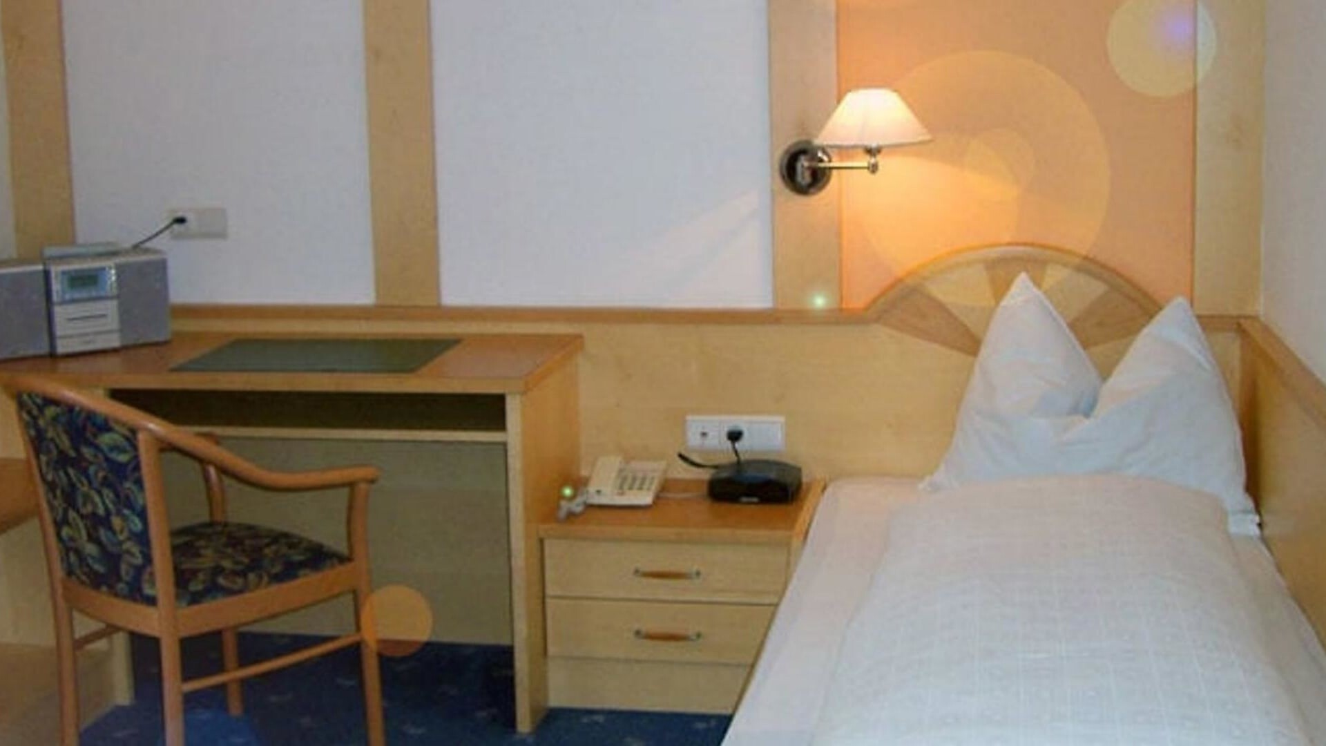 Gemütliches Einzelzimmer mit Balkon.Zimmer mit Einzelbett und Schreibtisch, Teppichboden. Flat-TV, Telefon, kostenloses W-LAN und Safe. Badezimmer neu renoviert mit Dusche/WC, Haarfön und kuscheliger Frottee-Badewäsche.