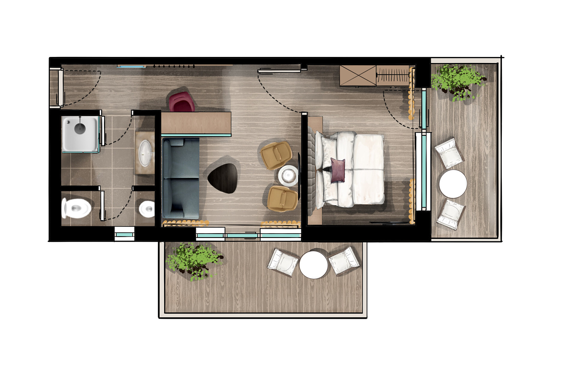 Die größte Suite im Hotel trägt nicht zufällig unseren Namen. Sie vereint all das, was uns wichtig ist: inspirierende Naturelemente, modernes Wohnflair und Design, Top-Südaussicht auf wunderschöne Landschaftsflecken – über die Dächer von Rabland bis hin zum Meraner Land und ins Vinschgautal – und … ganz viel Platz – zum Wohnen, zum Träumen, zum Loslassen.
