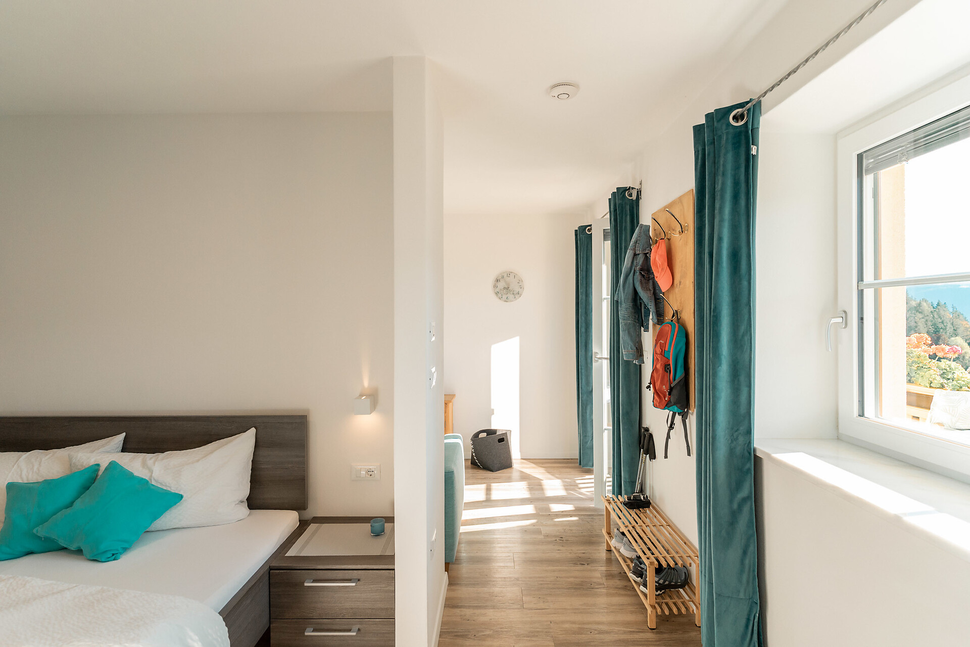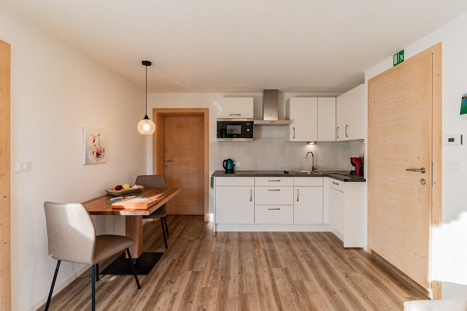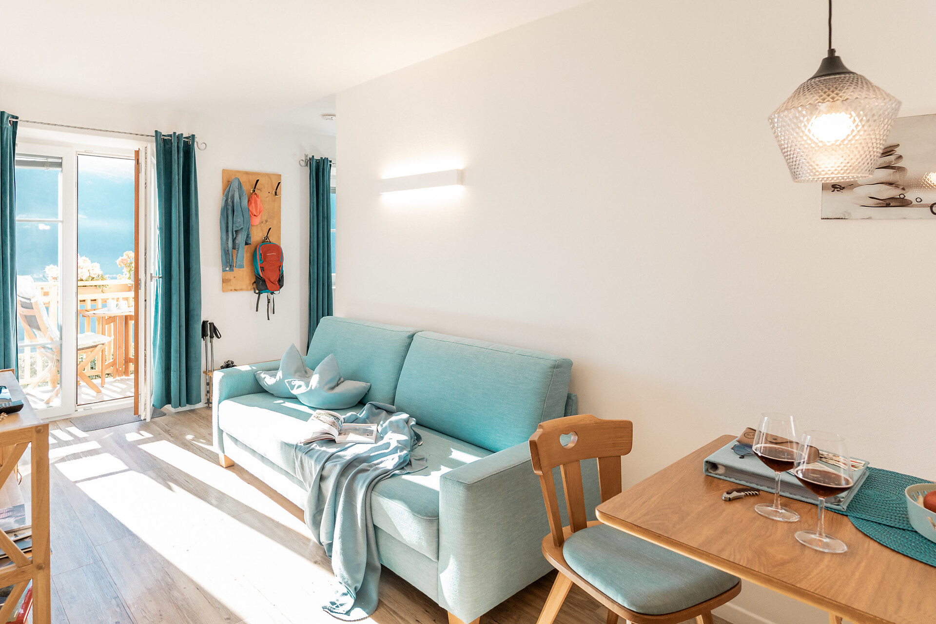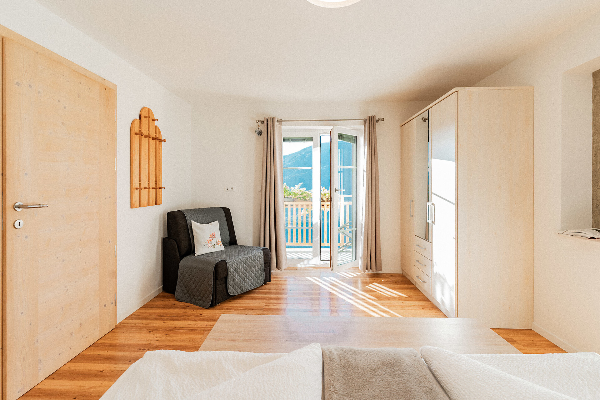 Die Liebe steckt im kleinsten Detail. 1. Obergeschoss – ideal für 2 Personen. Klein, aber oho ist unser Apartment s’Nestl mit seinen 40 m². Und es macht seinem Namen alle Ehre. Hier wohnt ihr wie in einem Nest, wo es ganz kuschelig und gemütlich ist. Und doch fehlt es euch in dieser Ferienwohnung nichts. Sogar einen Balkon habt ihr, zum Draußensitzen und Ausblick-Genießen.
