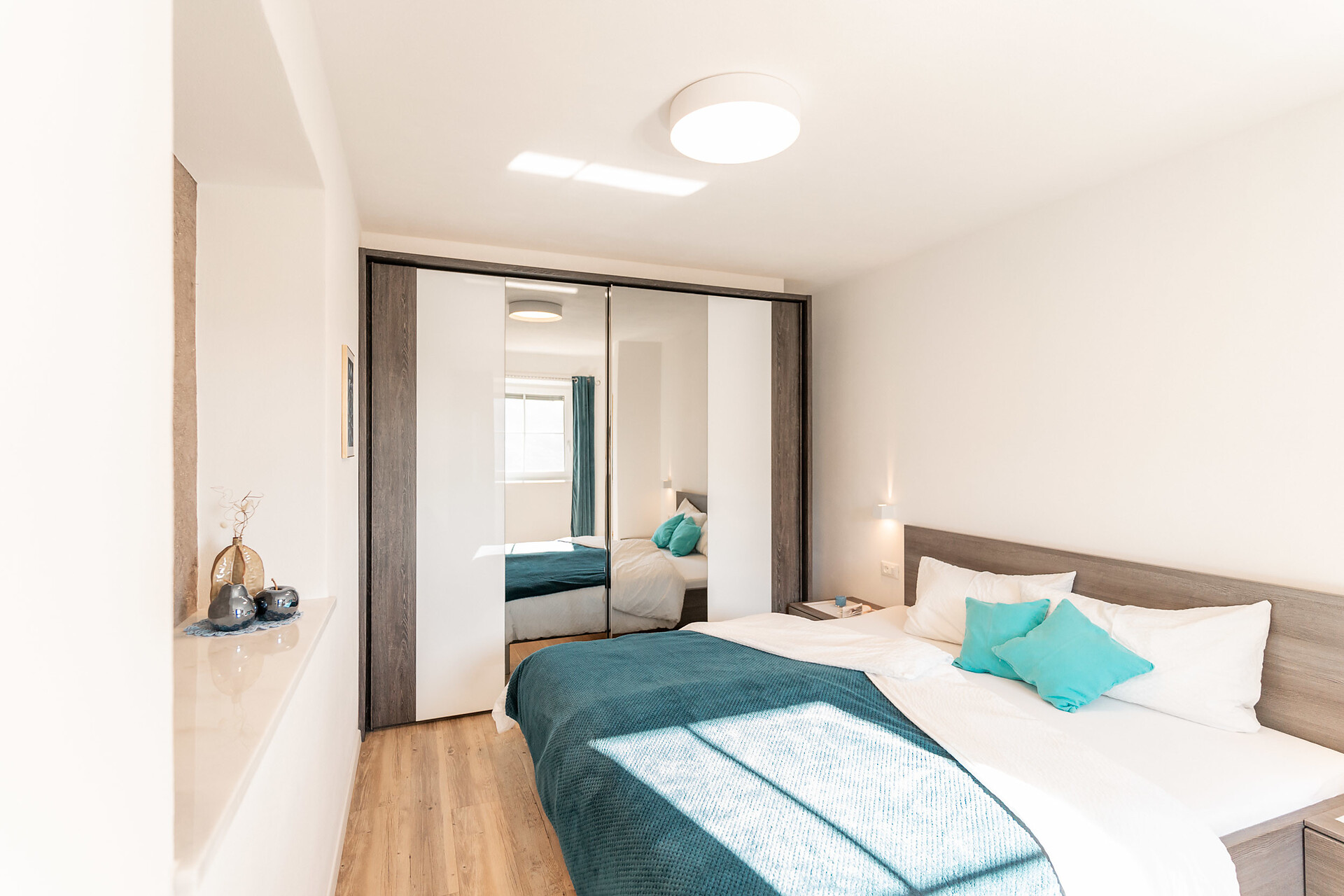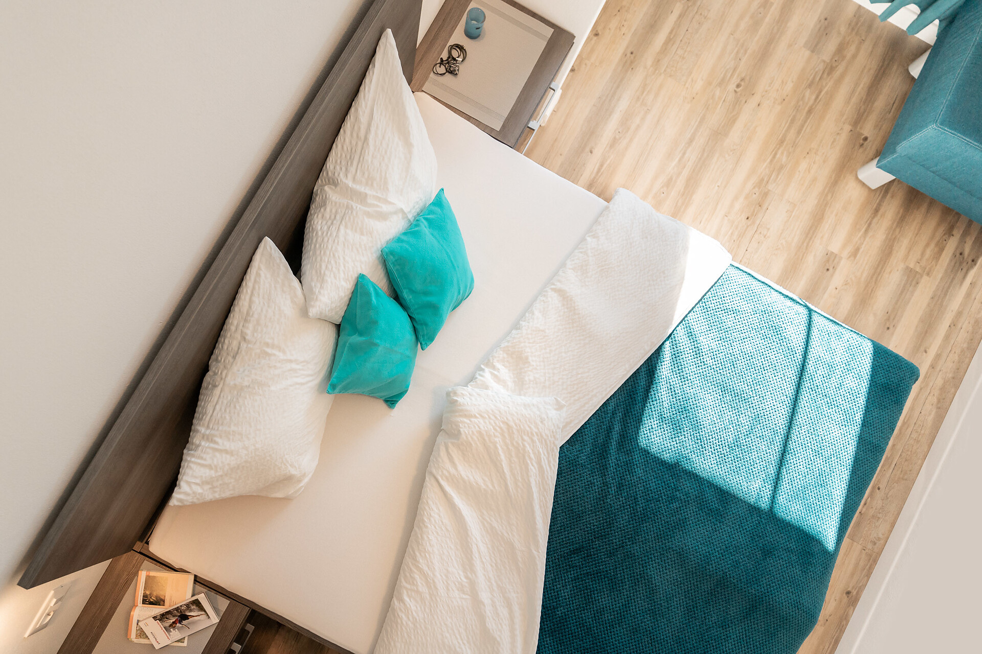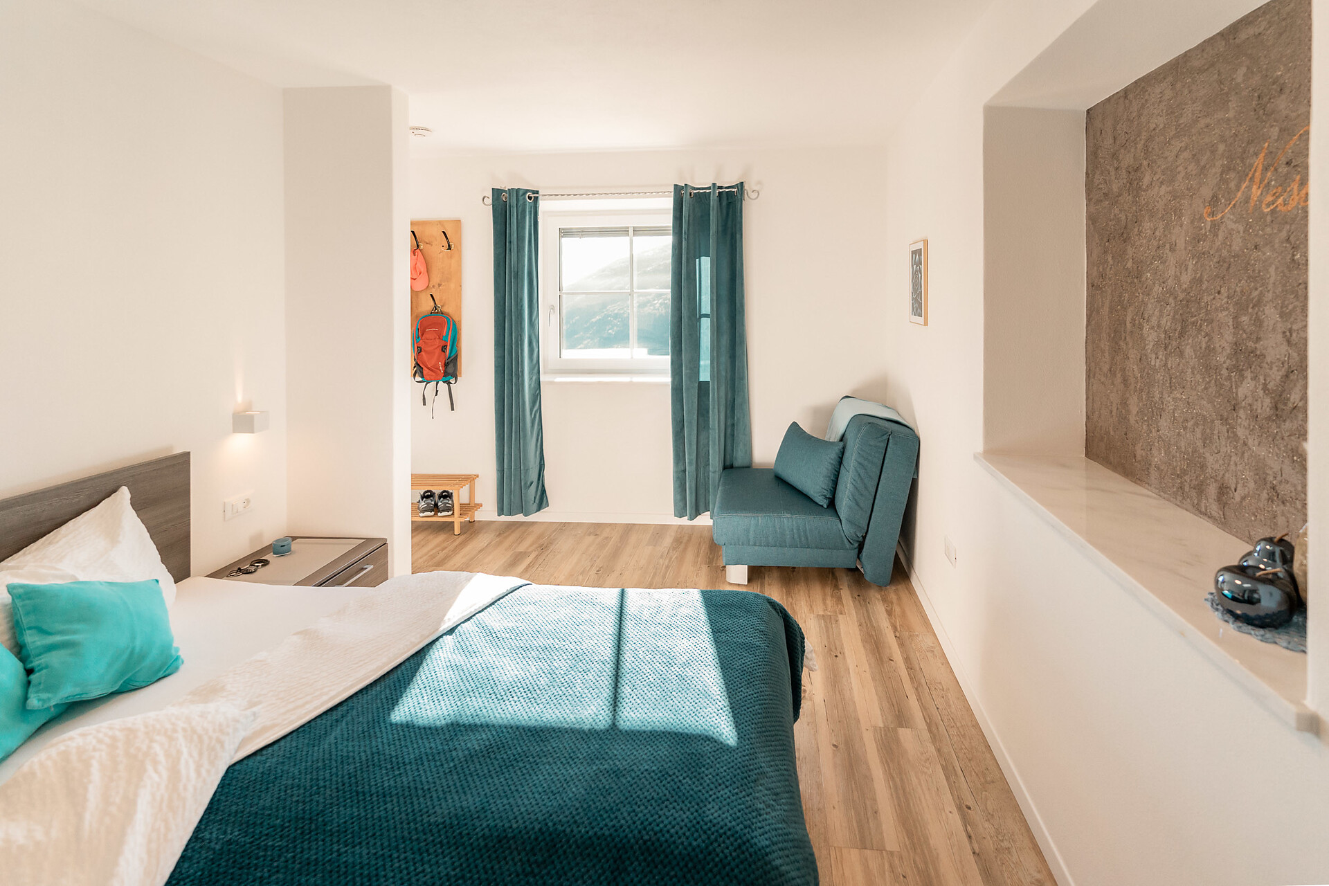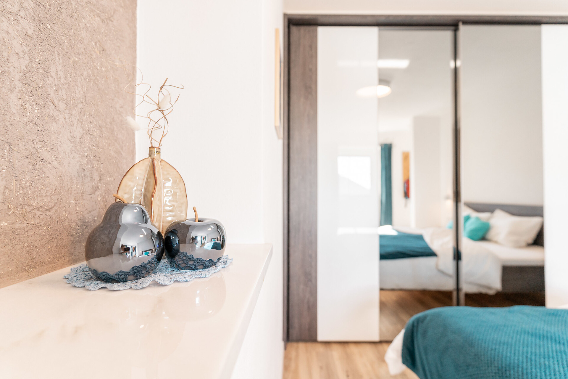 Die Liebe steckt im kleinsten Detail. 1. Obergeschoss – ideal für 2 Personen. Klein, aber oho ist unser Apartment s’Nestl mit seinen 40 m². Und es macht seinem Namen alle Ehre. Hier wohnt ihr wie in einem Nest, wo es ganz kuschelig und gemütlich ist. Und doch fehlt es euch in dieser Ferienwohnung nichts. Sogar einen Balkon habt ihr, zum Draußensitzen und Ausblick-Genießen.