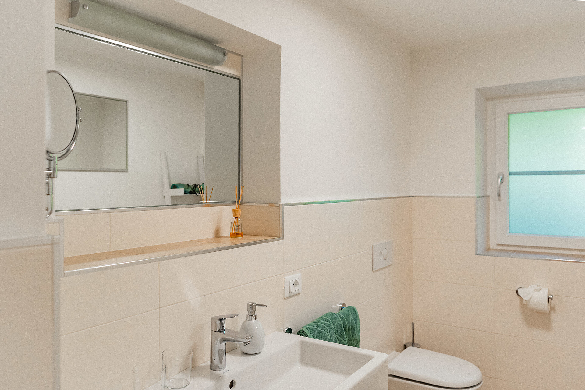 Ausstattung: Doppelbett, Babybett, Balkon, Garten, Allergikerzimmer, Separater Wohnraum, Bettwäsche vorhanden, Safe, Nichtraucher-Apartment, Separate Küche, Wohnküche, Kaffeemaschine, Geschirrspülmaschine, Elektroherd, Mikrowelle, Geschirrausstattung, Kochfeld, Wasserkocher, Dusche/Bad, Separates WC, Haarfön, Badetücher, TV, Satellit/Kabel, WLAN, Internetanschluss, Reinigung auf Anfrage, Endreinigung inbegriffen, Haupthaus, Panoramablick, Südseite