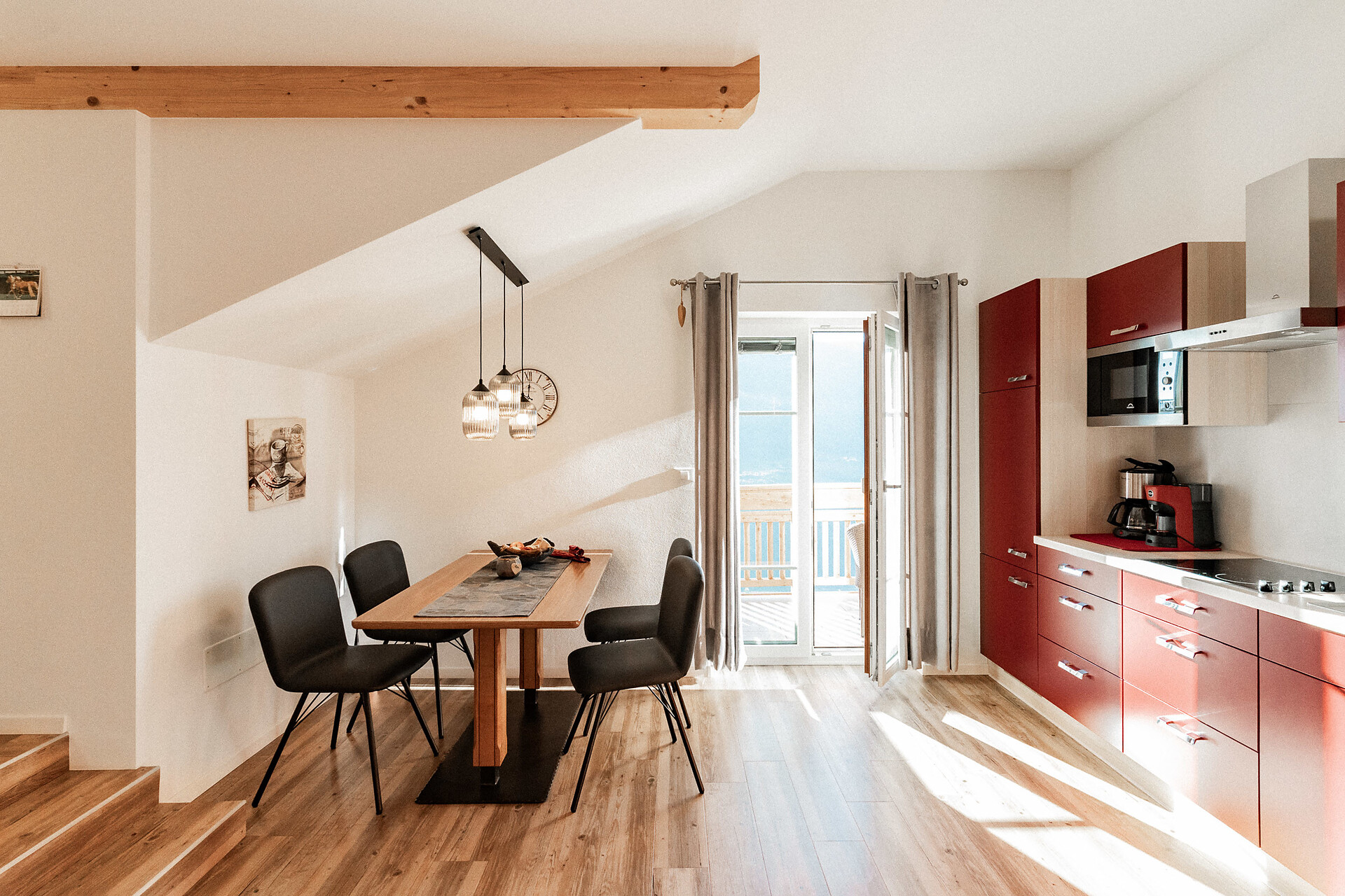 Von der Sonne wachgeküsst. Dachwohnung – ideal für 2 Personen – ab 90 € pro Nacht Unser Apartment Sonnenaufgang ist nicht nur etwas für die Frühaufsteher unter euch – obwohl die sich tatsächlich freuen werden, wenn sie vom Balkon aus der Sonne beim Aufgehen zusehen können. Gemütlich machen können es sich aber auch alle anderen hier, auf 50 m² ist alles da, was es dazu braucht. Die Wohnung verfügt auch über einen eigenen Zugang über den Hof. E-Ladestation für Elektroautos verfügbar (gegen Gebühr)