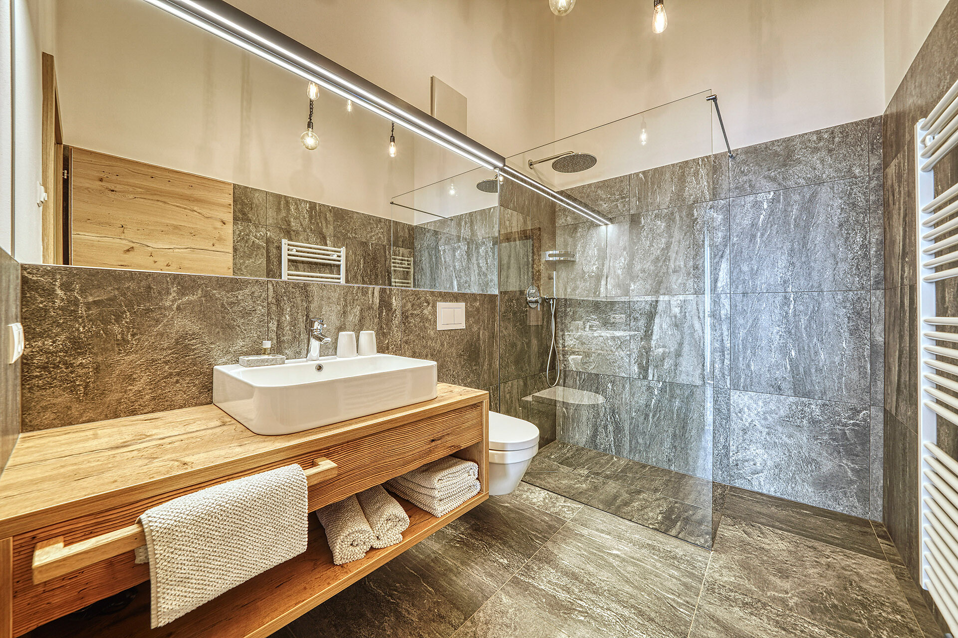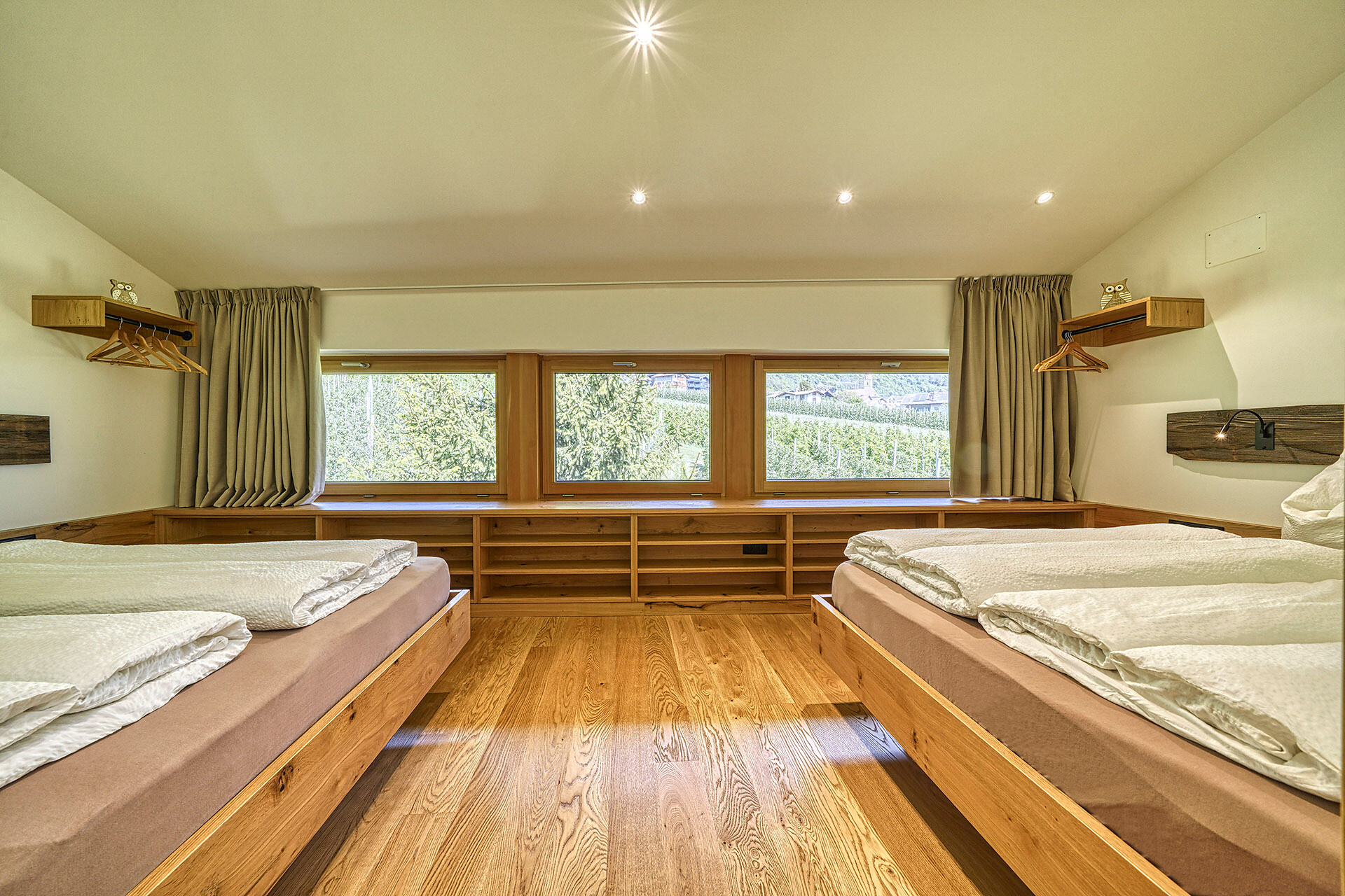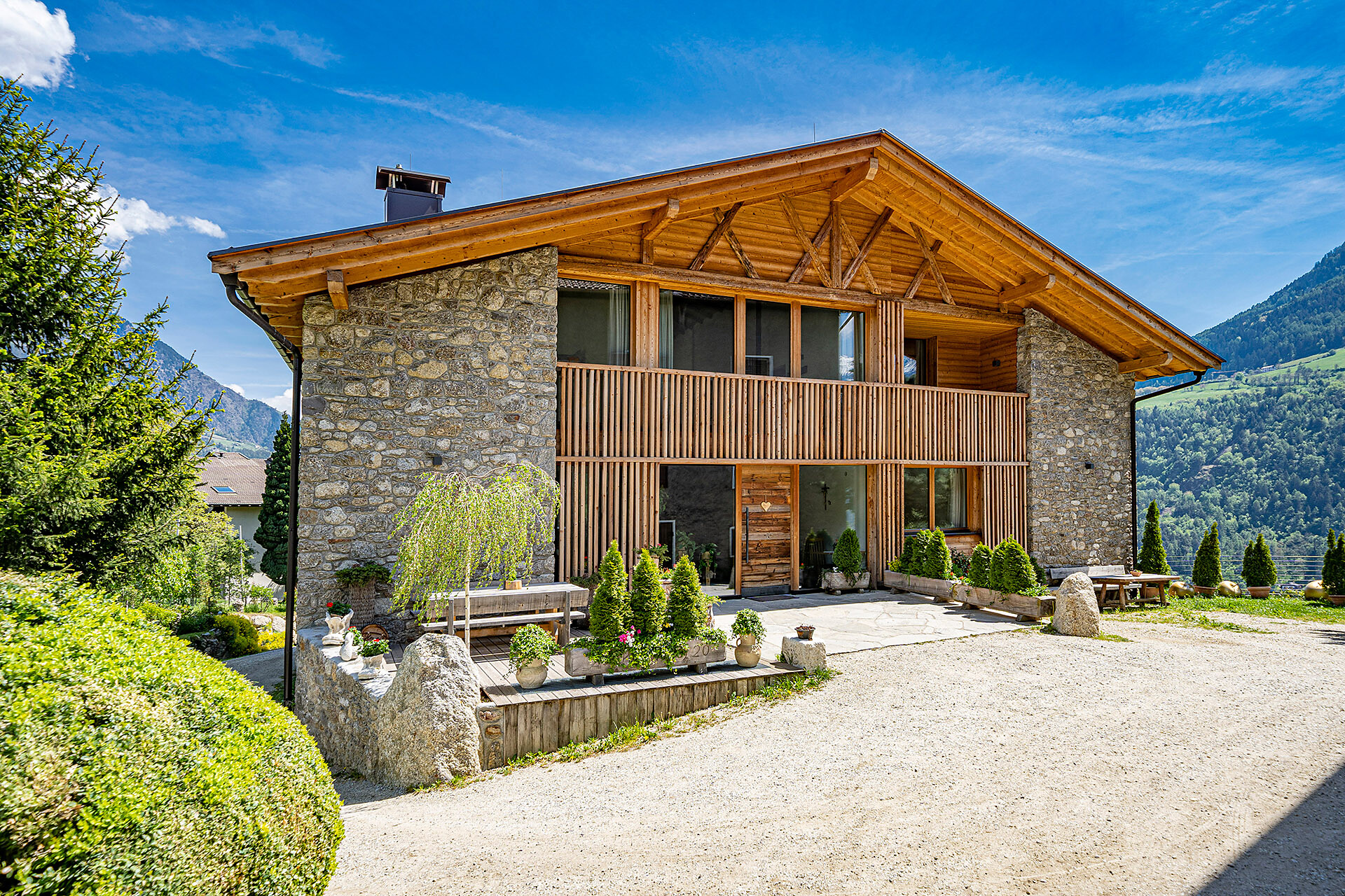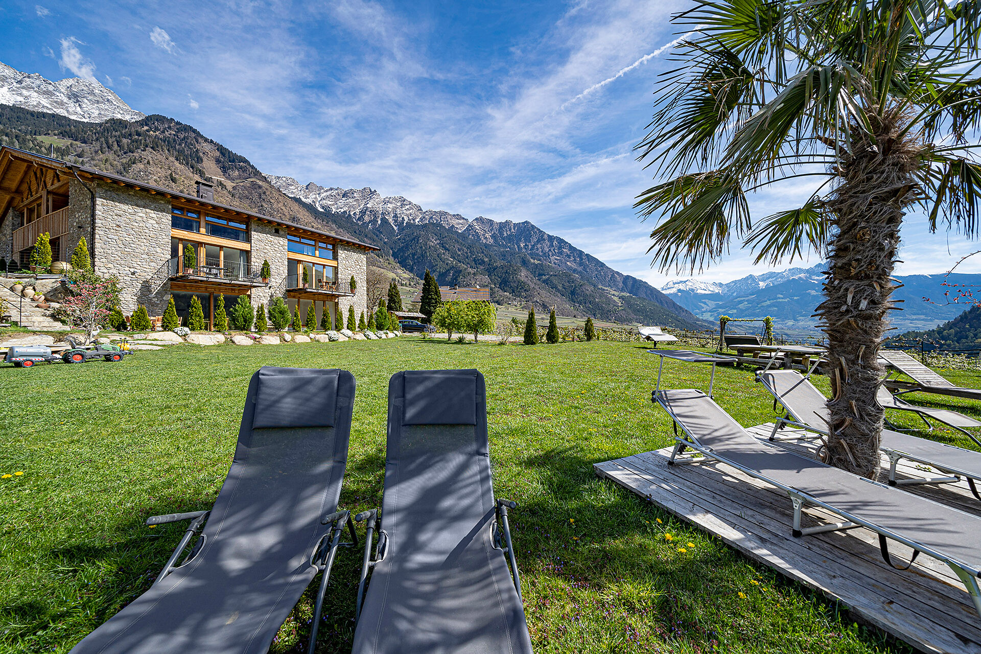 Unser Apartment „Hoawiag“, ist nach einem der bekanntesten Partschinser Flurnamen benannt und bietet Ihnen eine wohlige „Urlaubswiege“ mit 2 getrennte Schlafzimmern mit Doppelbett, einer voll-ausgestatteten Küche und einem lichtdurchfluteten Badezimmer. Direkt vor den großen Fensterflächen der Wohnung zeigt sich die beeindruckende Bergkulisse der Texelgruppe mit sattgrünen Wiesen, weiten Wäldern und hohen Gipfeln von Ihrer schönsten Seite. Die beiden Schlafzimmer und der Wohnraum sind mit behaglichen Holzböden ausgestattet und die gesamte Einrichtung wurde von Tischlerhand liebevoll maßgeschneidert. Die Küche verfügt über einen Kühlschrank inkl. Gefrierfach, Glaskeramikkochfeld, Abzugshaube, Spülmaschine, Kaffeemaschine und Wasserkocher. Ausreichend Kochutensilien und Essgeschirr sind vorhanden. Das helle Bad ist mit großer Regendusche, WC, Waschbecken und Handtuchtrockner ausgestattet. Nach Osten, in Richtung der Kurstadt Meran, verfügt die Wohnung über einen überdachten Balkon aus Zirmholz.