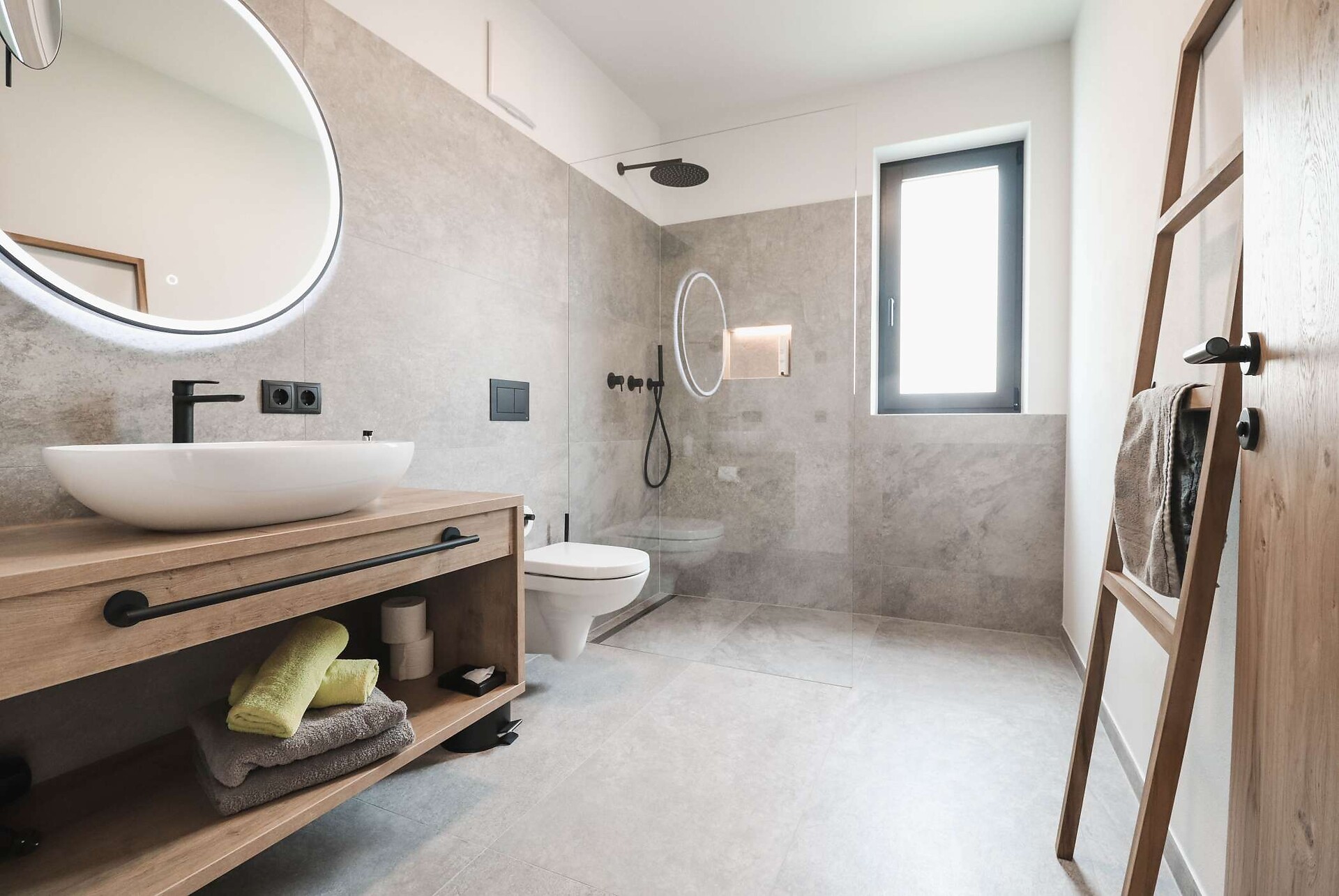 • Badezimmer mit Dusche, Seifenspender & Haartrockner