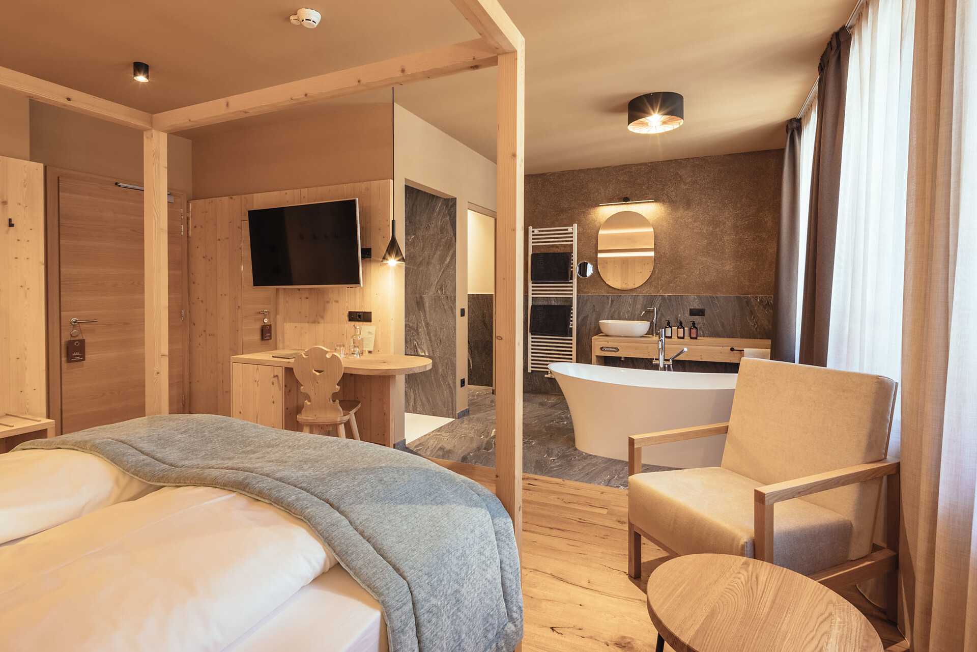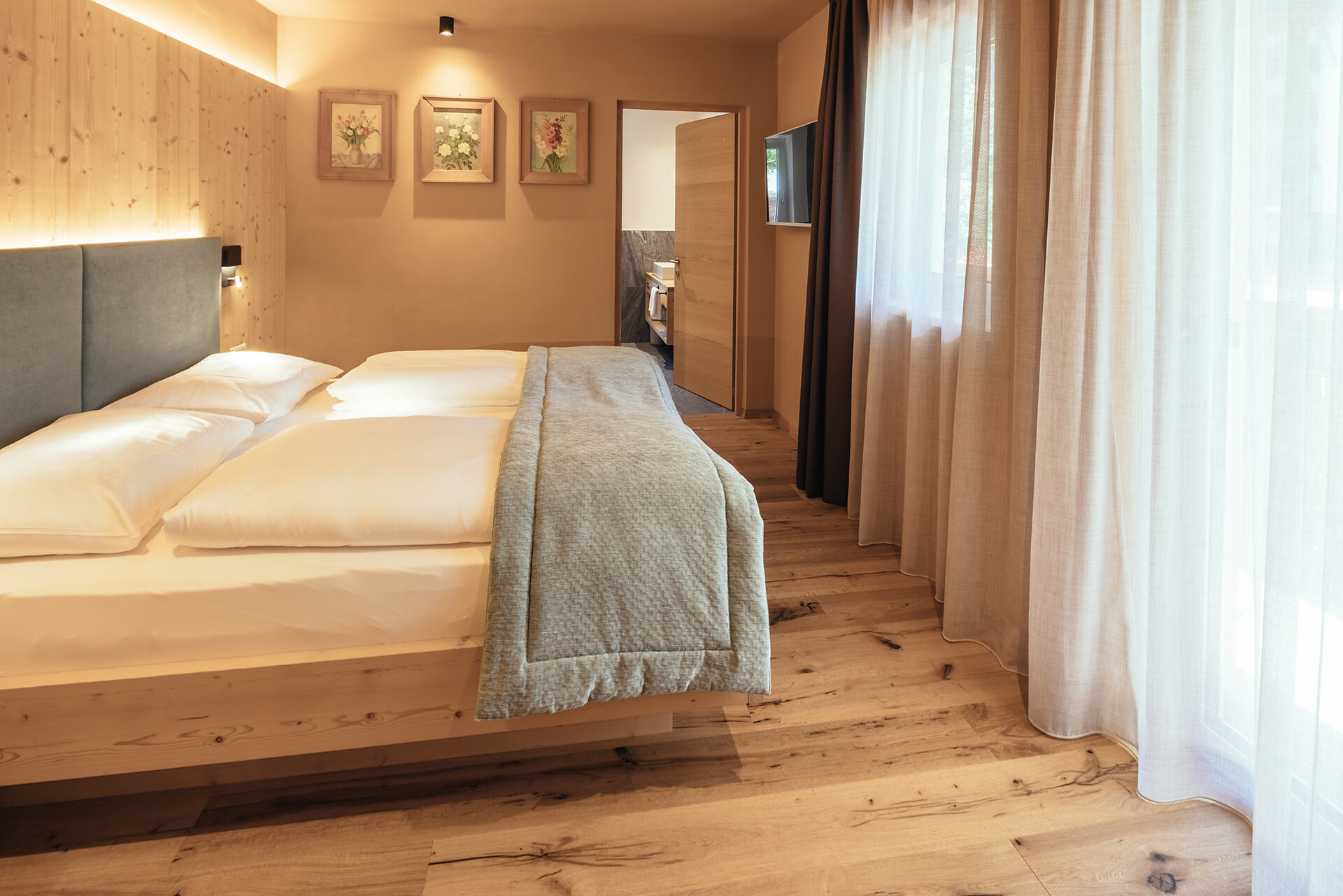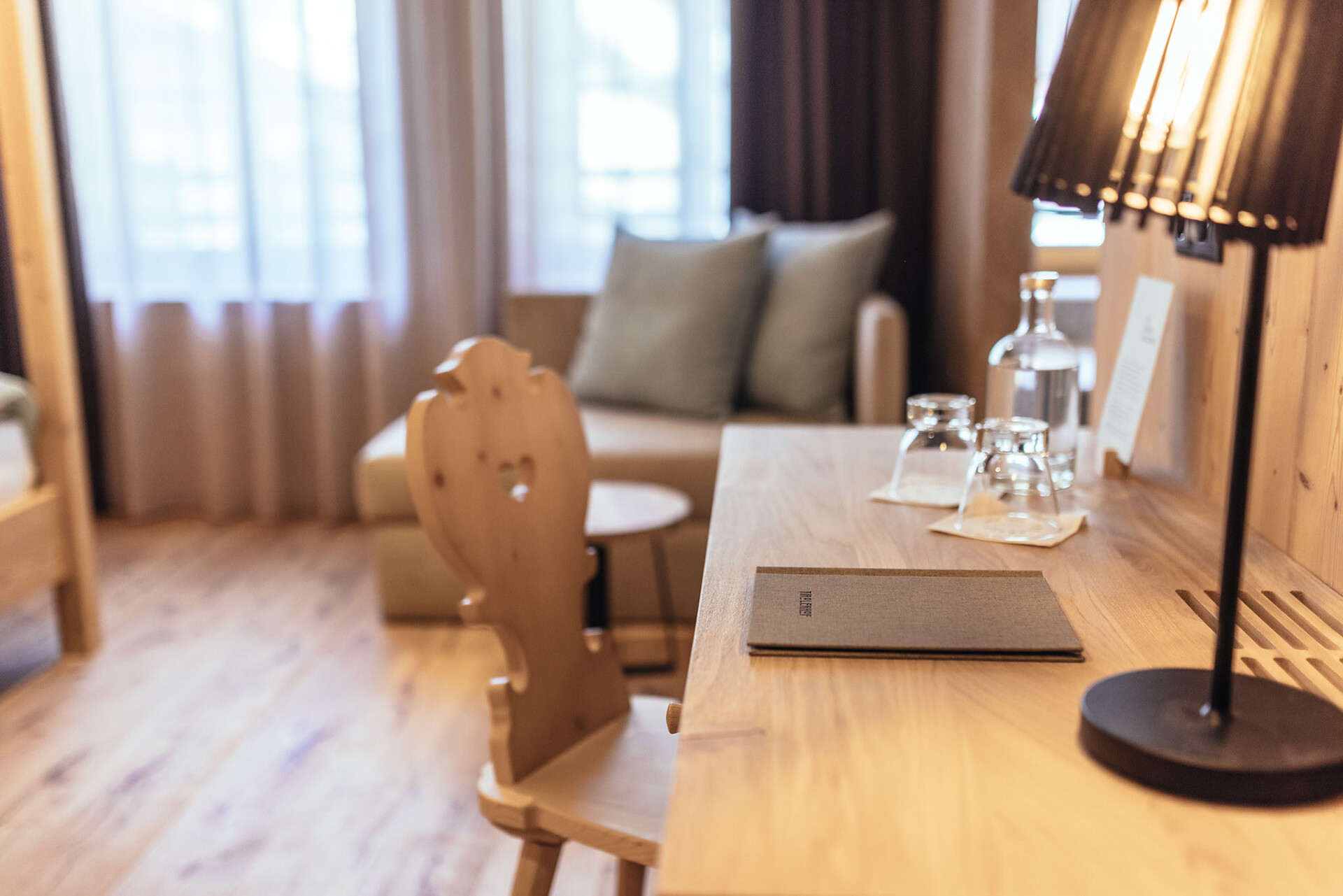 Viktor Thomele war ein langjähriger Gast im Tirolerhof - er bezahlte seinen Aufenthalt mit Bildern, die noch heute die Wände schmücken. Ausgestattet mit handgefertigten Naturholzmöbeln, getrenntem Wohn- und Schlafbereich, Balkon mit Blick auf den Waltnerbach und die Bergwelt rund um St. Leonhard, Badezimmer mit Dusche, WC, Bidet, Kosmetikspiegel und Fön, Naturkosmetik, SAT-TV, Telefon und Safe, sowie Minibar, welche auf Wunsch bestückt wird.