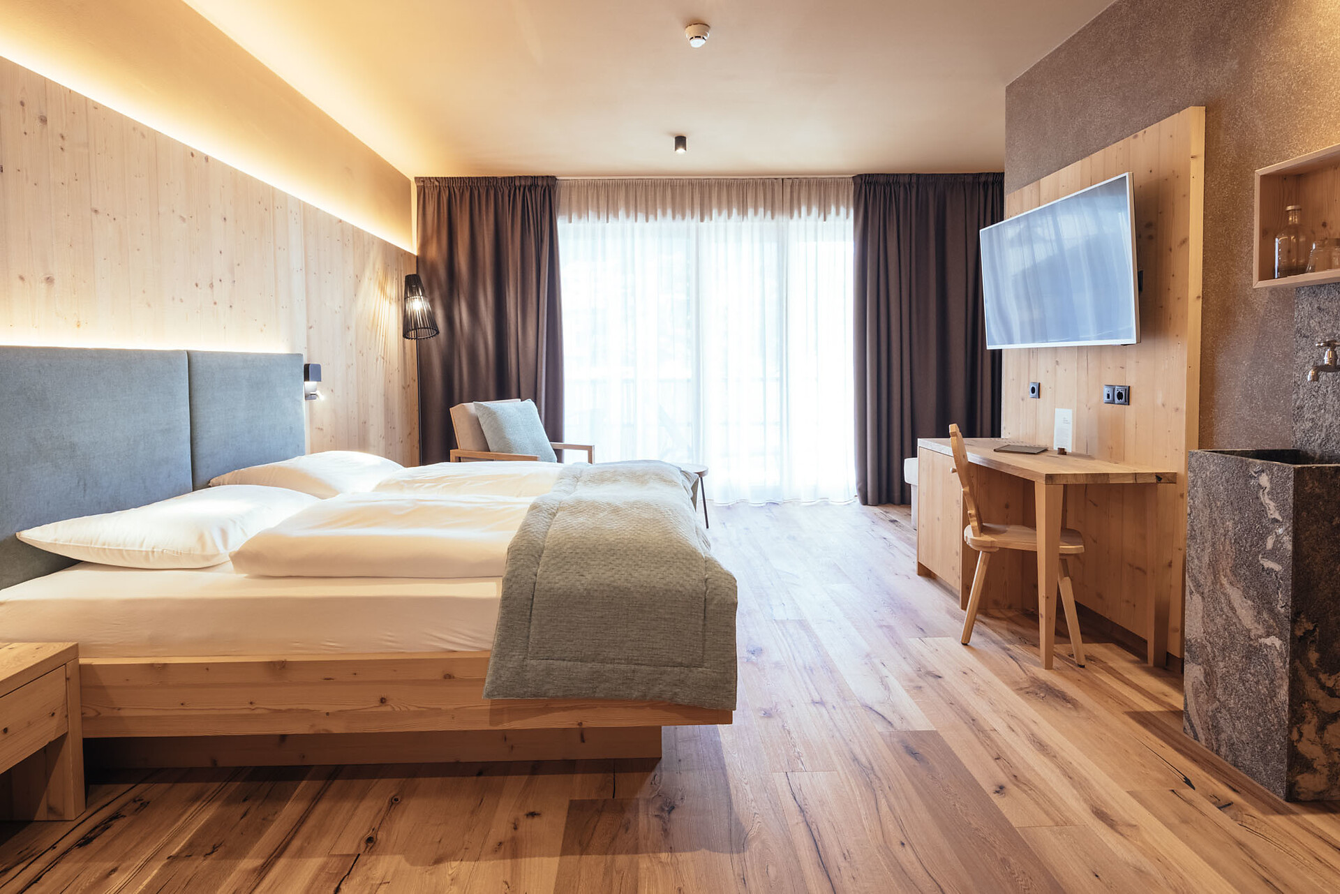 Sowohl der Urgroßvater und erste Gastgeber als auch der Opa der Gastgeber hießen Josef. Ihren Namen trägt eine der großzügigsten Suiten. Ausgestattet mit handgefertigten Naturholzmöbeln, zwei getrennten Schlafzimmern mit eigenem Balkon und Ausblick auf den Waltnerbach und die Bergwelt rund um St. Leonhard, Badezimmer mit Dusche, getrenntes WC mit Bidet, Kosmetikspiegel und Fön, Wasserbrunnen aus Naturstein mit frischem Waltner-Quellwasser, Naturkosmetik, SAT-TV, Telefon und Safe, sowie Minibar, welche auf Wunsch bestückt wird.