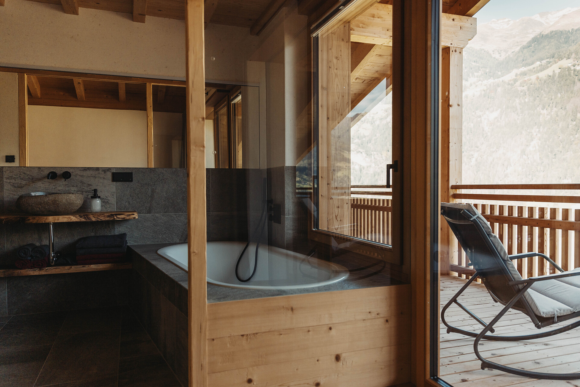 Ausstattung: Doppelbett, Zustellbett, Babybett, Doppelschlafcouch, Balkon, Terrasse, Separater Wohnraum, Bettwäsche vorhanden, Safe, Nichtraucher-Apartment, Wohnküche, Kaffeemaschine, Geschirrspülmaschine, Elektroherd, Mikrowelle, Geschirrausstattung, Wasserkocher, Dusche/Bad, Separates WC, Bidet, Haarfön, Badetücher, Badewanne, TV, Satellit/Kabel, WLAN, Endreinigung inbegriffen, Haupthaus, Panoramablick, Südseite