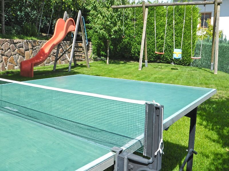 Für entspannende und erholsame Stunden stehen Ihnen eine große Liegewiese mit solarbeheiztem Freischwimmbad (7 x 13 m) auf Salzwasserbasis, Tischtennis und ein Spielplatz für die Kleinen zur Verfügung. In unmittelbarer Nähe finden Sie Golf-, Tennis-, und Reitanlagen. Nur wenige Schritte von unserem Haus entfernt finden Sie Restaurants, Geschäfte und die Haltestelle des Linienbusses nach Meran. Unseren Gästen bieten wir außerdem einen sicheren überdachten Privatparkplatz und eine Garage. Idealer Ausgangspunkt für tolle Wanderungen. Preisgünstige Angebote! Wir würden uns freuen, Sie in unserem Hause begrüßen zu dürfen, wo Sie einen unvergesslichen Urlaub verbringen werden.