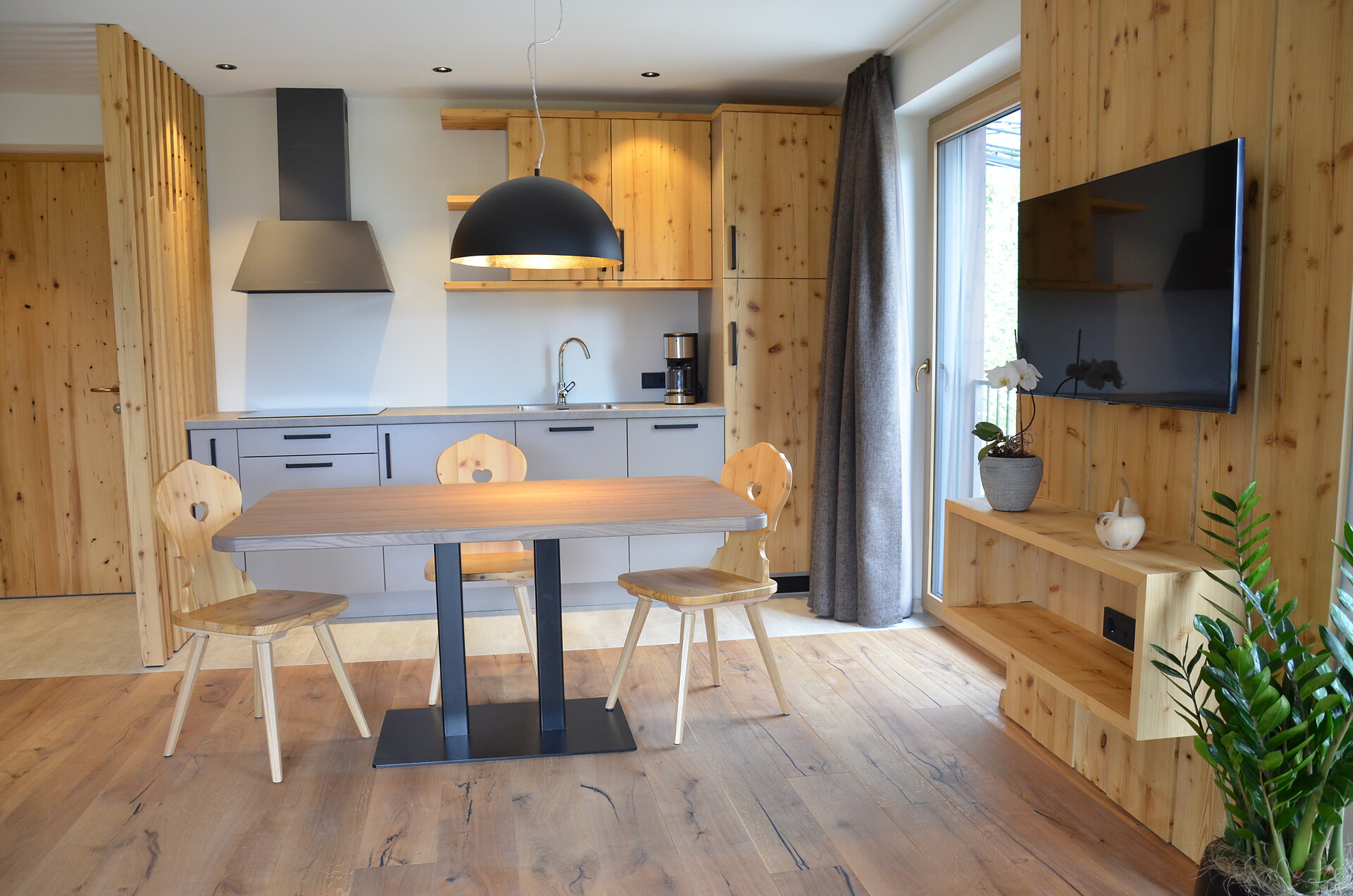 Ferienhaus (55m²) besteht aus Wohnküche, separatem Schlafzimmer, alter Bauernstube mit Schlafmöglichkeit, einem Badezimmer und Balkon auf Südseite.