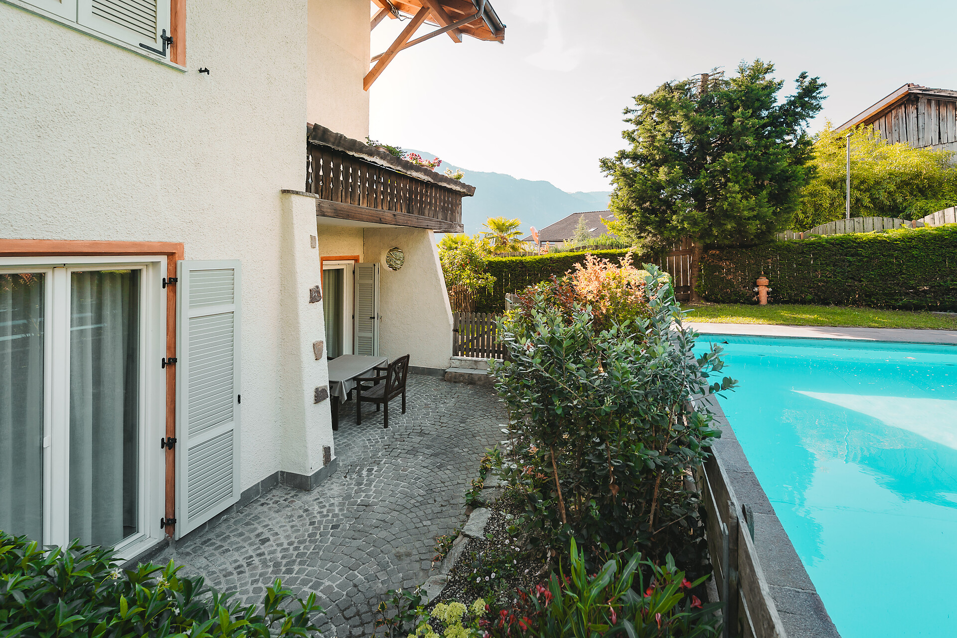 Genießen Sie entspannte Stunden an unserem großzügigen Schwimmbad mit komfortablen Liegen, umgeben von grüner Natur und herrlicher Aussicht. Ob zum Abkühlen, Sonnenbaden oder einfach zum Abschalten – hier finden Sie pure Erholung unter der Südtiroler Sonne.