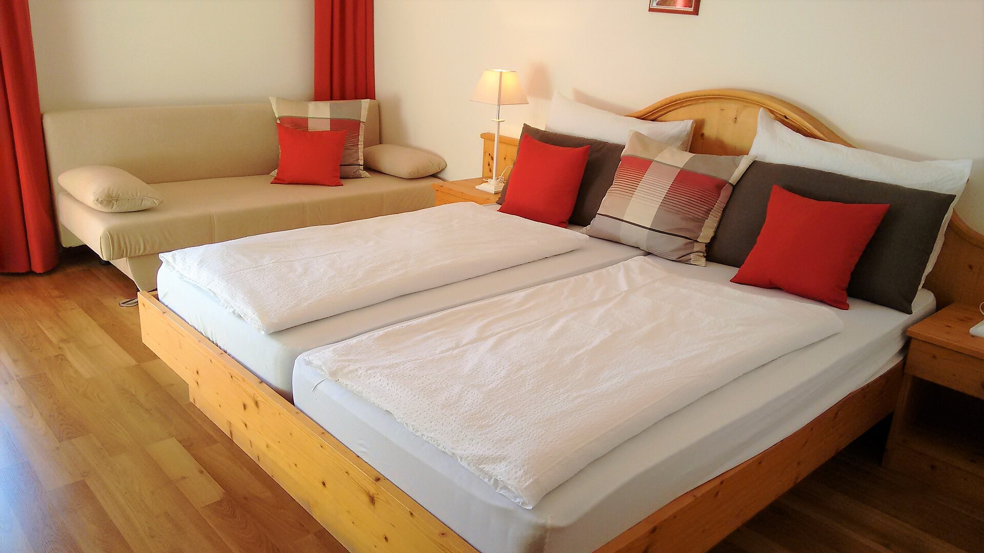 Doppelzimmer, Doppelbett, Bettsofa, Balkon, Terrasse, Safe, Dusche / Bad, Haarfön, TV, Satellit/Kabel, WLAN, Haupthaus, Panoramablick, Südseite