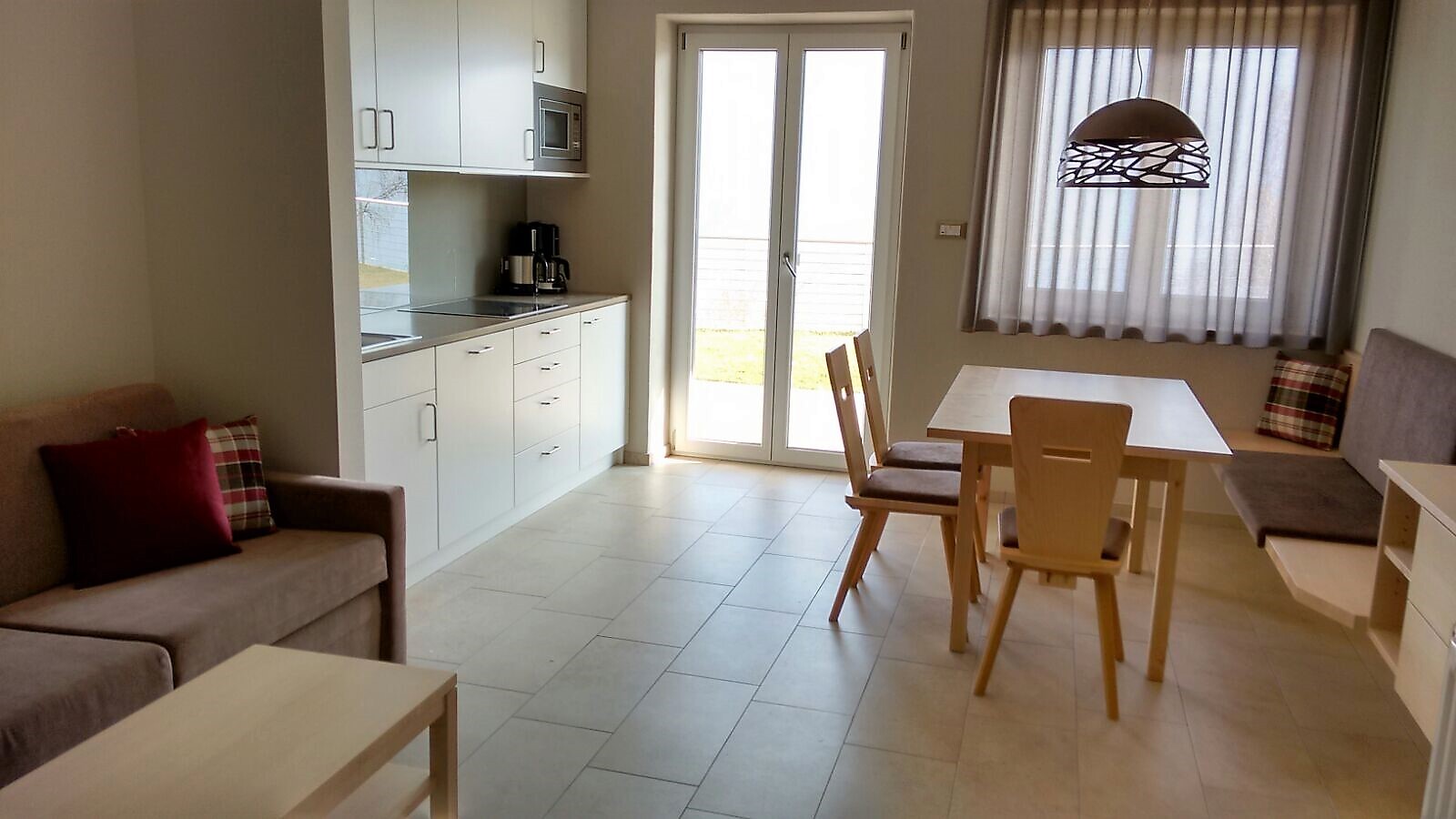 Doppelbett, Doppelschlafcouch, Balkon, Bettwäsche vorhanden, Safe, Wohnküche, Kaffeemaschine, Geschirrspülmaschine, Elektroherd, Mikrowelle, Geschirrausstattung, Wasserkocher, Dusche/Bad, Haarfön, Badetücher, TV, Satellit/Kabel, WLAN, Reinigung auf Anfrage, Haupthaus